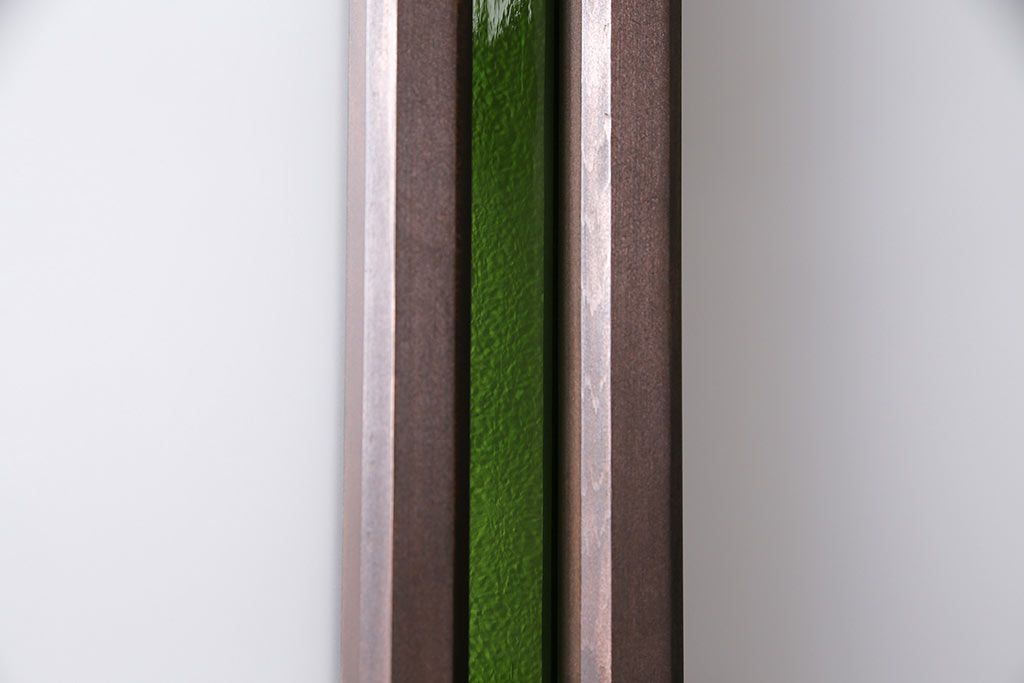 (上段真ん中・下段真ん中の細い部分)新品色ガラス→(上段真ん中)緑/(下段真ん中)黄色