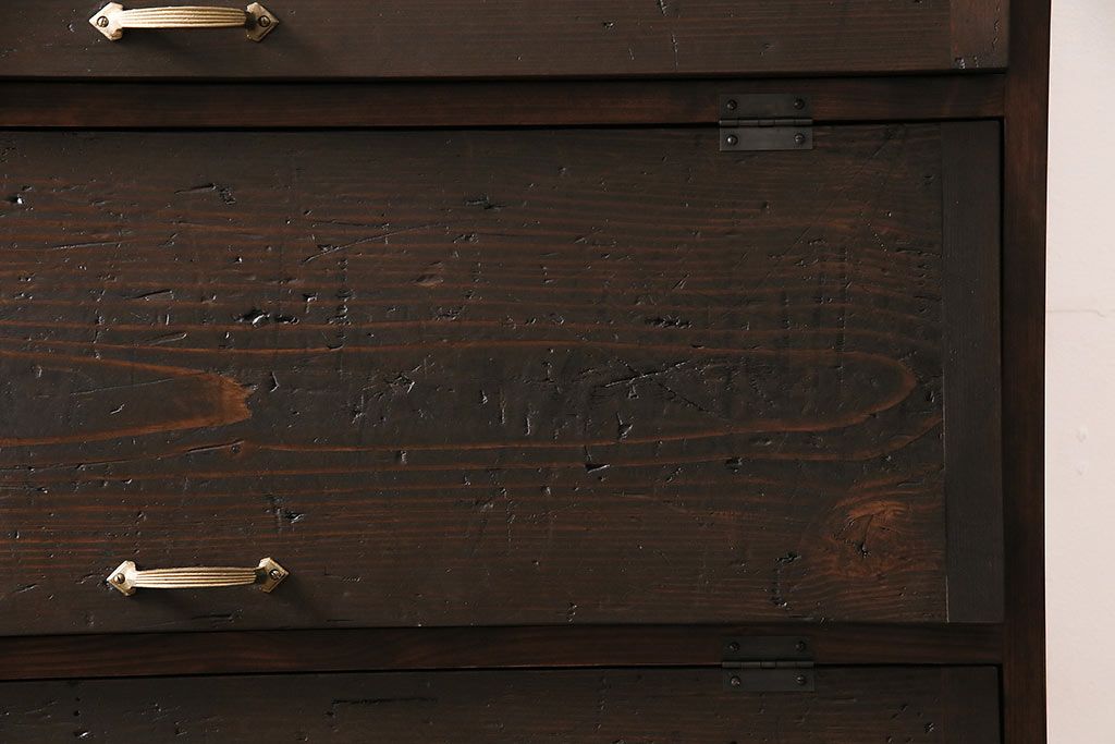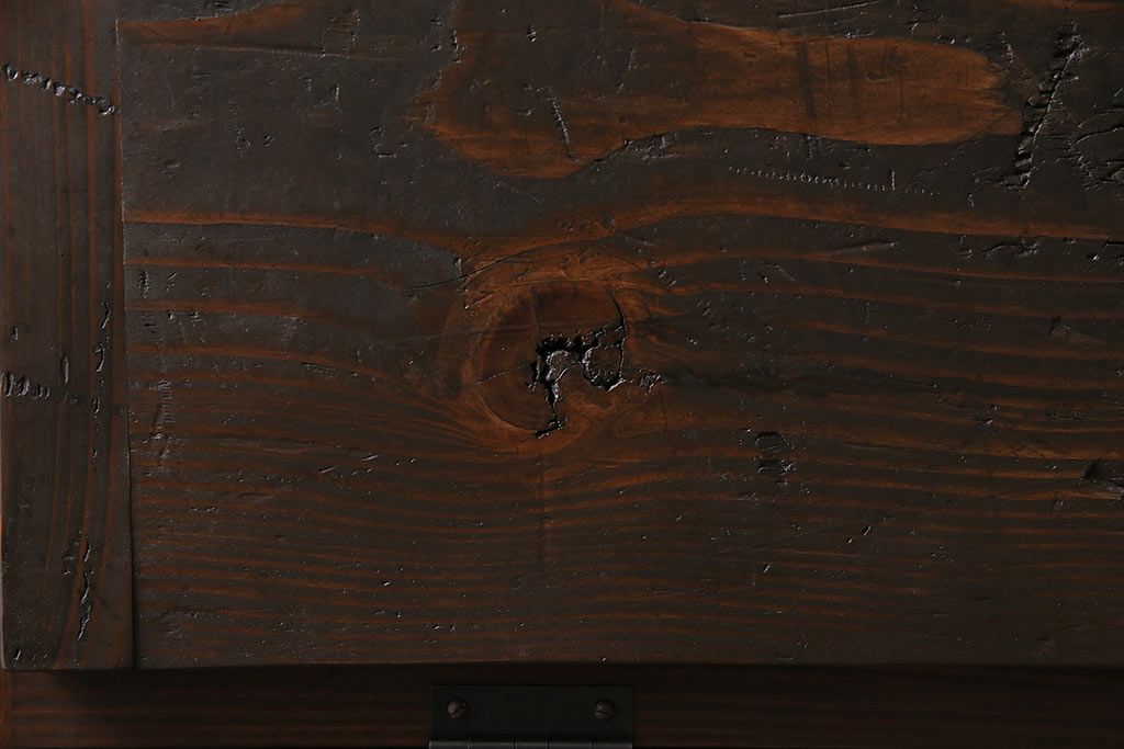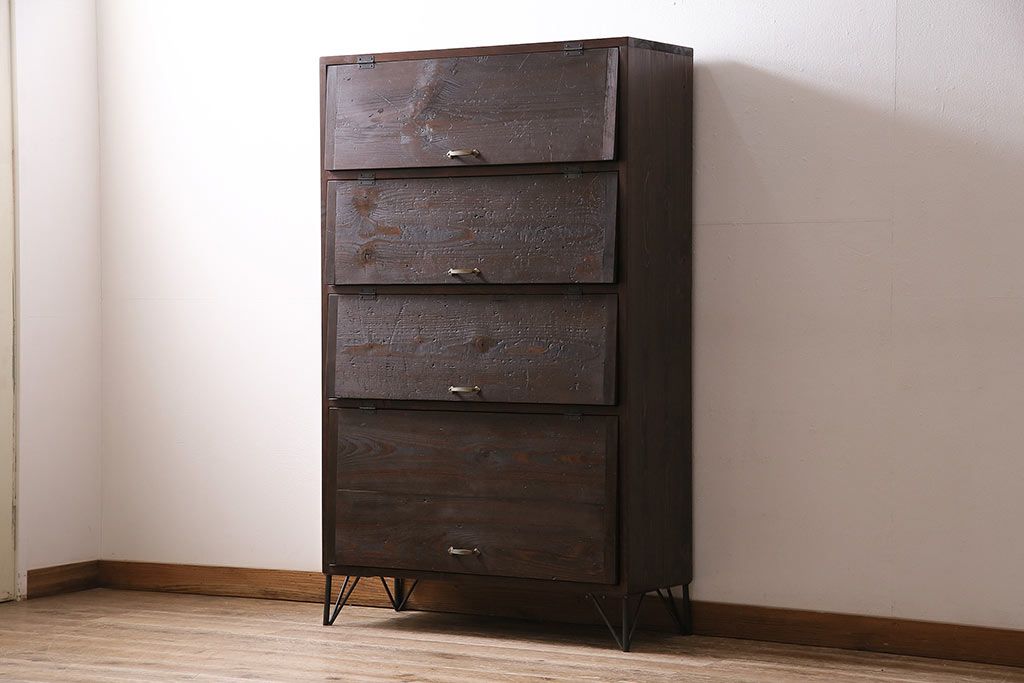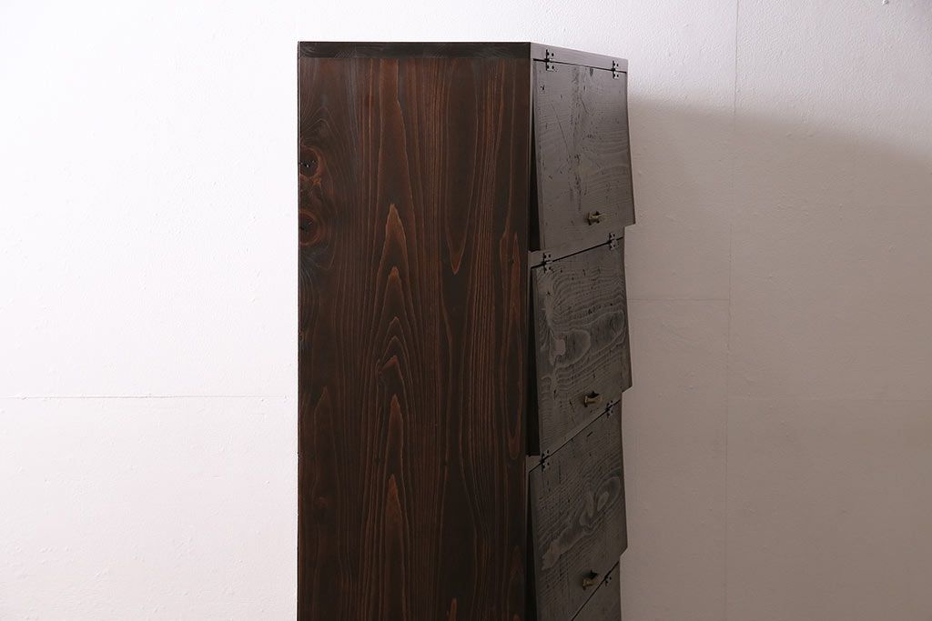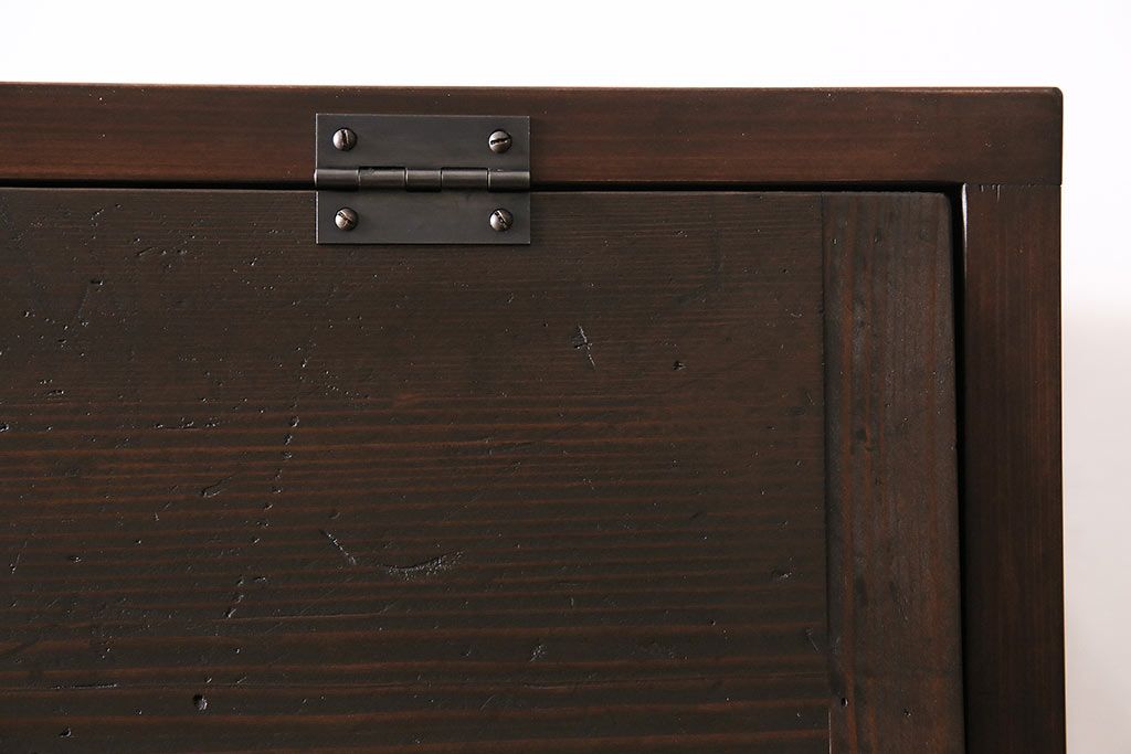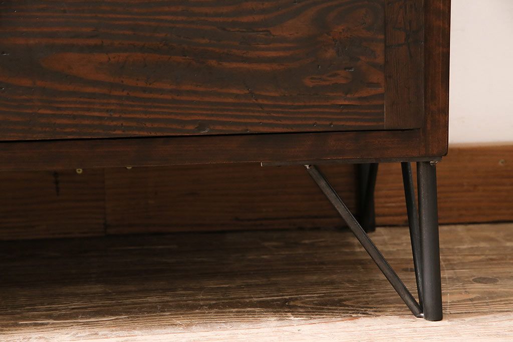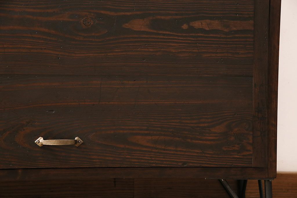 パタパタ扉の下駄箱を新規製作!本体はヒノキ無垢材、前板は古材を使用。鉄脚と取っ手を取り付け。(収納棚、戸棚、ロッカー)