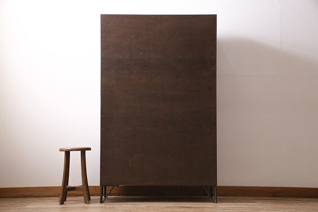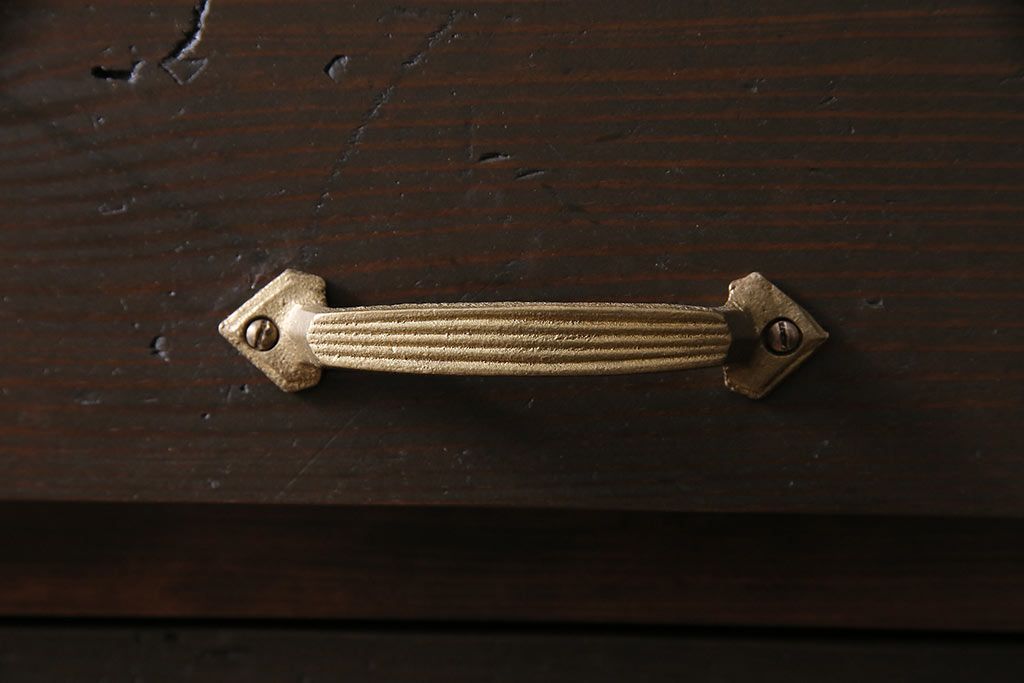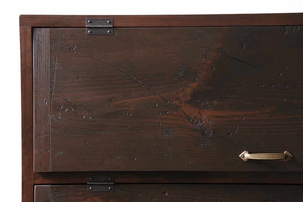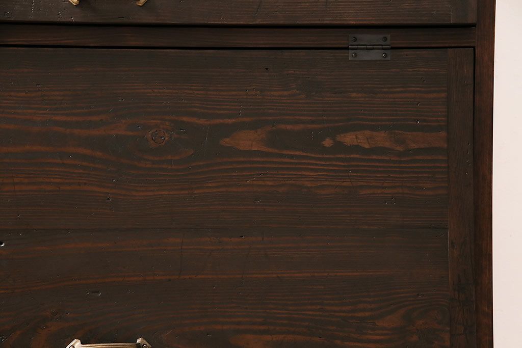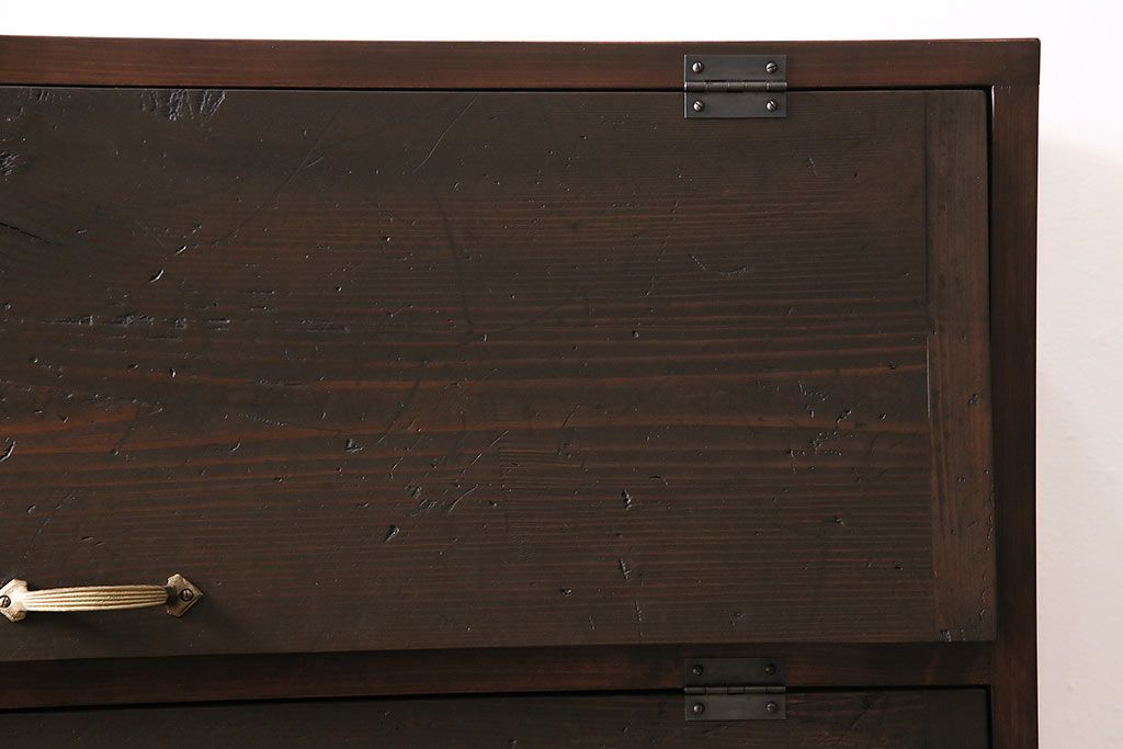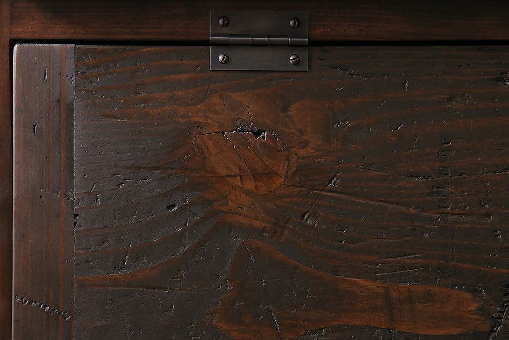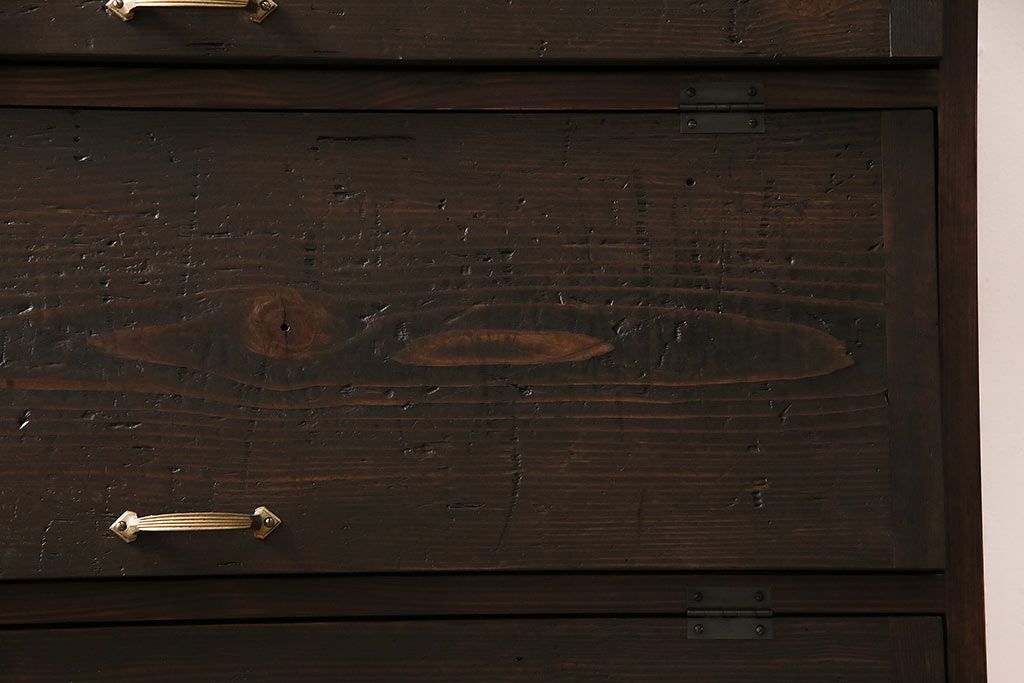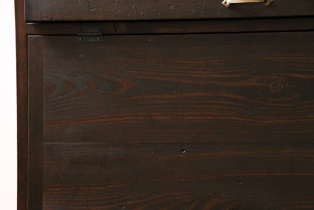 パタパタ扉の下駄箱を新規製作!本体はヒノキ無垢材、前板は古材を使用。鉄脚と取っ手を取り付け。(収納棚、戸棚、ロッカー)