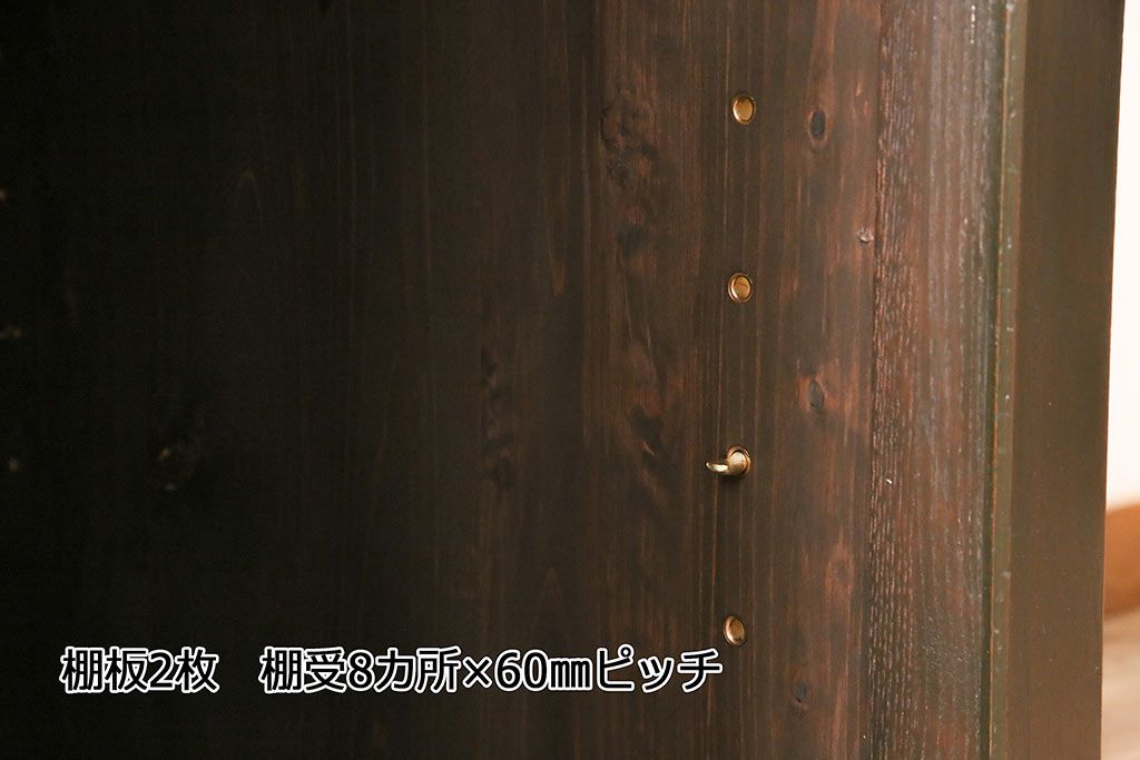 ◆棚板:(上段)棚受けはそのまま利用 棚板1枚 (下段)ダボ使用 60mmピッチ 棚板2枚