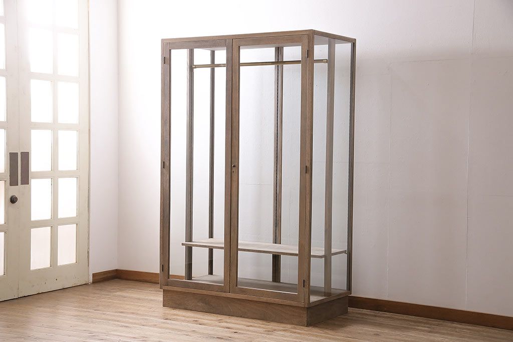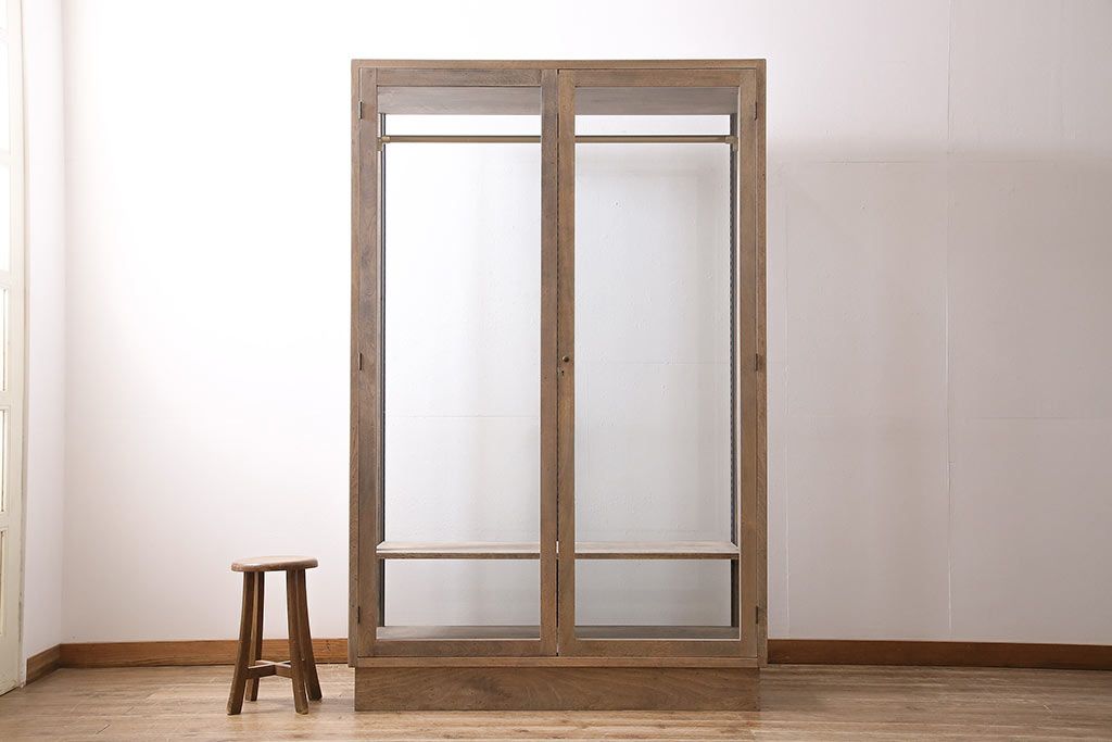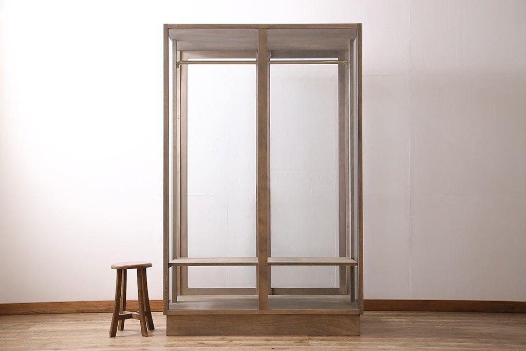 セミオーダー家具実績 > 大型ガラスケースをリペア&カスタム!ストリップド(剥離)加工。ハンガーポールを可動式に変更。(ショーケース、陳列棚)