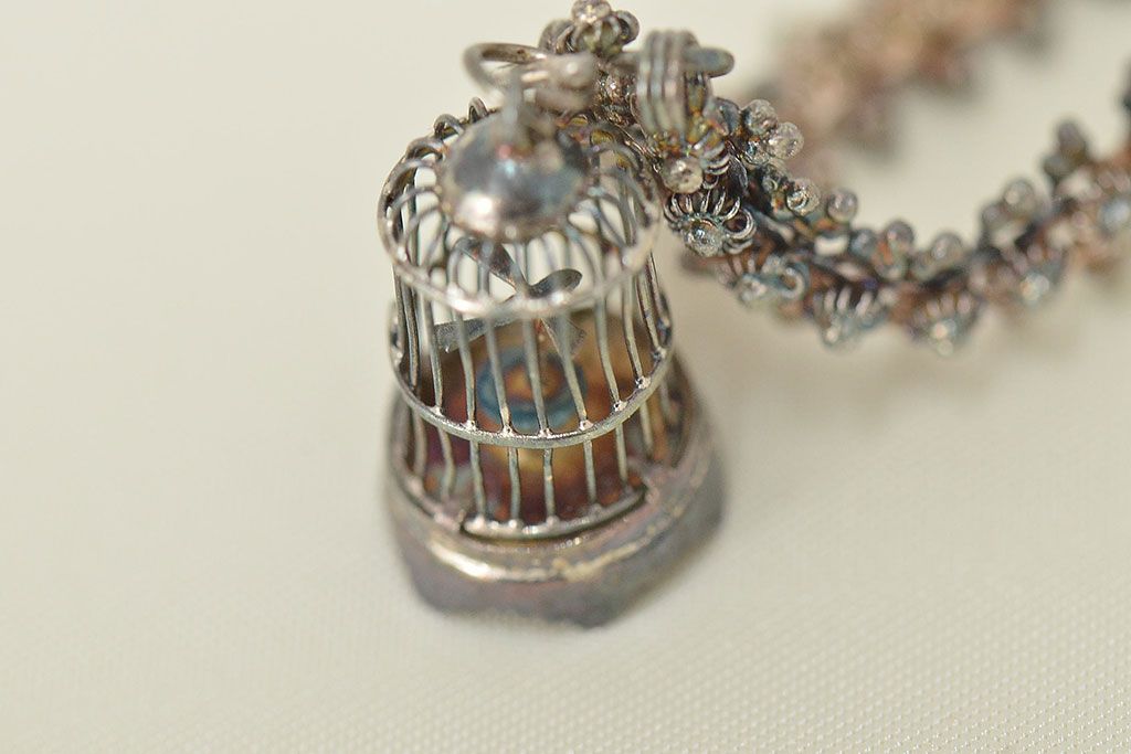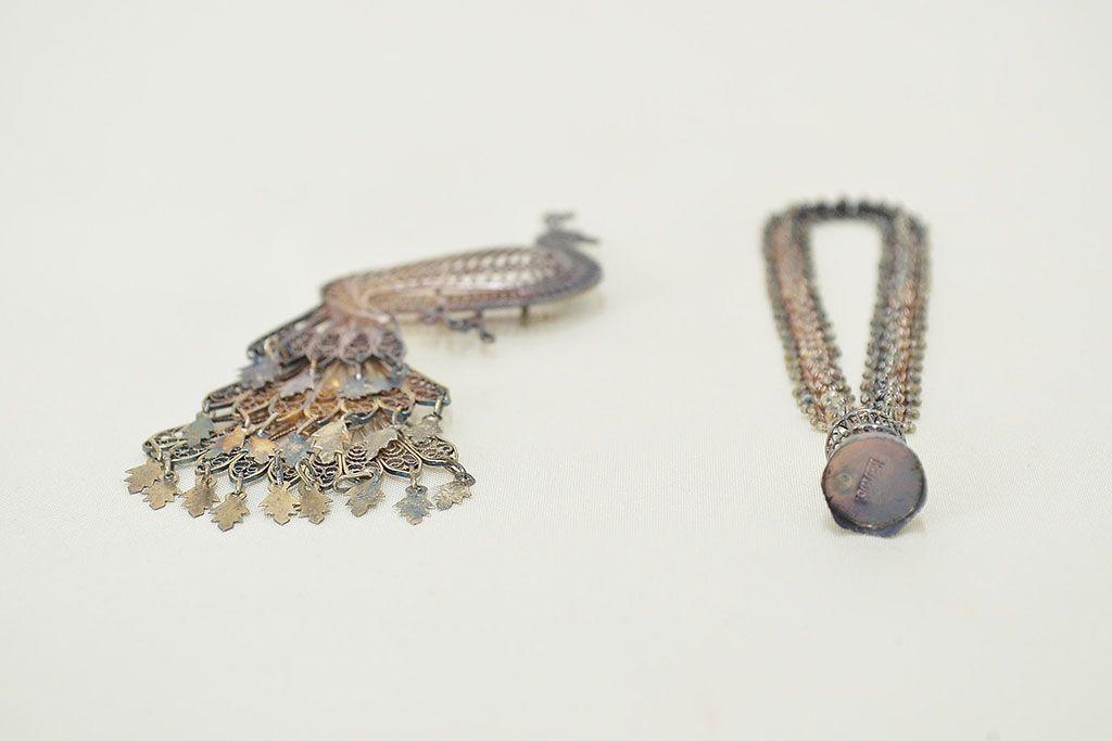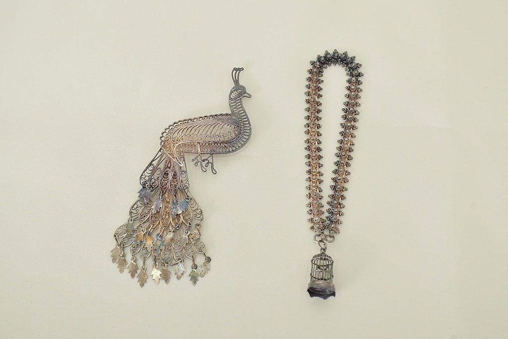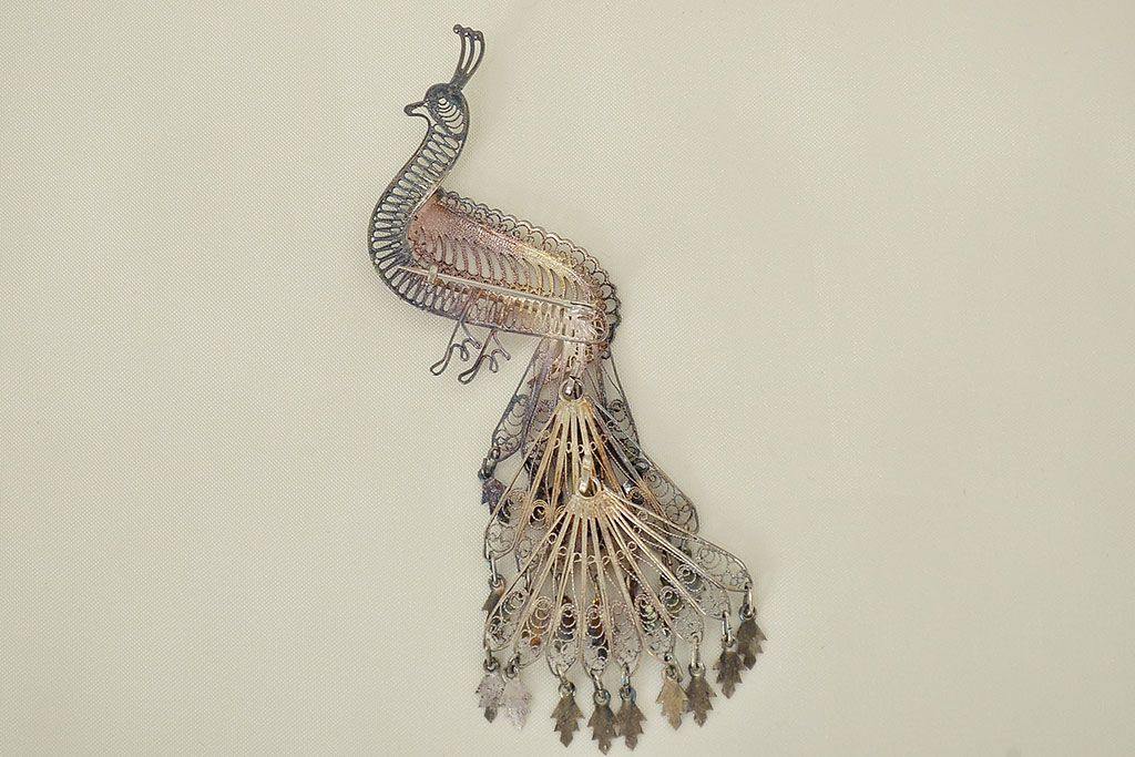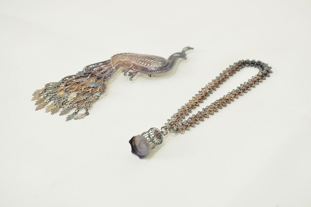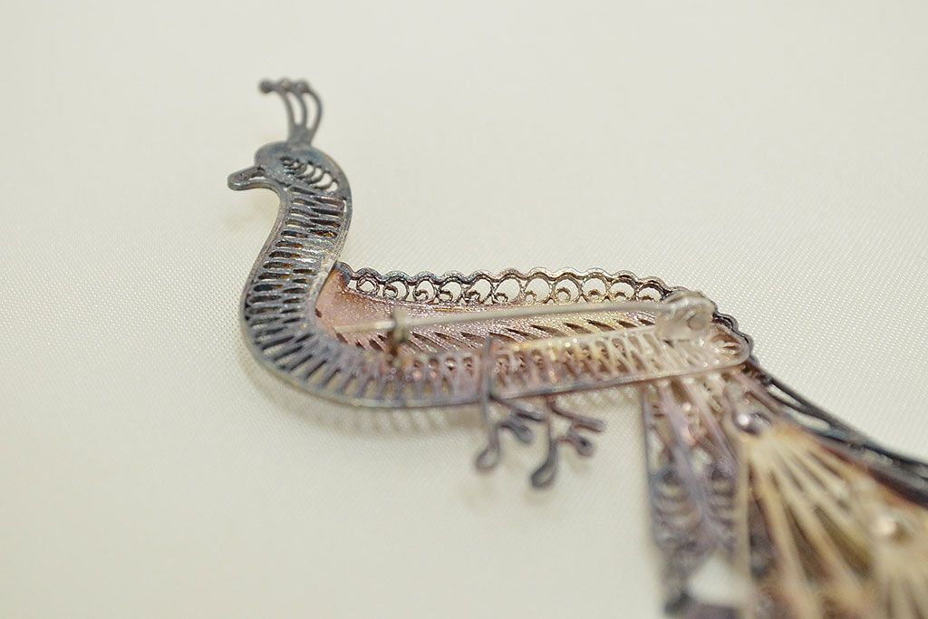 ラフジュ工房> アクセサリー> ブローチ > ビンテージ シルバー製 孔雀ブローチ 鳥籠ブレスレット?(バングル、アクセサリー)(R-047041)