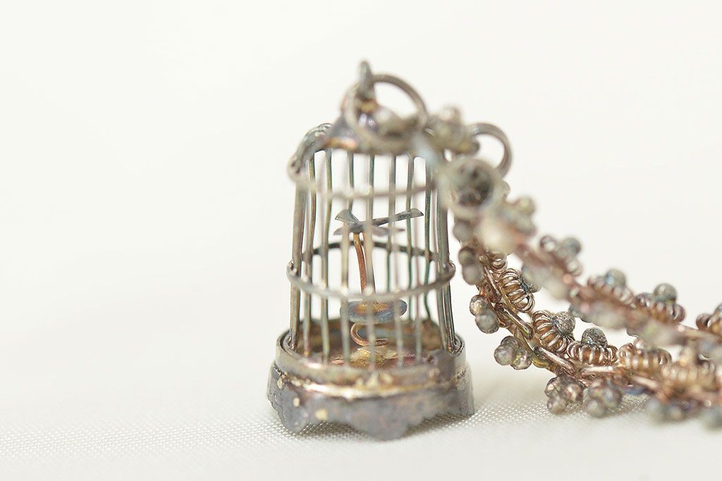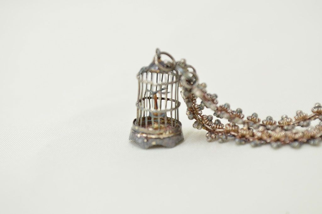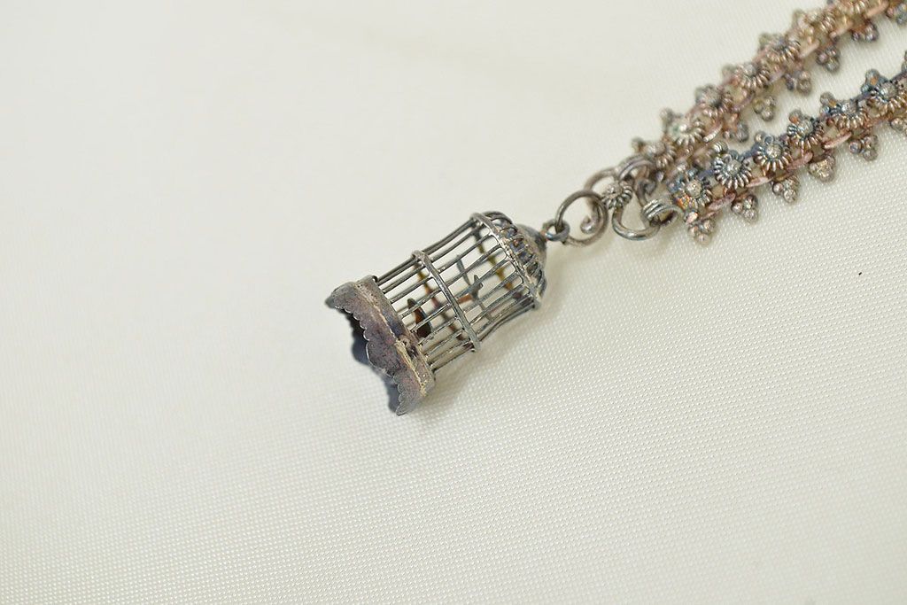 ラフジュ工房> アクセサリー > ビンテージ シルバー製 孔雀ブローチ 鳥籠ブレスレット?(バングル、アクセサリー)(R-047041)