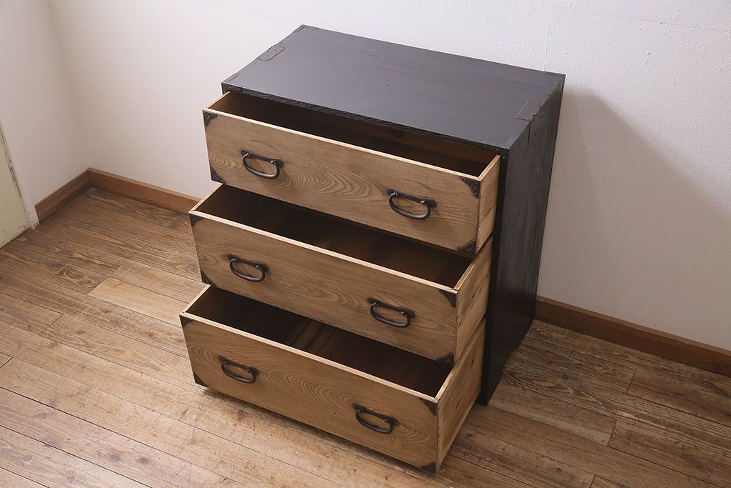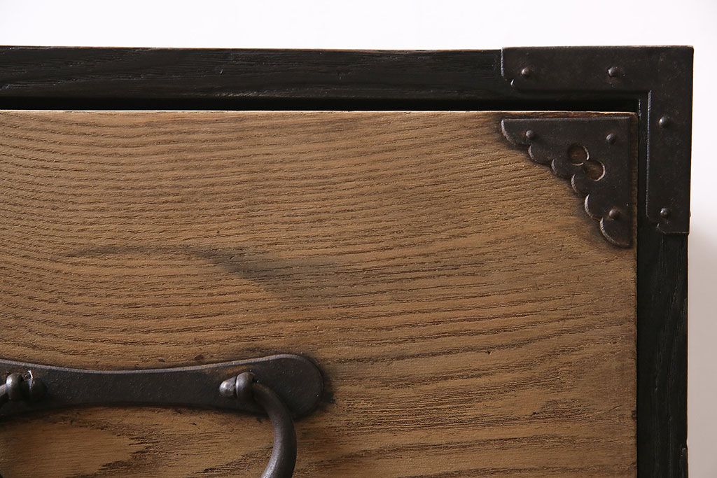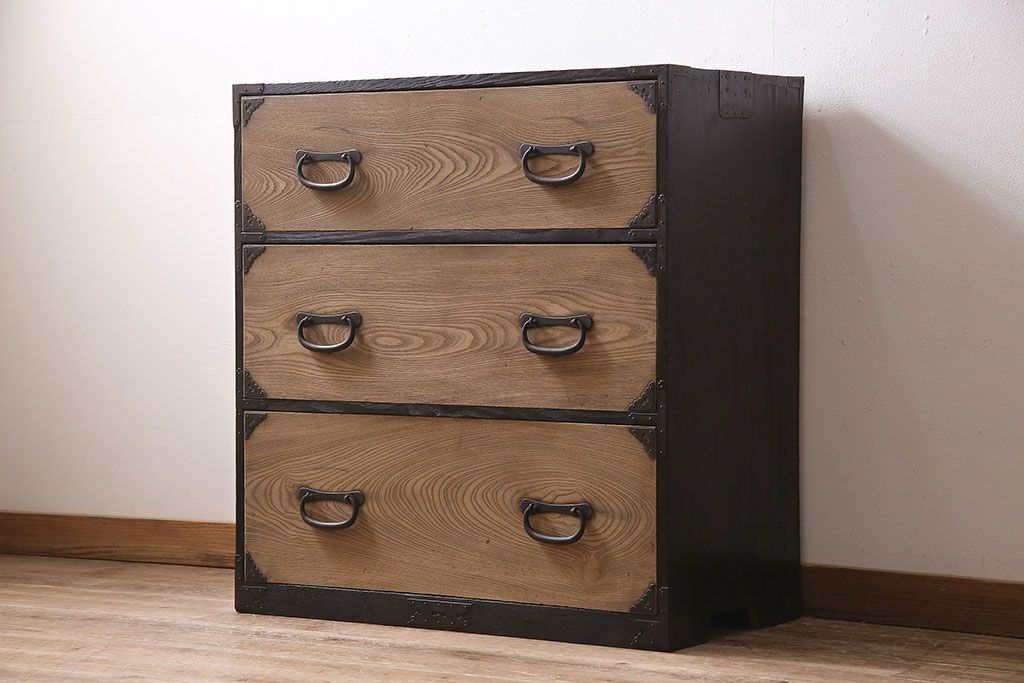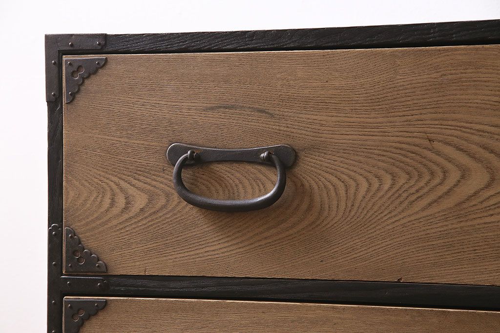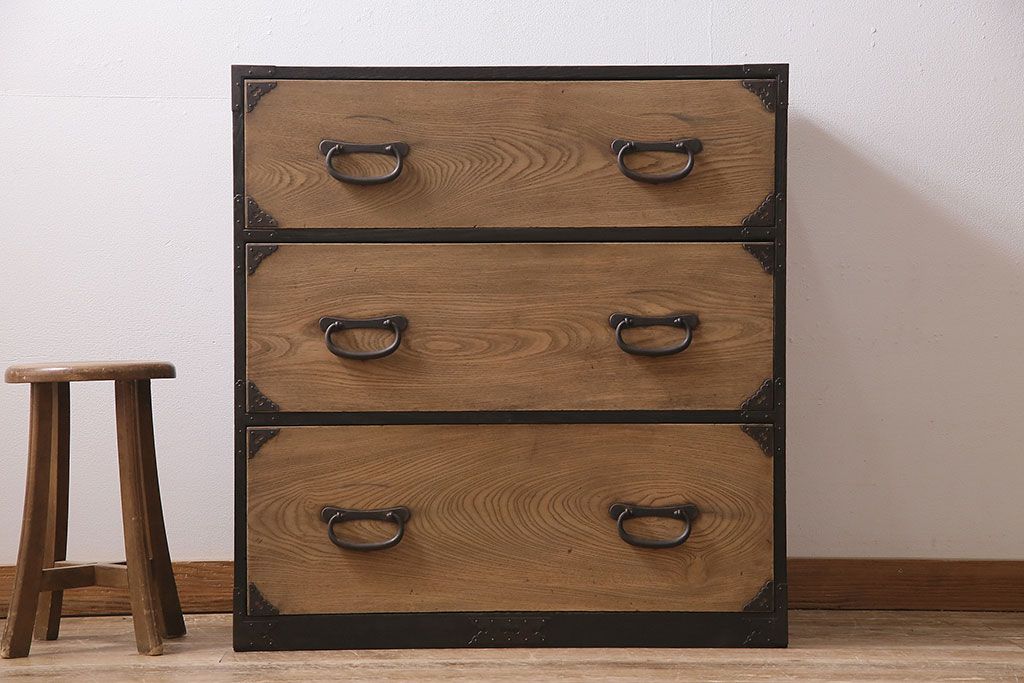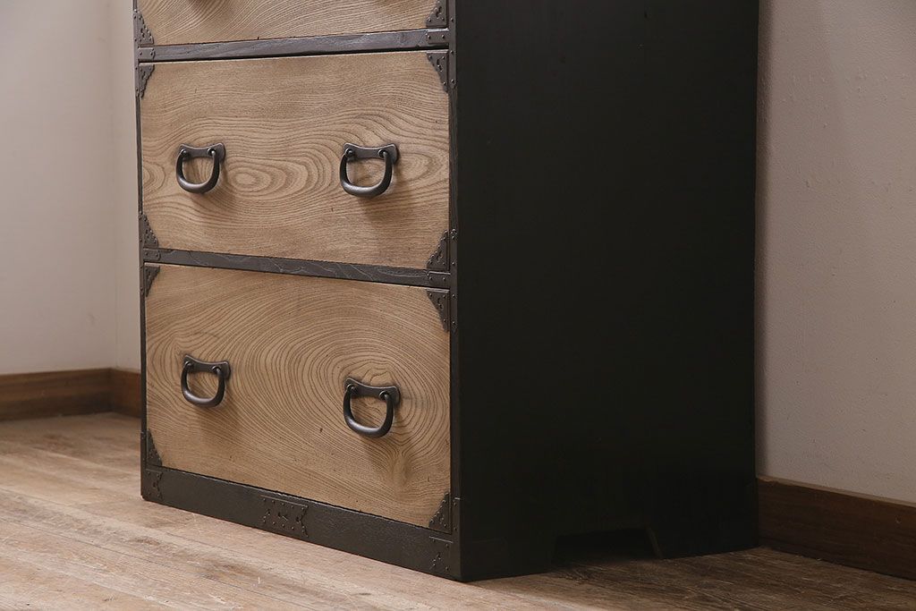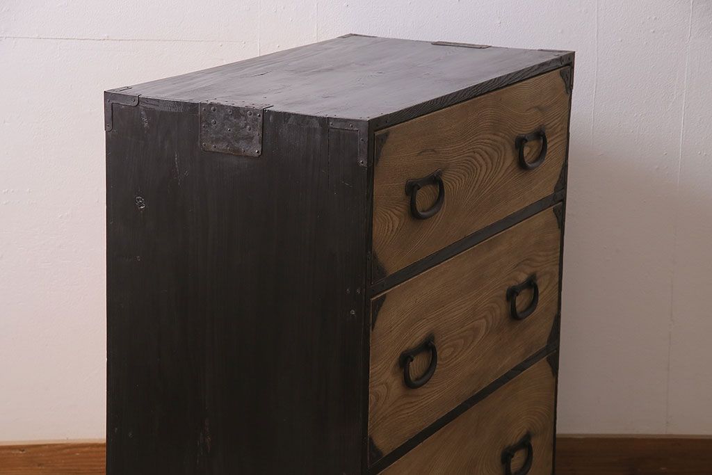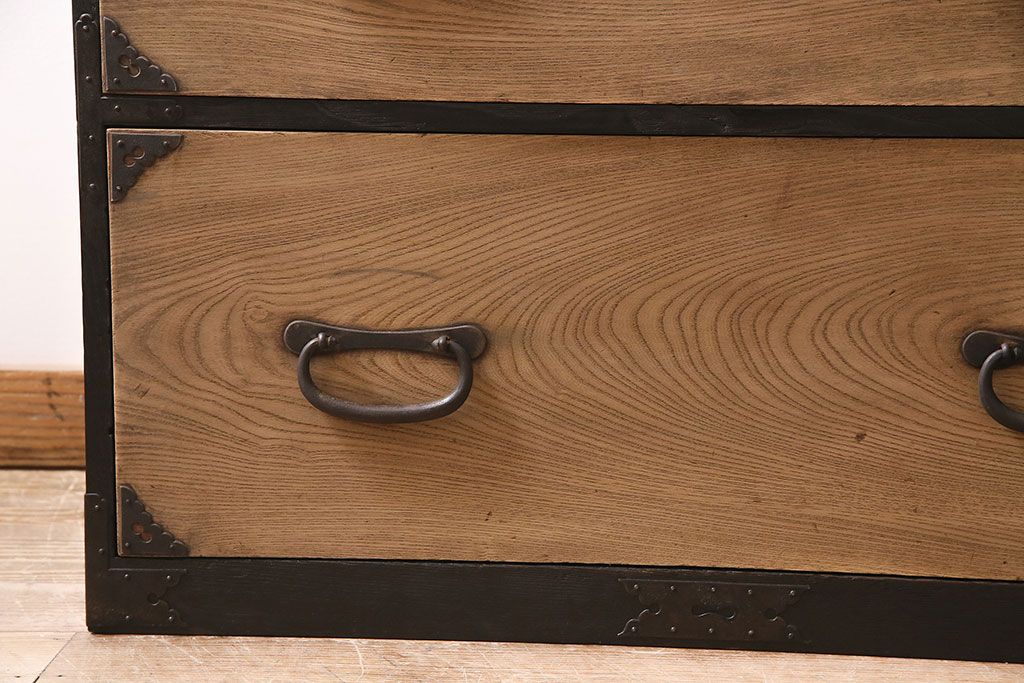 アンティーク家具 明治大正期 ストリップド(剥離) 前面ケヤキ材 ペイント シンプルモダンな佇まいが魅力の衣装箪笥(タンス、引き出し、チェスト)(R-046960)