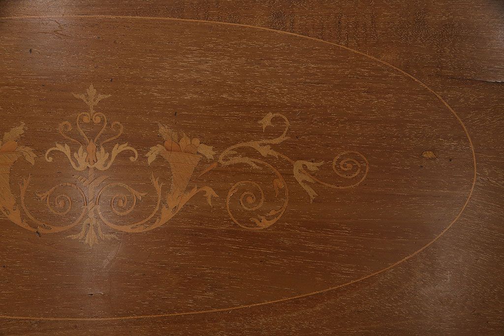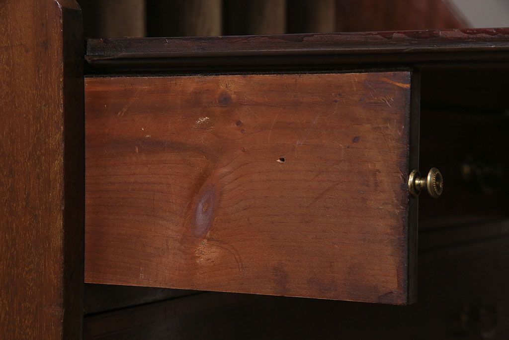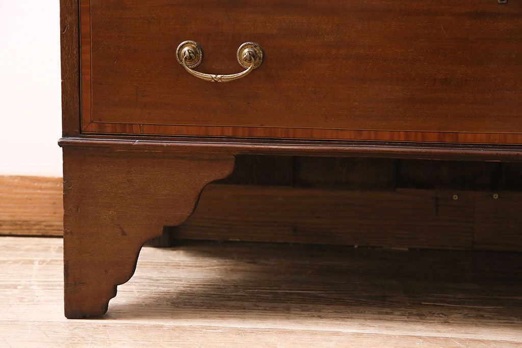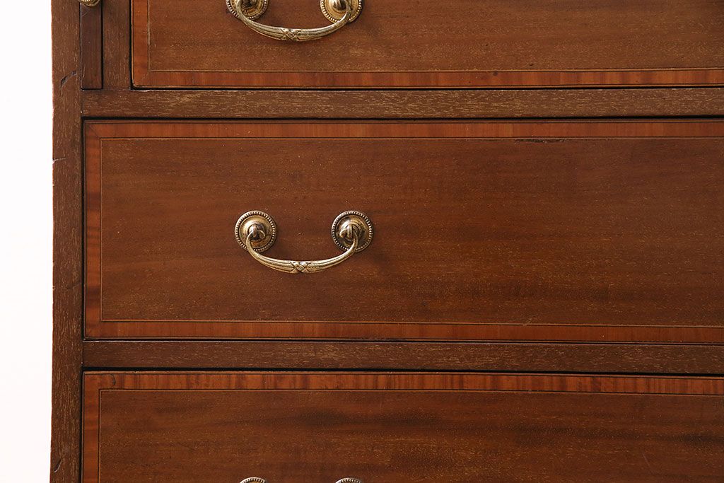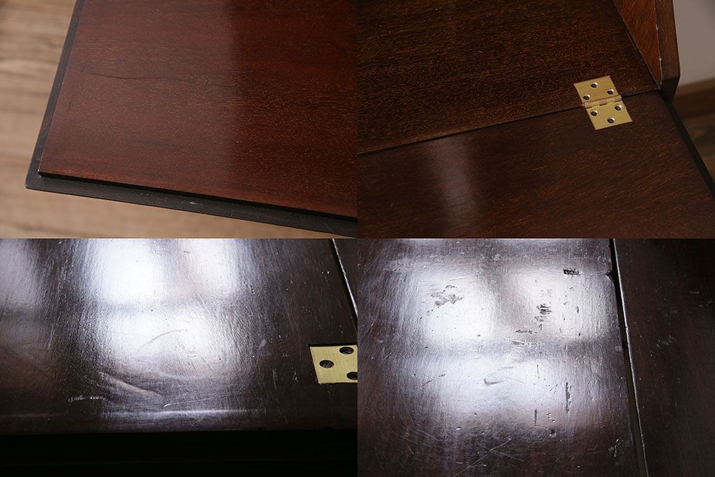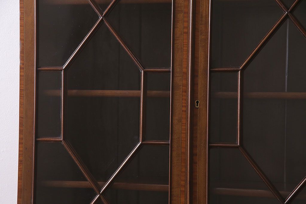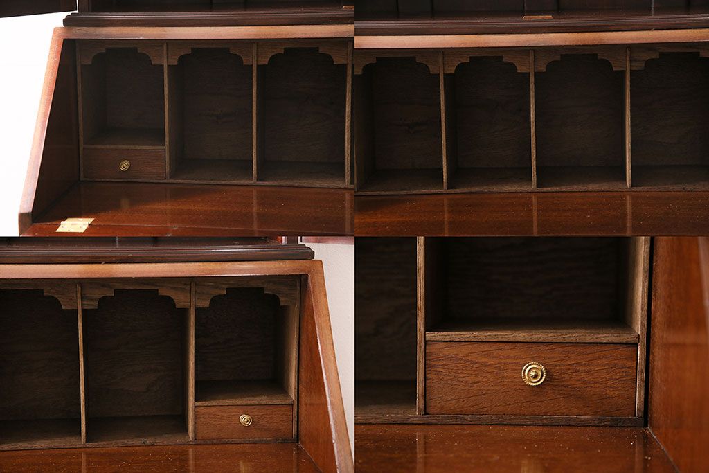 ラフジュ工房> デスク> ライティングビューロー・簿記机 > アンティーク家具 イギリスアンティーク マホガニー材 象嵌細工入りの上品なライティングビューロー(ビューローブックケース、簿記机、在宅ワーク、在宅用収納棚、本箱、ワークデスク)(R-046948)
