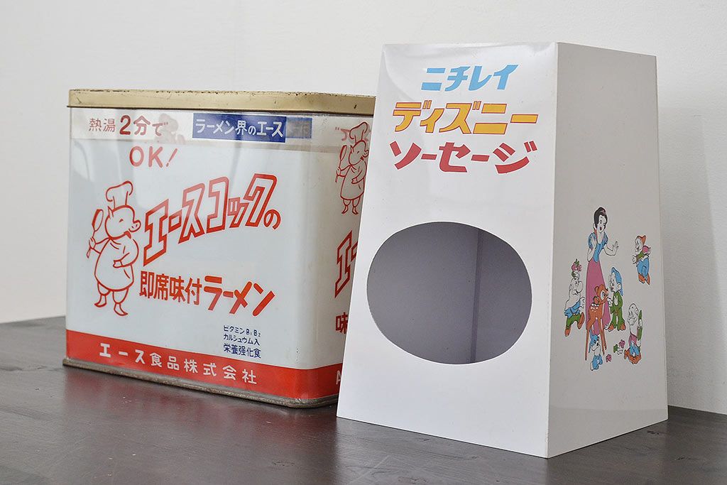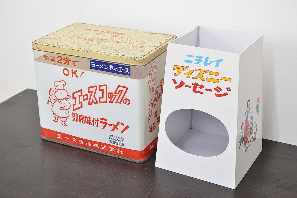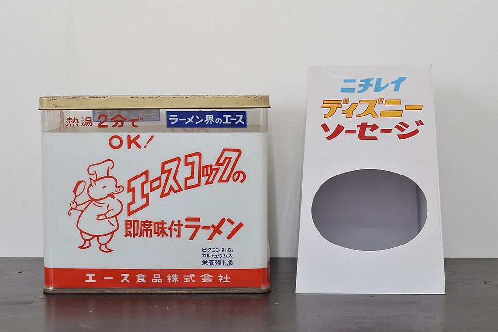 昭和レトロ エースコック プラ ブリキ缶 / ニチレイ ディズニー ソーセージ入れ(看板)(R-047058)