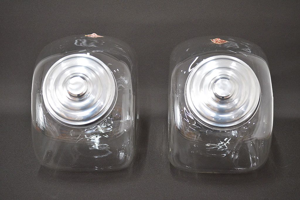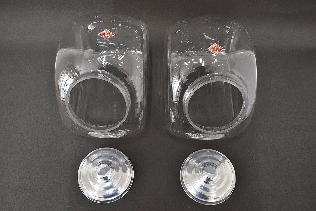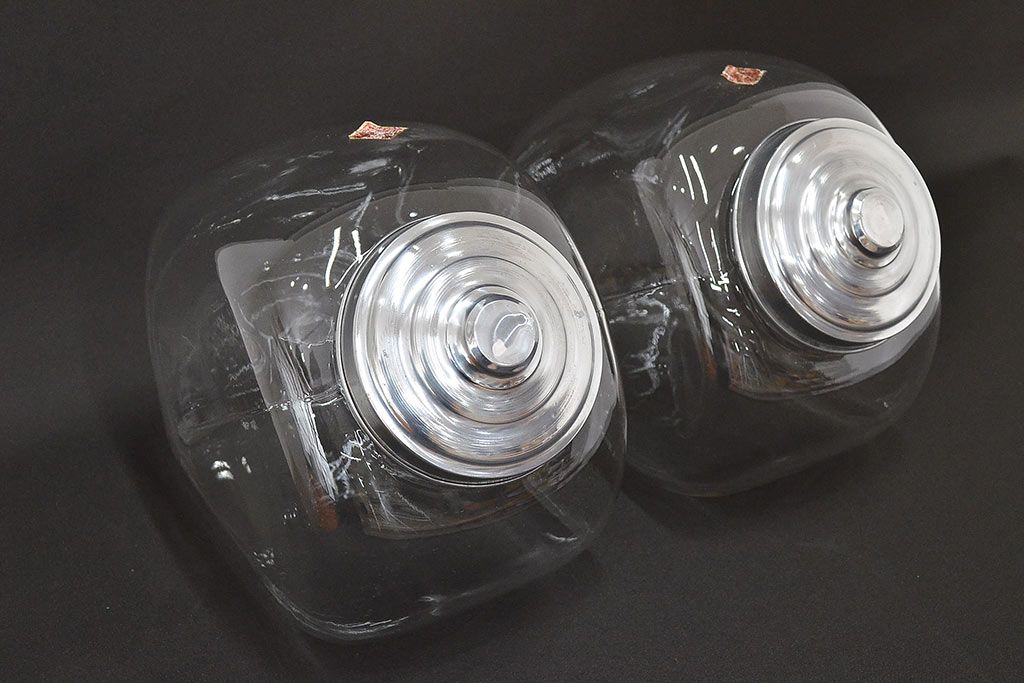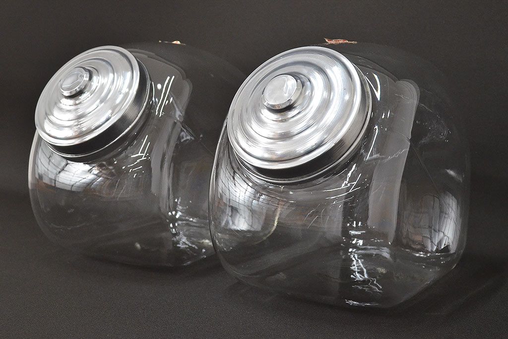 当時物 昭和レトロ 猫瓶2個セット(蓋付、ガラス瓶)(R-047076)