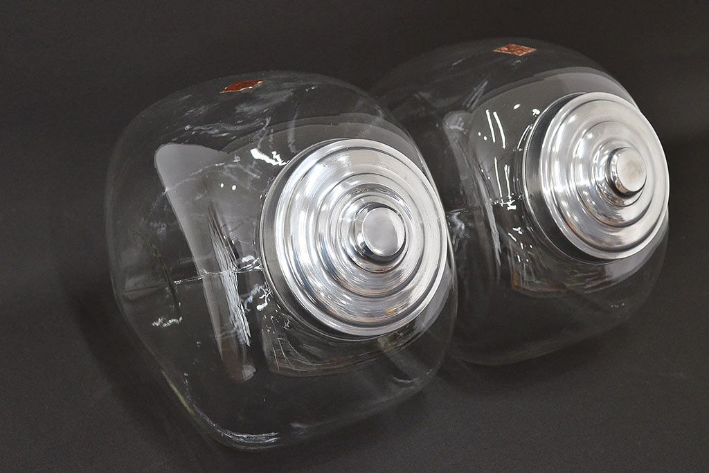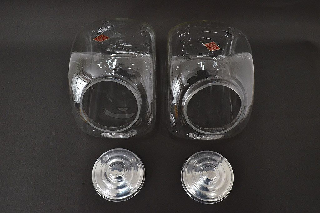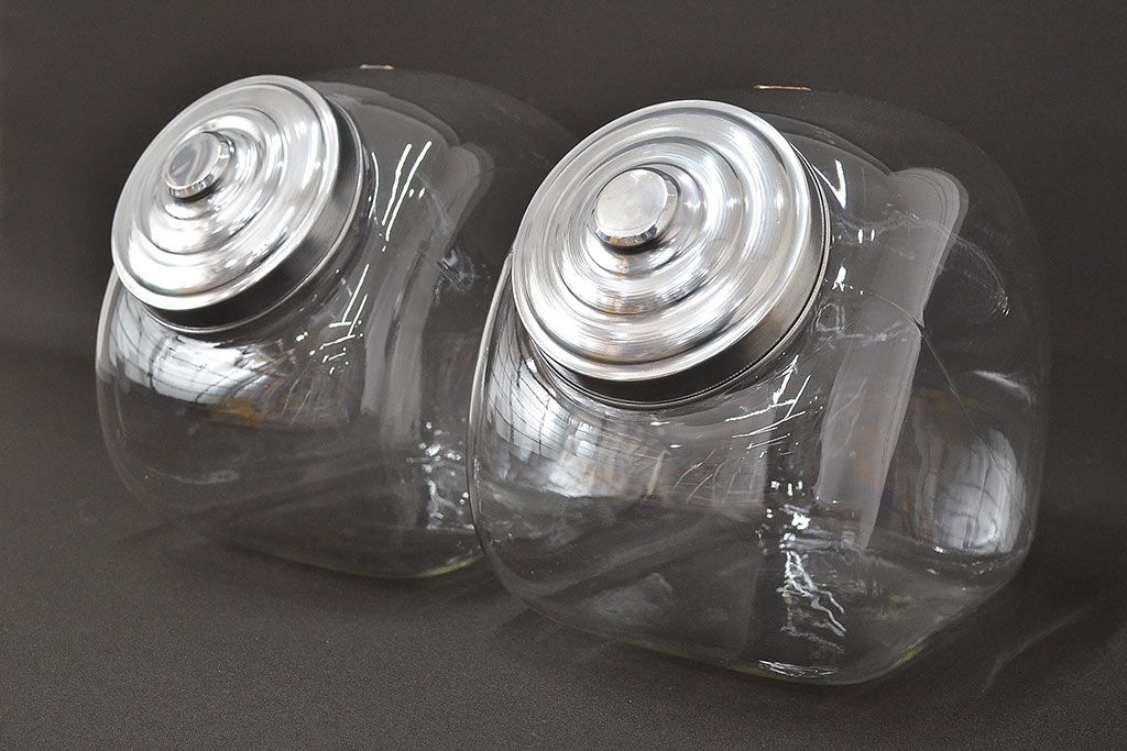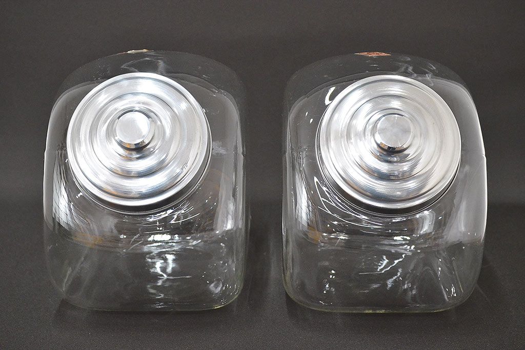 当時物 昭和レトロ 猫瓶2個セット(蓋付、ガラス瓶)(R-047077)
