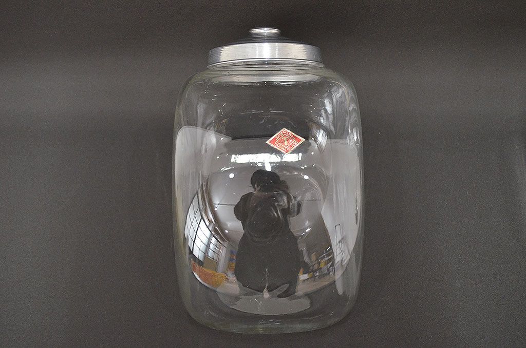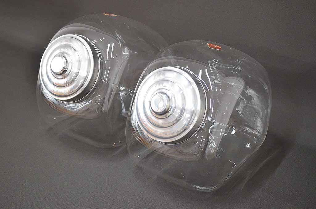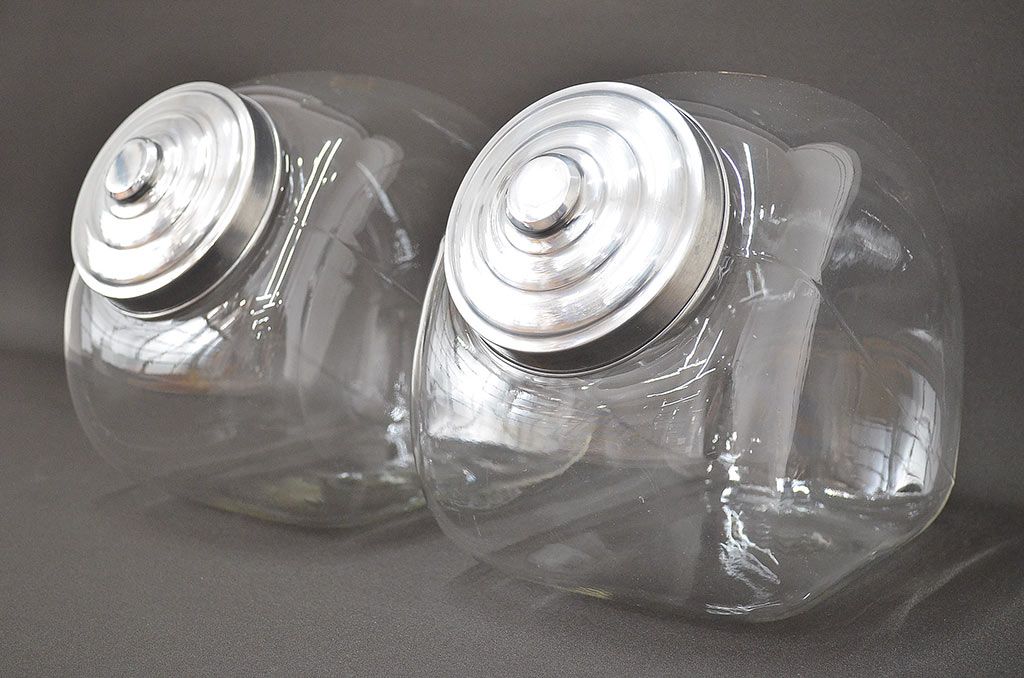 当時物 昭和レトロ 猫瓶2個セット(蓋付、ガラス瓶)(R-047078)