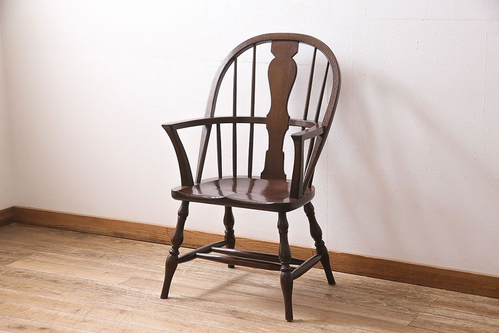 民芸家具 > 中古 松本民芸家具 特注品 栗材 優美なシルエットが魅力のWB型アームチェア(椅子)(R-046959)