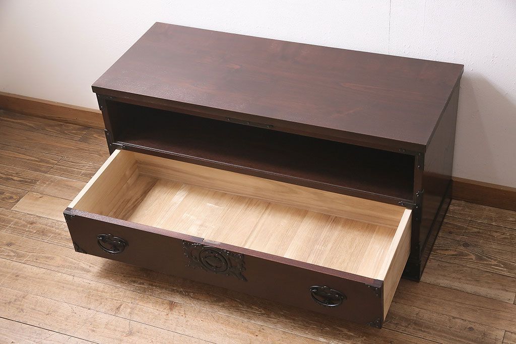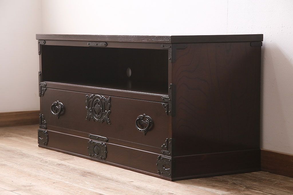 キャビネット・戸棚> テレビ台・ローボード > 中古 伝統工芸 岩谷堂箪笥 天板リメイク・厚手栗無垢材 高級感漂う和の空間作りにおすすめのテレビ台(テレビボード、ローボード)(R-046970)