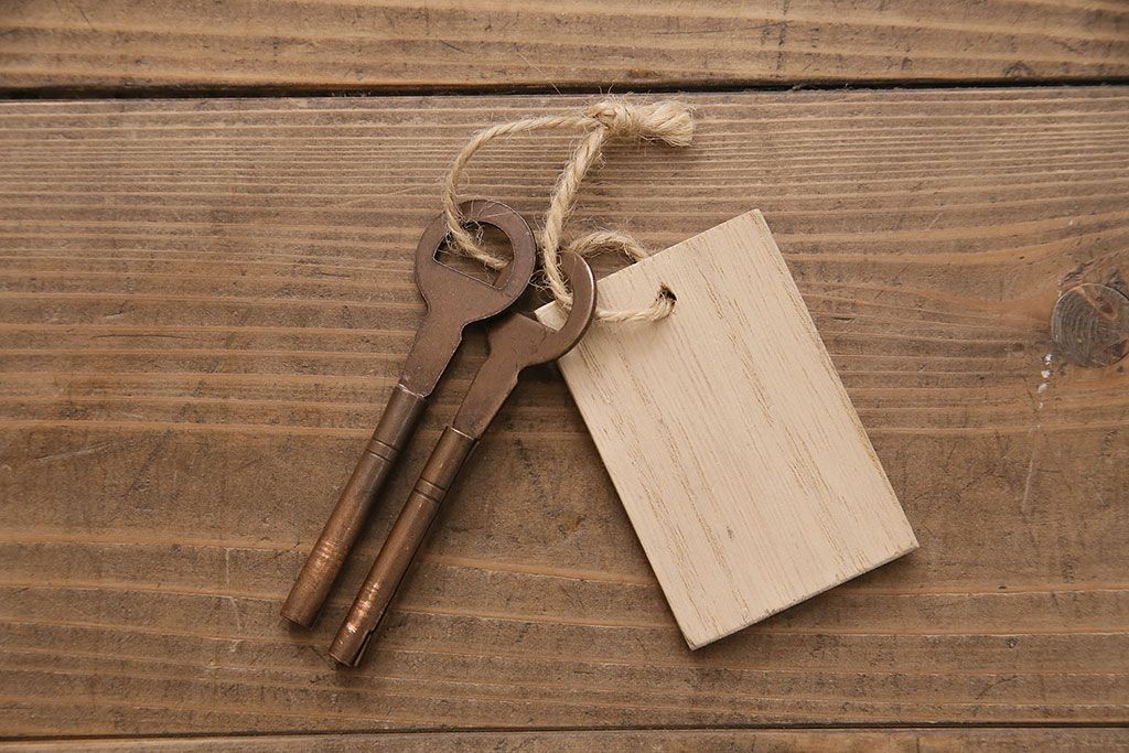 鍵は付属します。画像にありますように、袋に入れお付けします。スムーズに動くように調整していますが、あくまでも古いものや中古品ですので、長期の使用保証は出来かねます。ご購入後不具合が発生した場合は、当店でサポートさせていただきますので、お気軽にご相談くださいませ。
