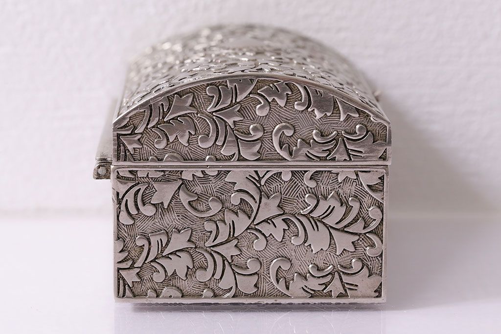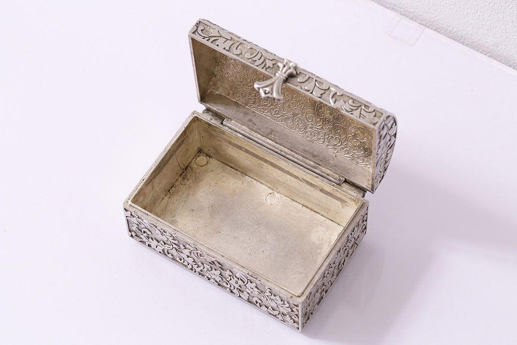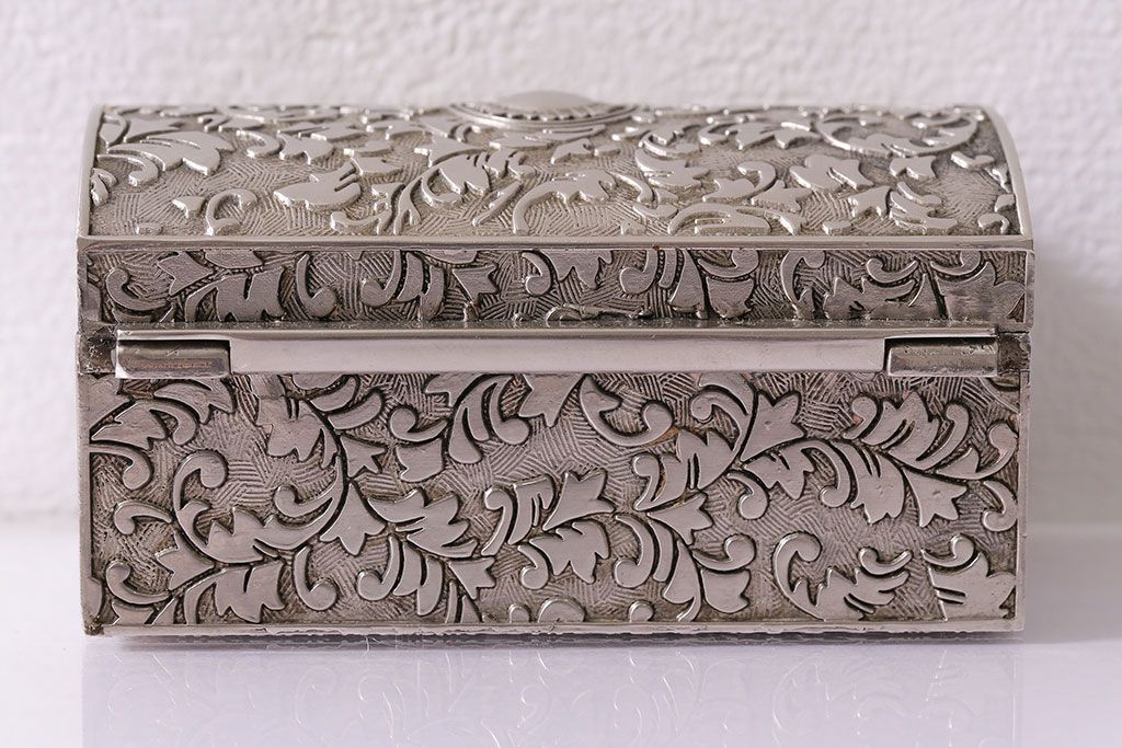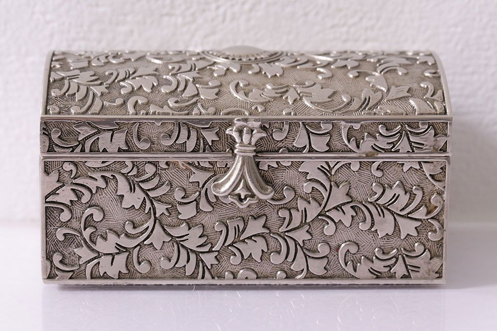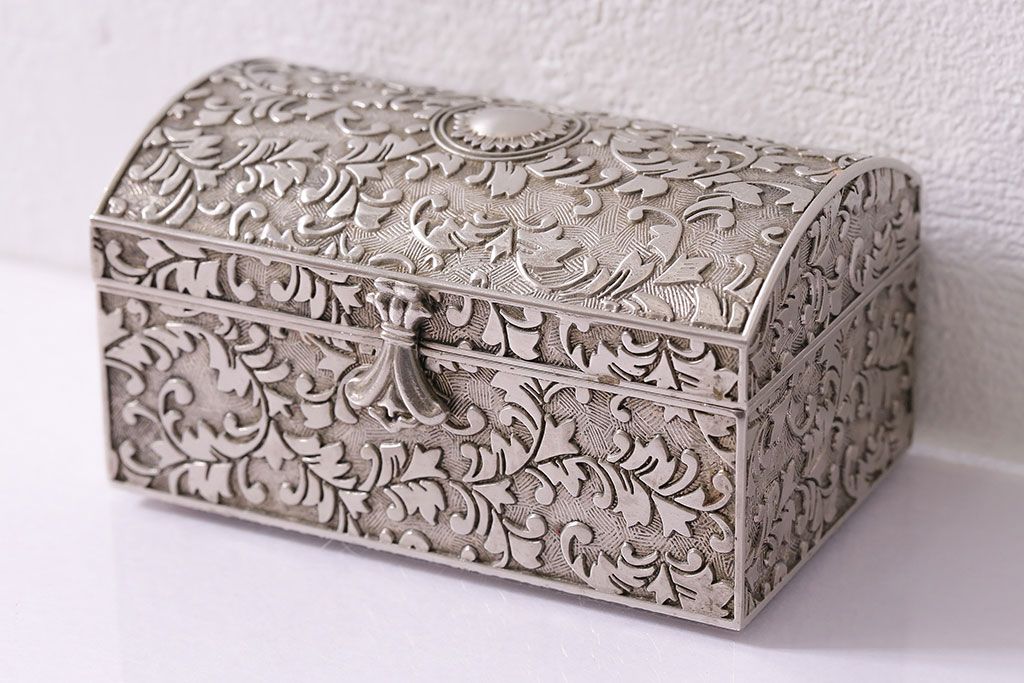 ビンテージ イギリス 銀メッキ メタル 小物入れ(アクセサリーケース、ジュエリーボックス、ヴィンテージ)(R-047003)