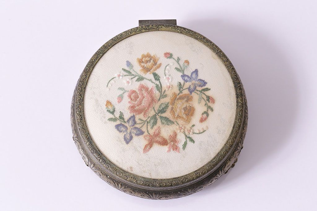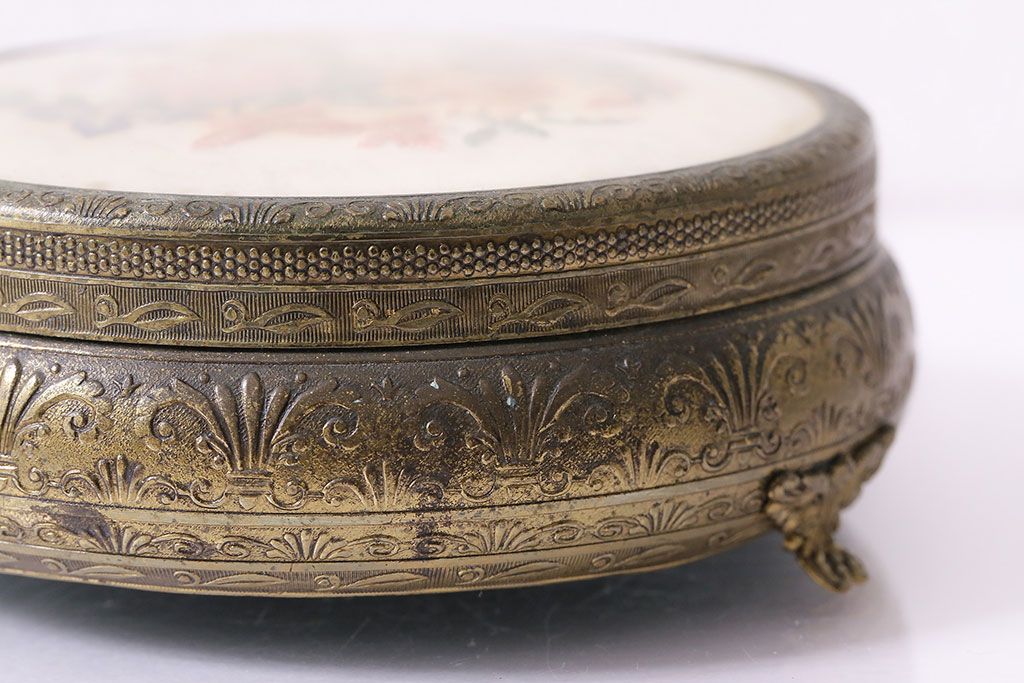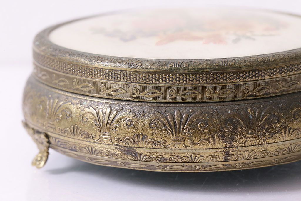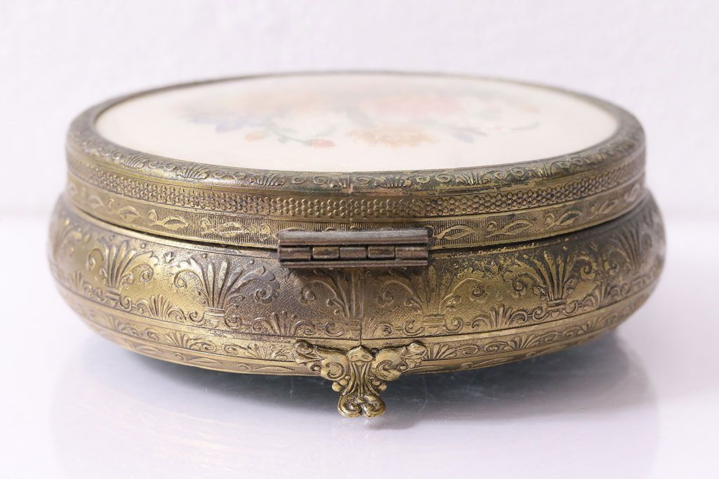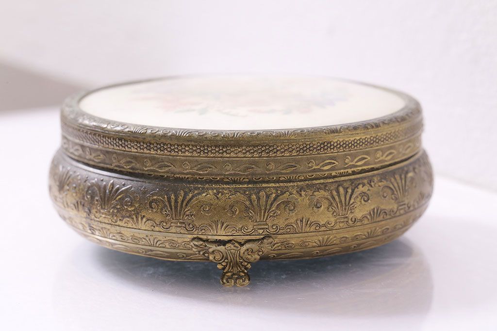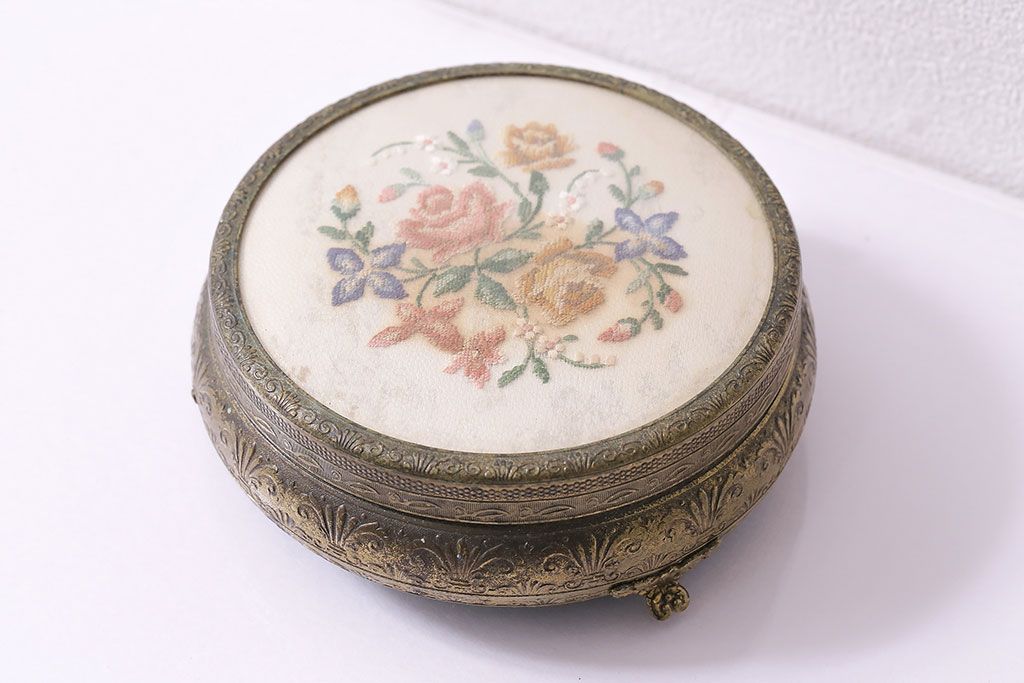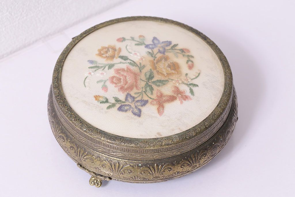 ビンテージ イギリス 薔薇・花柄 ジュエリーボックス(小物入れ、アクセサリーケース、メタル、ヴィンテージ)(R-047001)