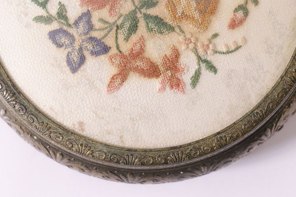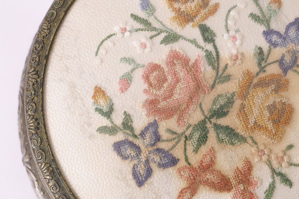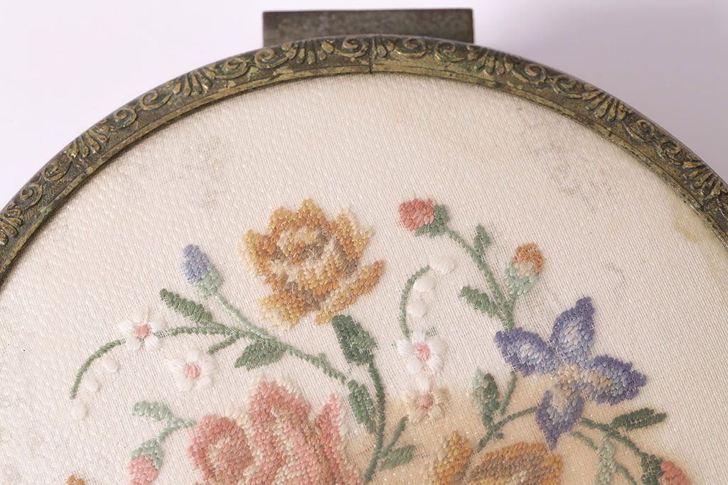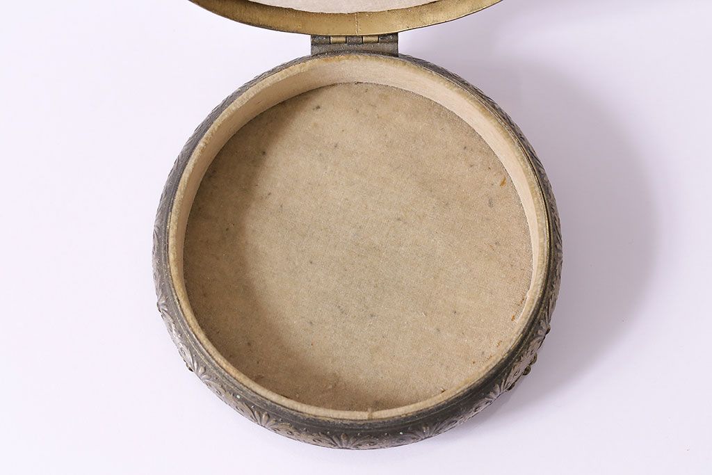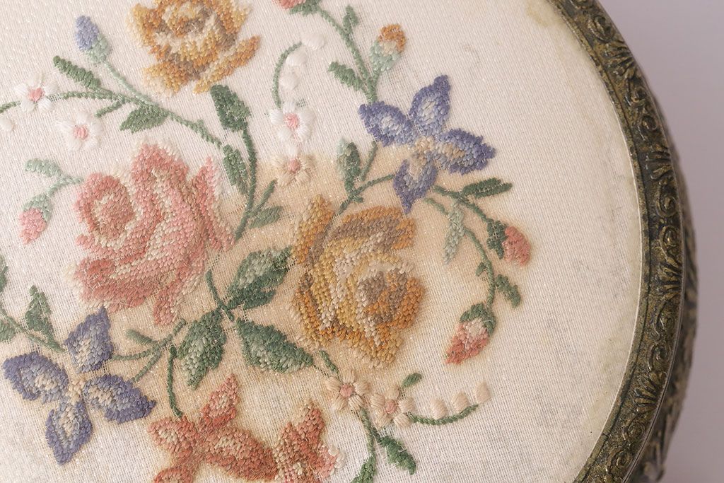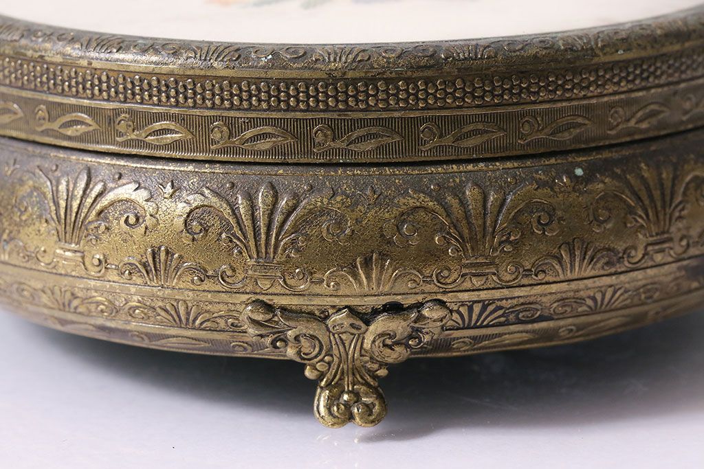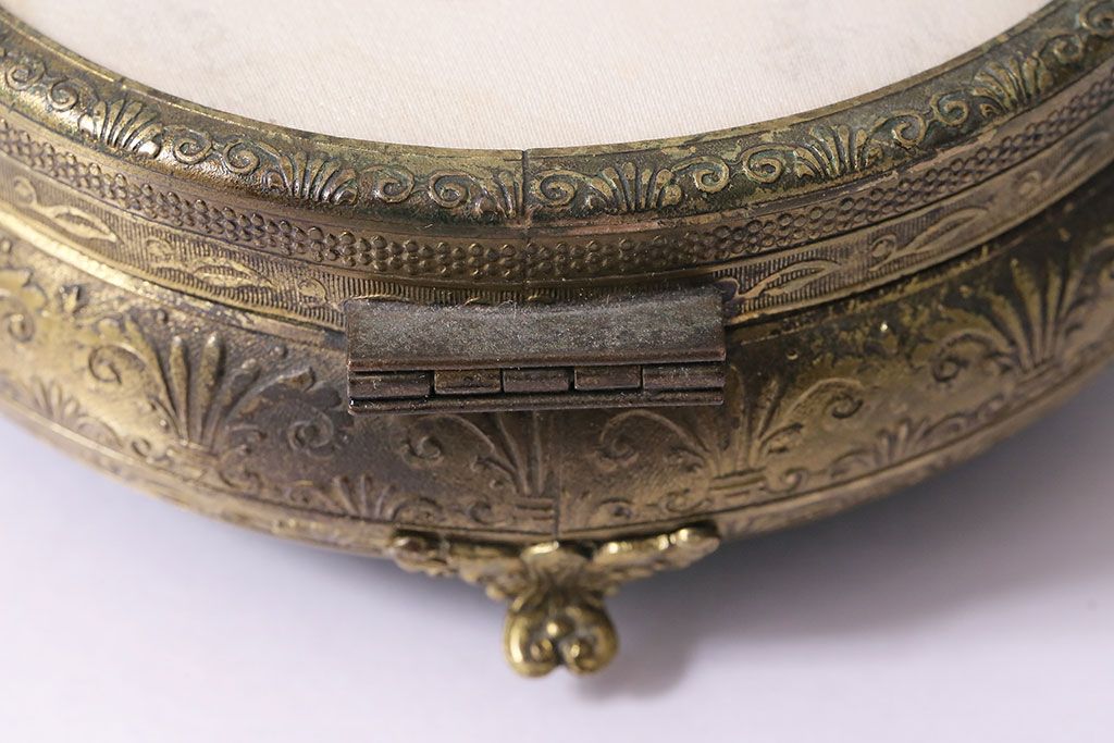 ビンテージ イギリス 薔薇・花柄 ジュエリーボックス(小物入れ、アクセサリーケース、メタル、ヴィンテージ)(R-047001)