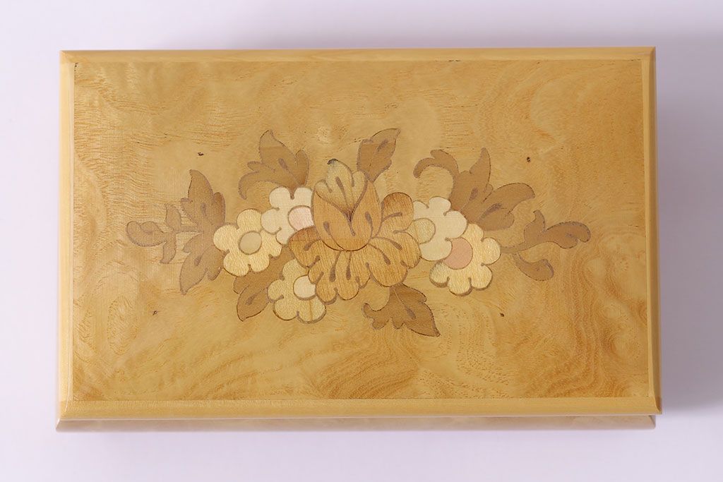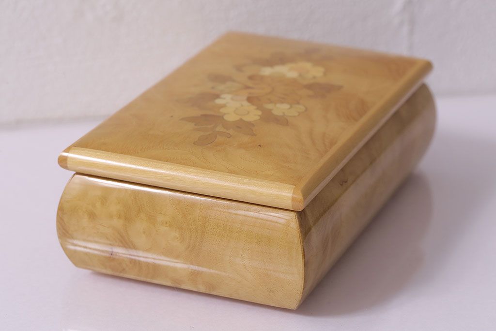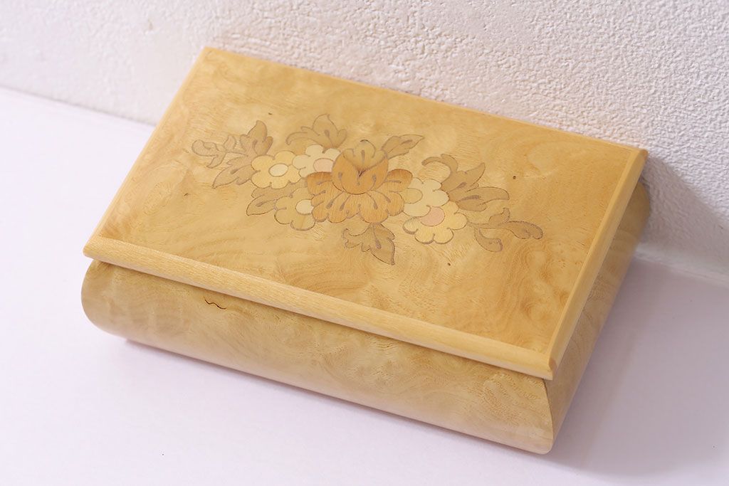 ビンテージ イギリス ウォールナット 花図 ジュエリーボックス(小物入れ、アクセサリーケース、ヴィンテージ)(R-047002)