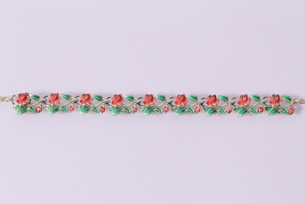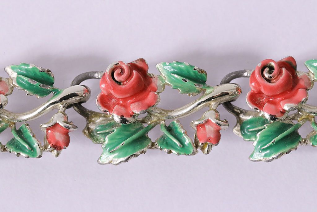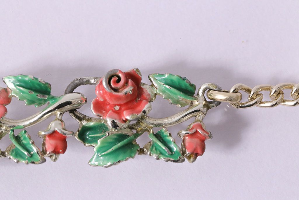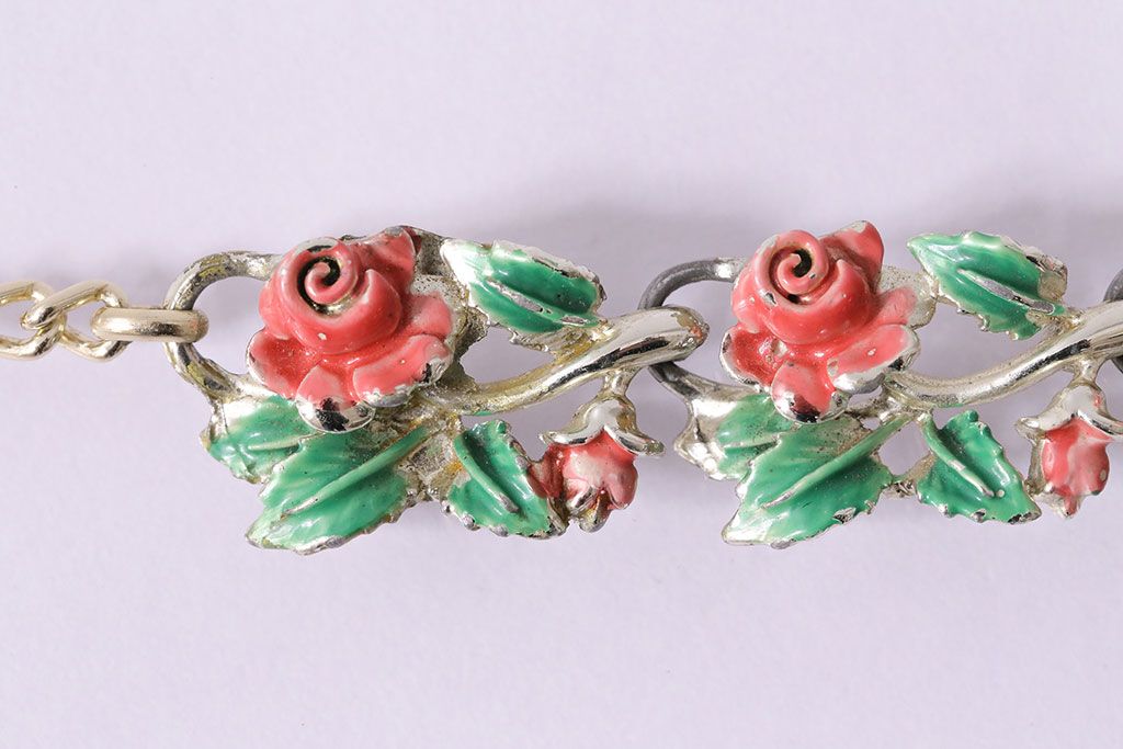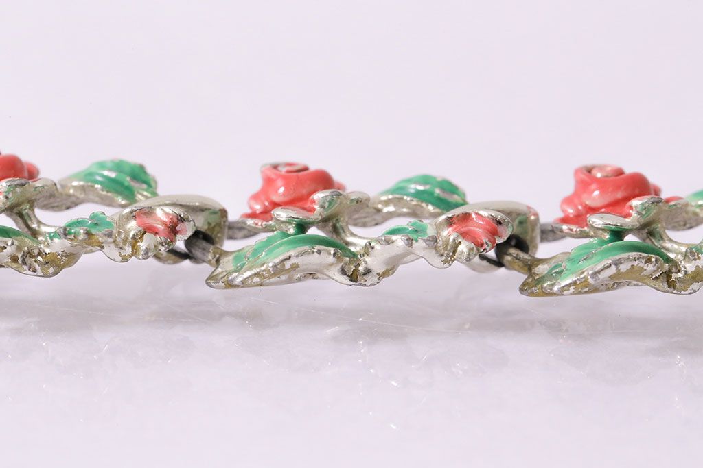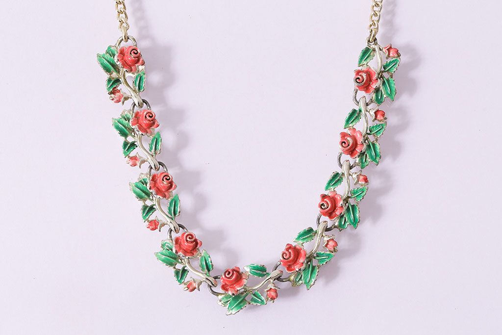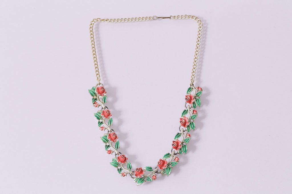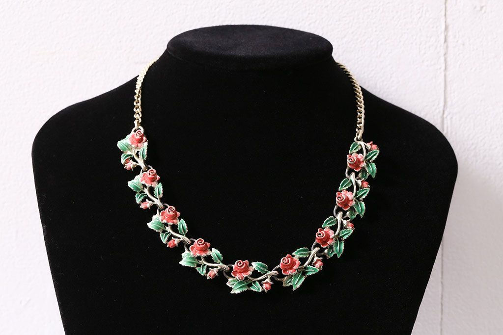 ヴィンテージアクセサリー Exquisite of Solifull 薔薇飾り ネックレス(ROSE、バラ、メタル、エナメル、ビンテージ)(R-047005)