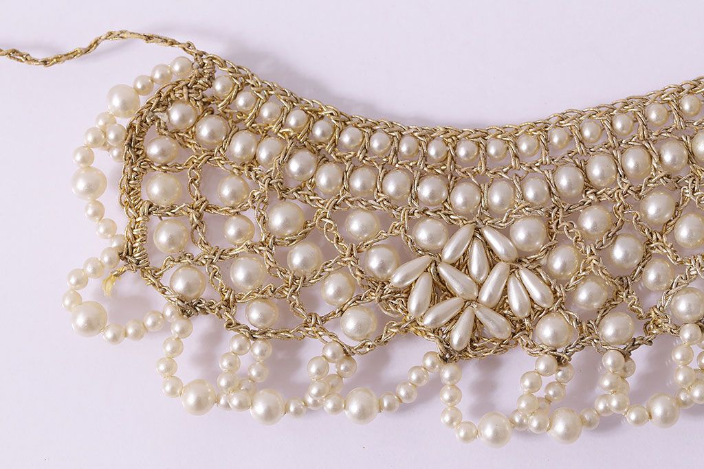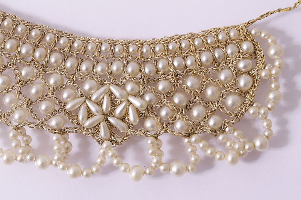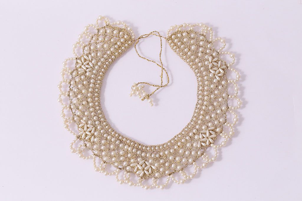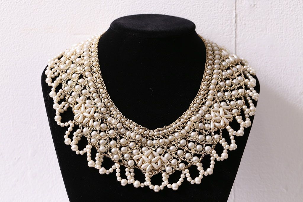 ラフジュ工房> アクセサリー> ペンダント・ネックレス > ヴィンテージアクセサリー イギリス 付け襟ネックレス(パール、レース、ビンテージ)(R-047007)