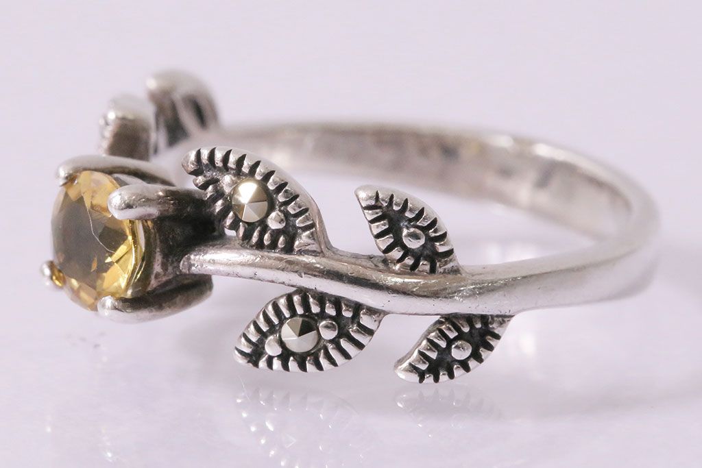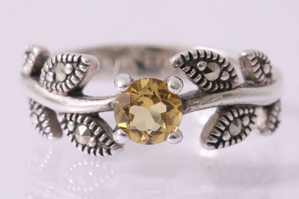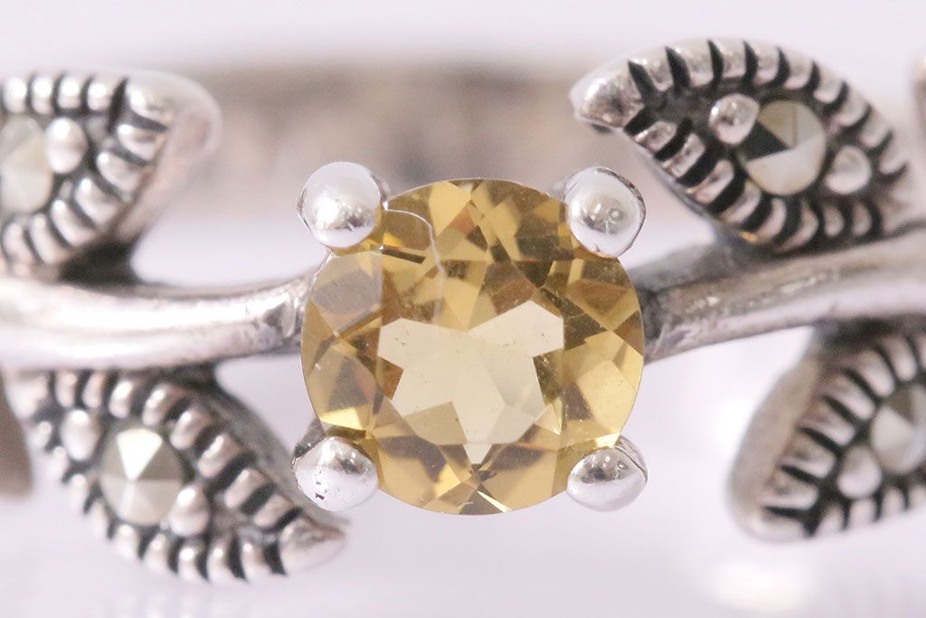 ラフジュ工房> アクセサリー > ヴィンテージアクセサリー イギリス シルバー925 イエローストーン リーフモチーフ リング(指輪、ビンテージ)(R-047012)
