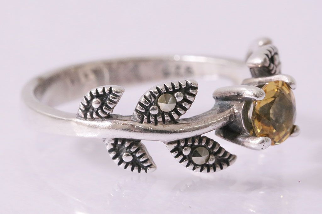 ラフジュ工房> 雑貨 > ヴィンテージアクセサリー イギリス シルバー925 イエローストーン リーフモチーフ リング(指輪、ビンテージ)(R-047012)