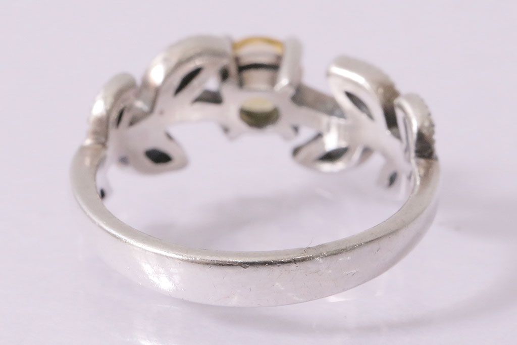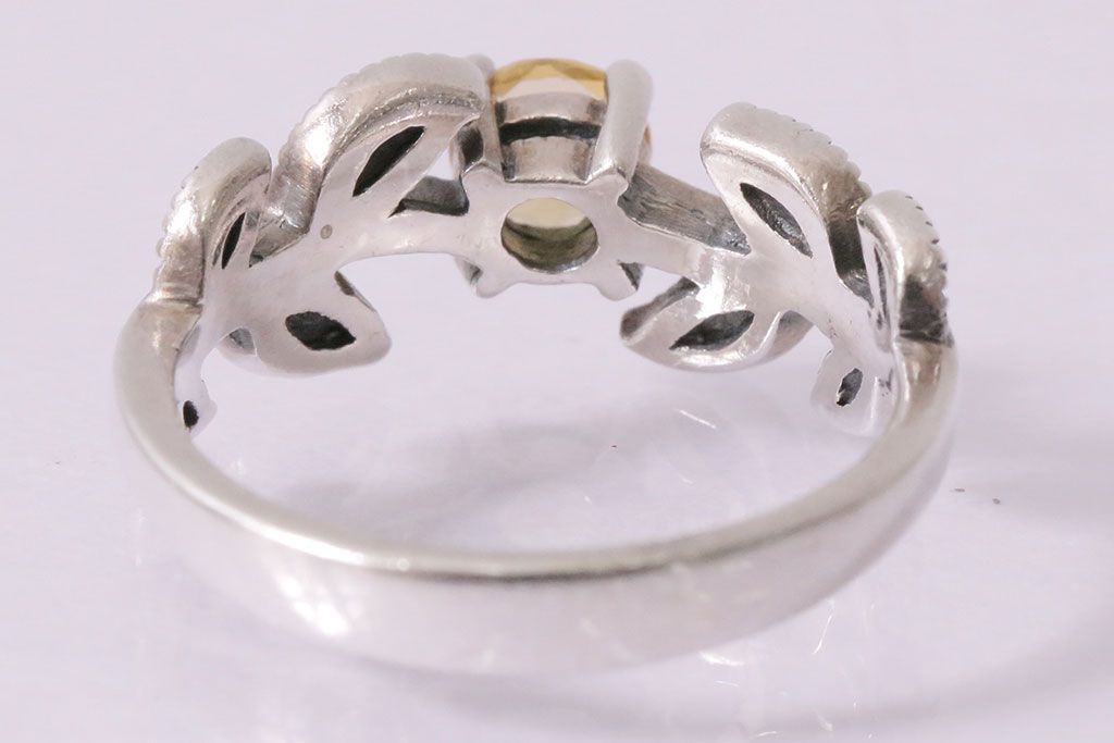 ヴィンテージアクセサリー イギリス シルバー925 イエローストーン リーフモチーフ リング(指輪、ビンテージ)(R-047012)