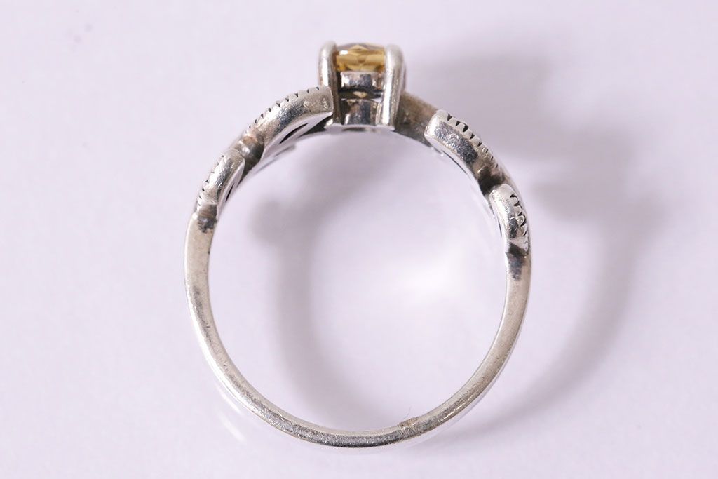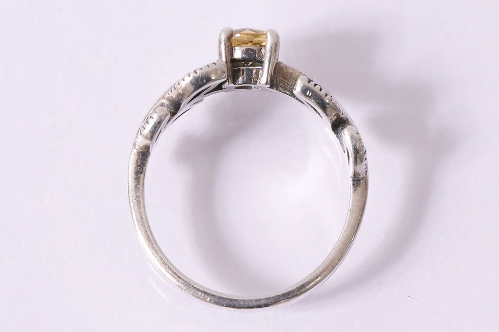 ラフジュ工房> アクセサリー> リング > ヴィンテージアクセサリー イギリス シルバー925 イエローストーン リーフモチーフ リング(指輪、ビンテージ)(R-047012)
