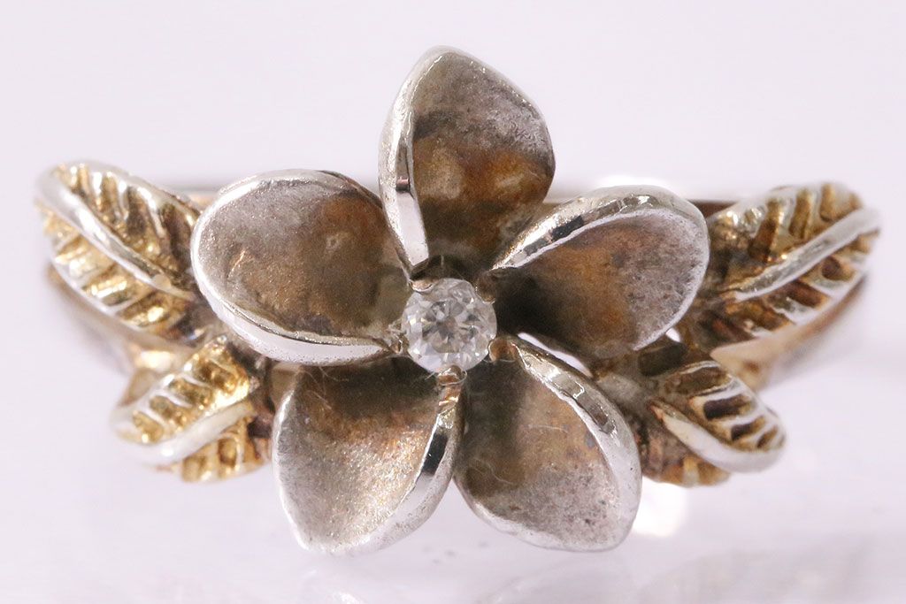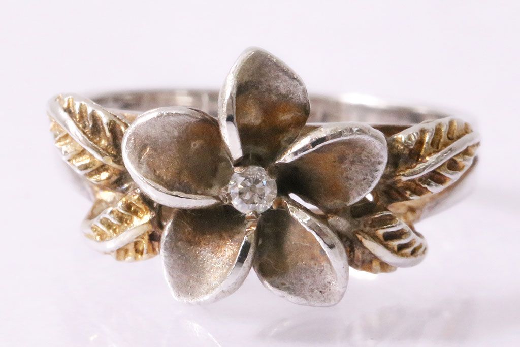 ラフジュ工房> アクセサリー> リング > ヴィンテージアクセサリー イギリス シルバー925 キュービックジルコニア 花飾り リング(指輪、ビンテージ)(R-047013)