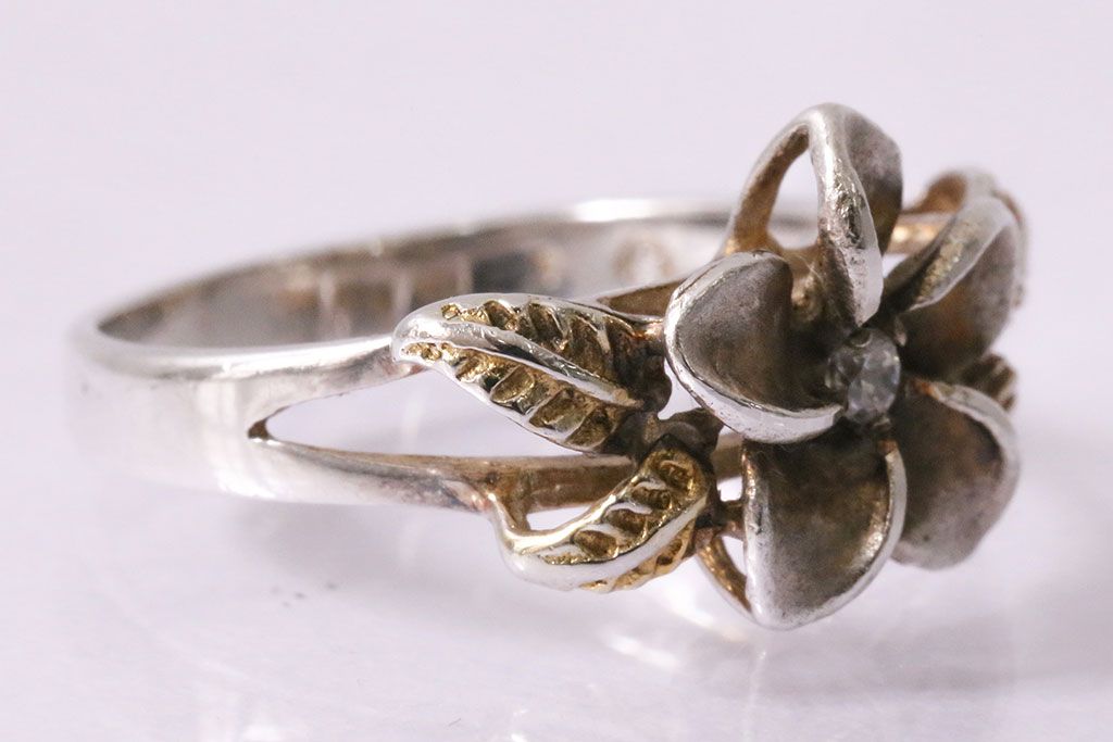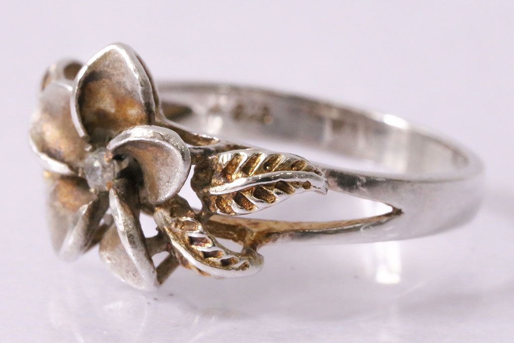 ラフジュ工房> アクセサリー > ヴィンテージアクセサリー イギリス シルバー925 キュービックジルコニア 花飾り リング(指輪、ビンテージ)(R-047013)