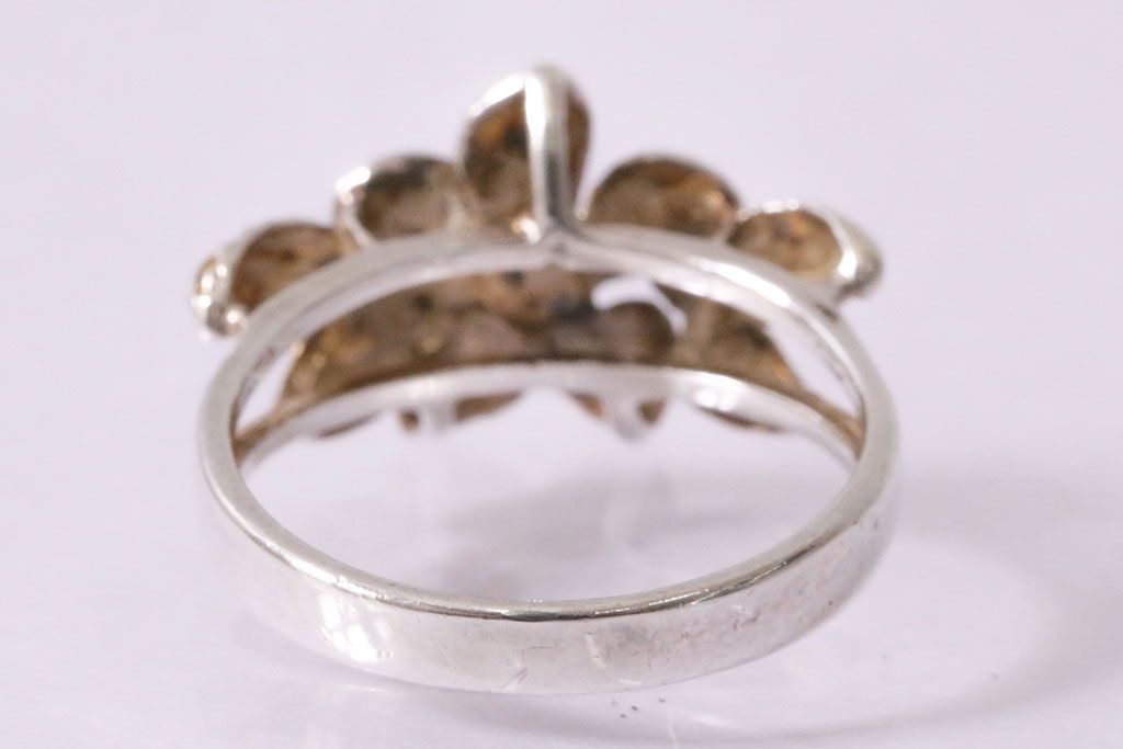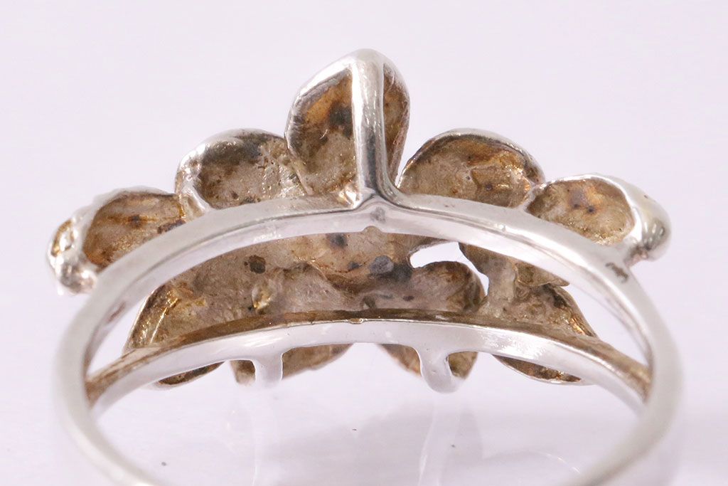 ヴィンテージアクセサリー イギリス シルバー925 キュービックジルコニア 花飾り リング(指輪、ビンテージ)(R-047013)