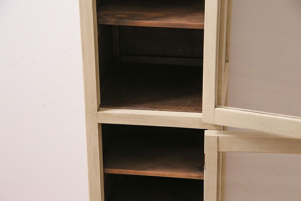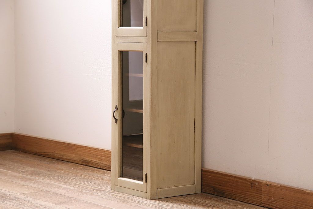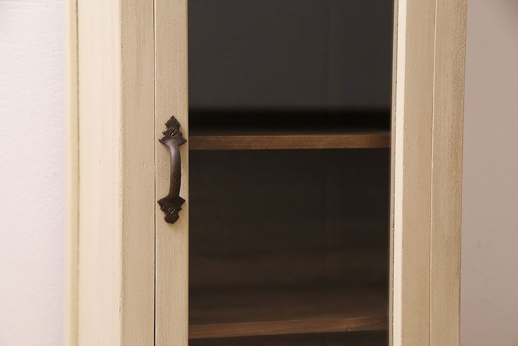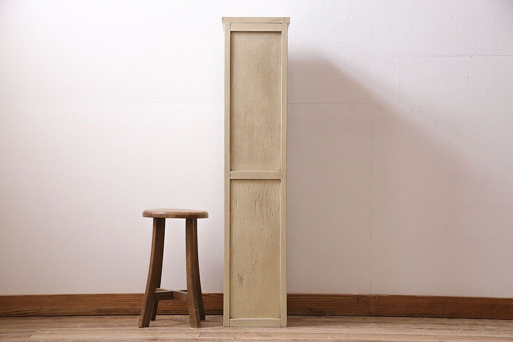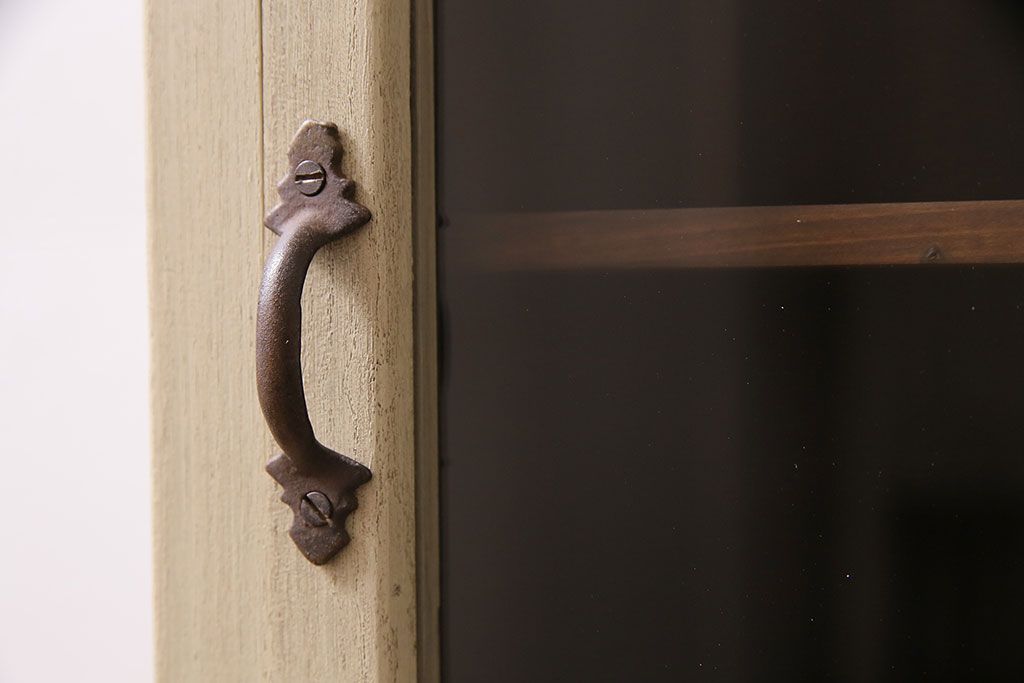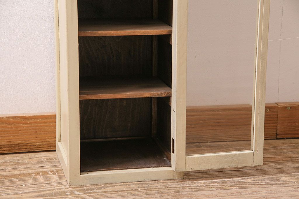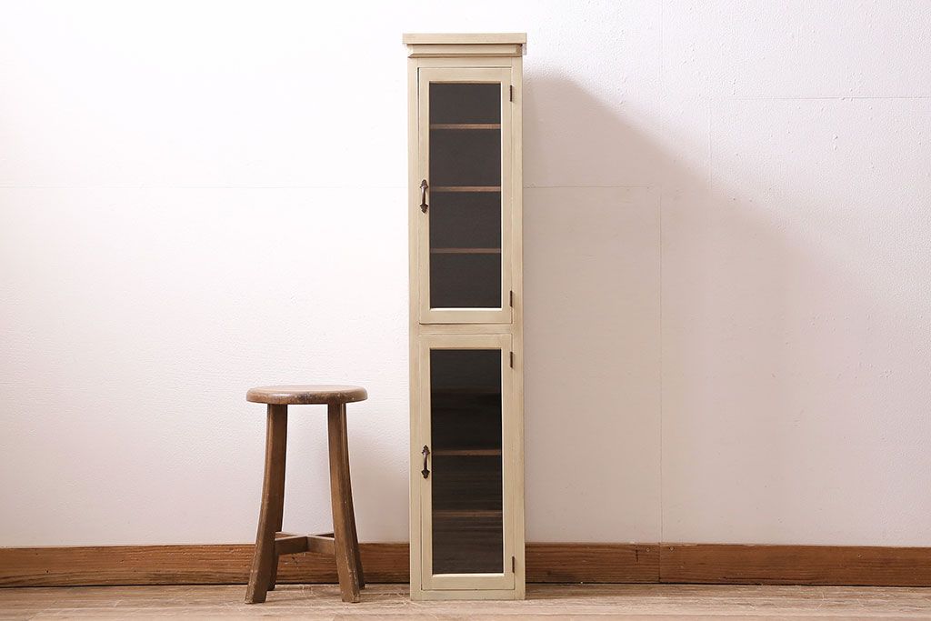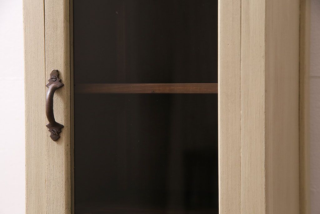 キャビネット・戸棚 > アンティーク家具 昭和初期 ペイント 幅狭タイプが珍しい!レトロなガラス戸棚(キャビネット、収納棚)(R-046990)