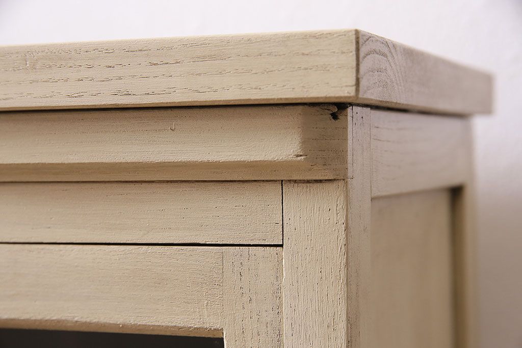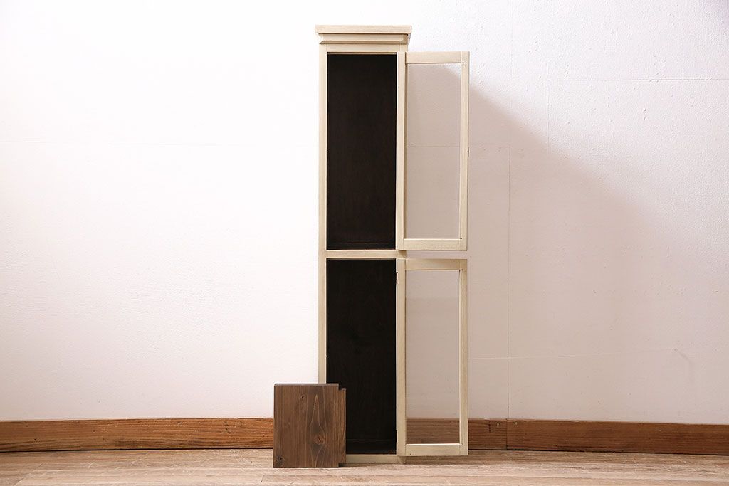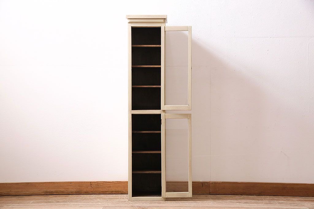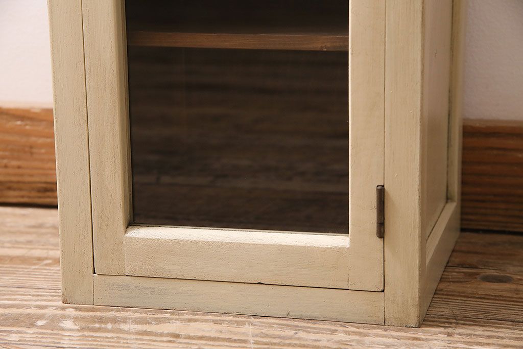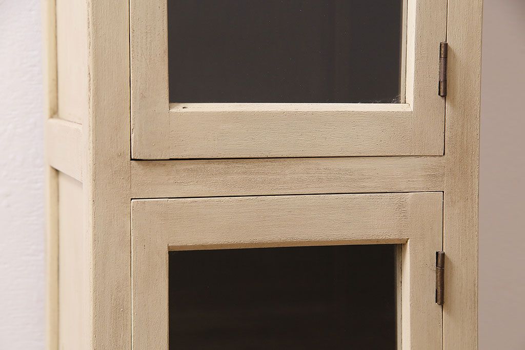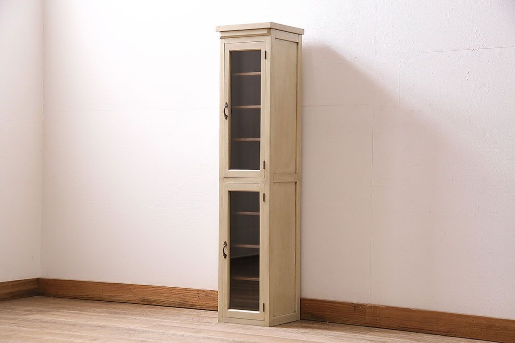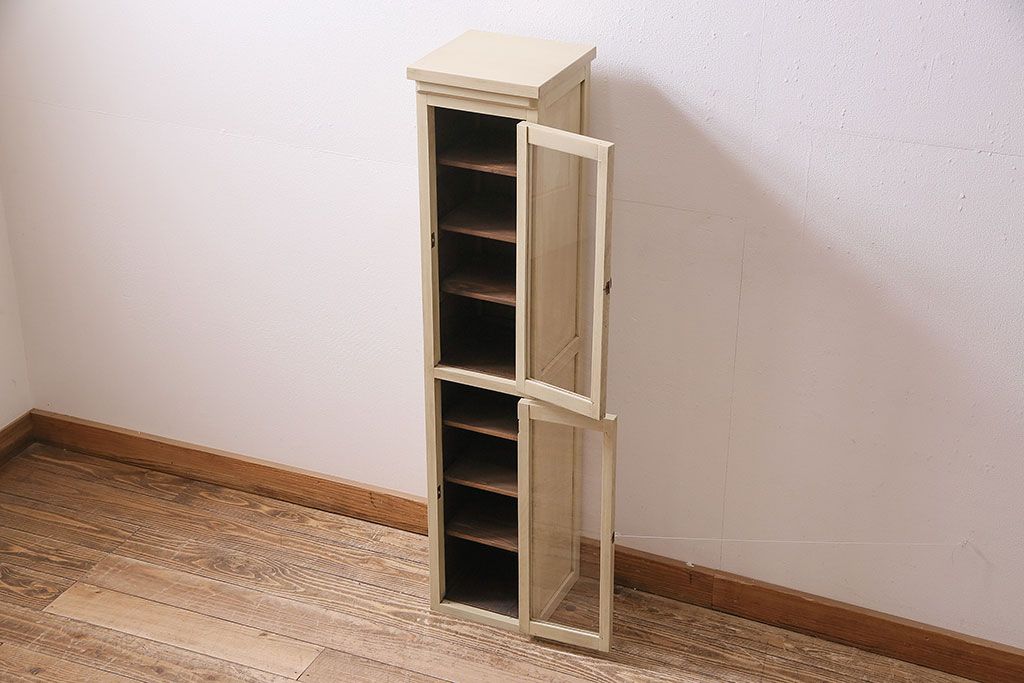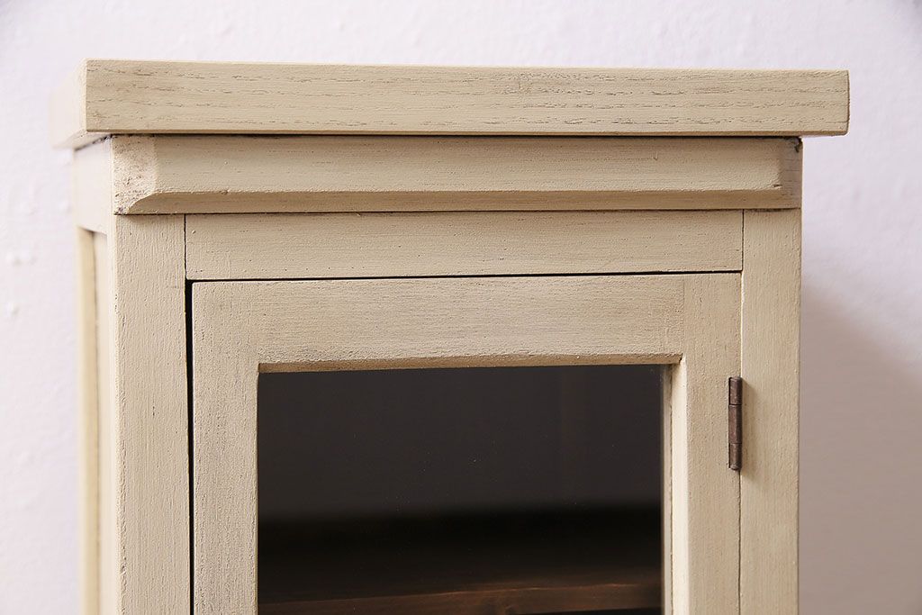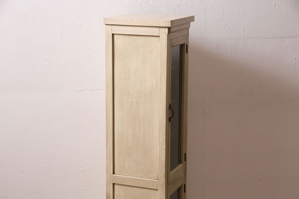 キャビネット・戸棚 > アンティーク家具 昭和初期 ペイント 幅狭タイプが珍しい!レトロなガラス戸棚(キャビネット、収納棚)(R-046990)