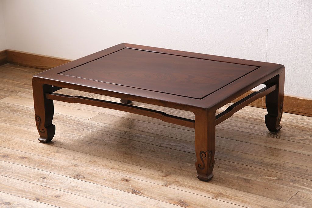 アンティーク家具 昭和初期 総ケヤキ材 脚の彫りが目を引く座卓(ローテーブル)(R-046985)です。