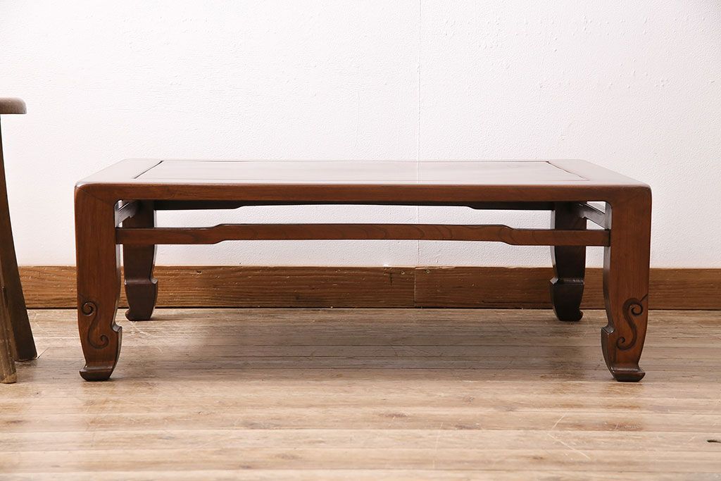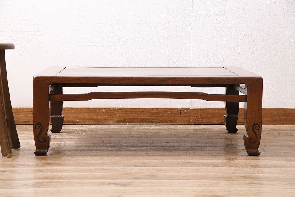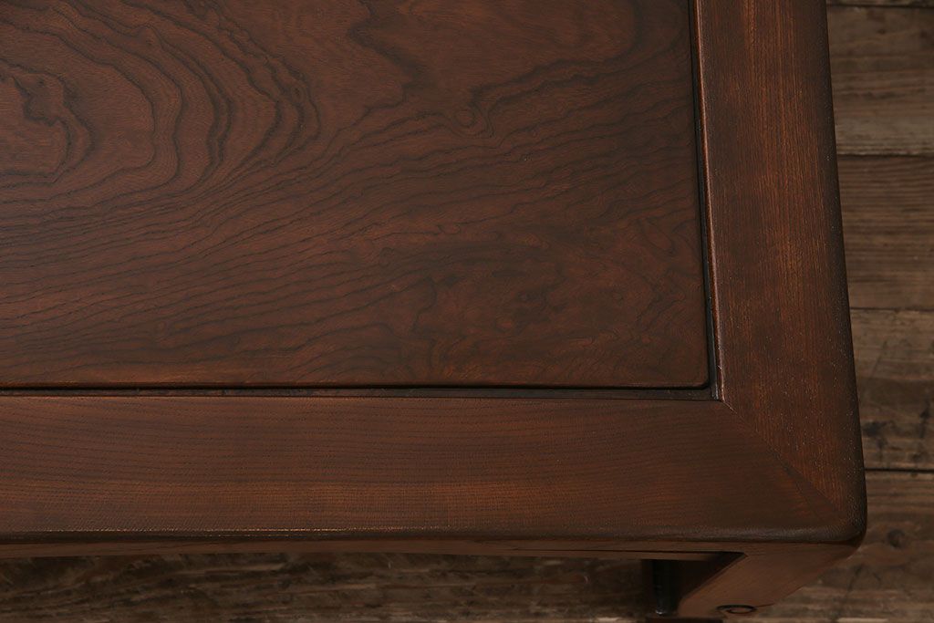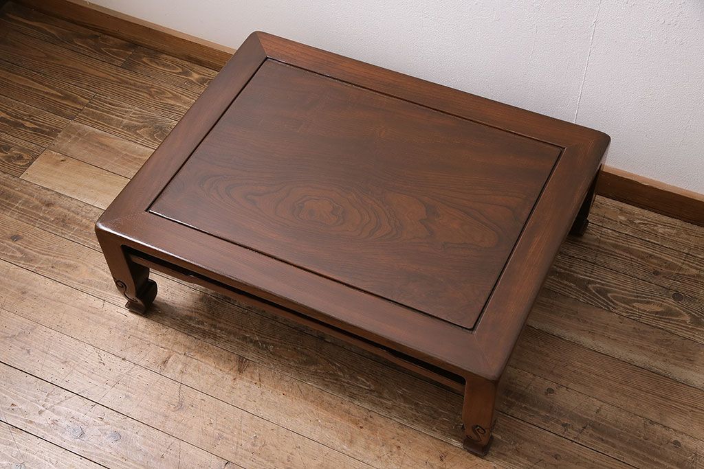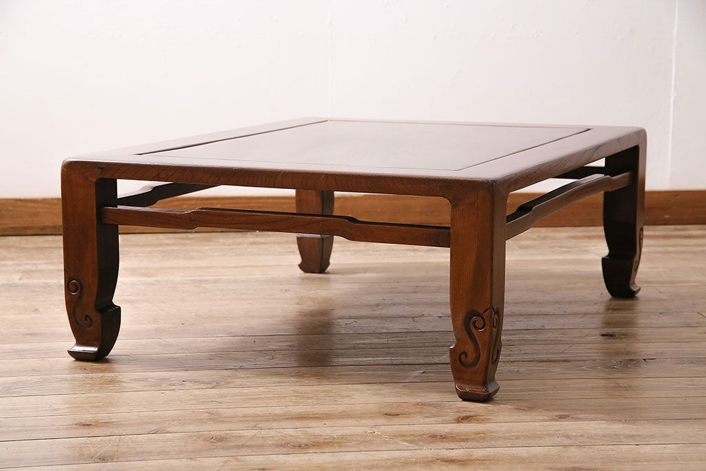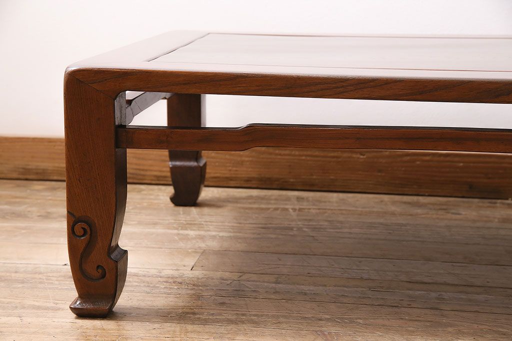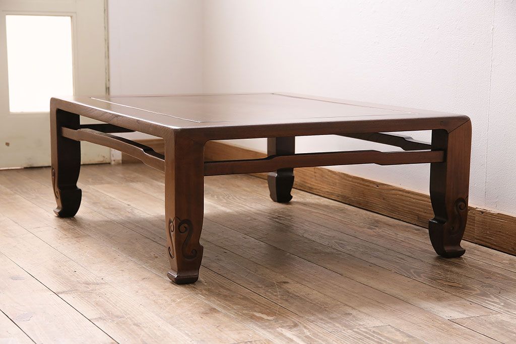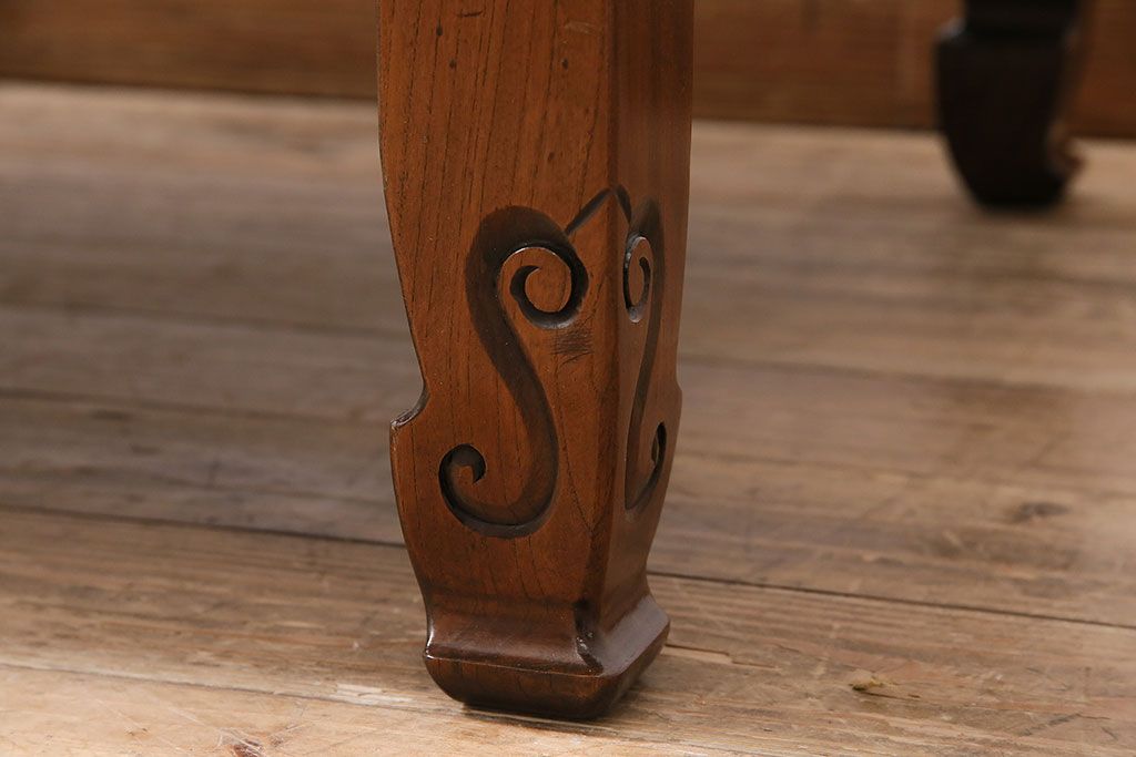 アンティーク家具 昭和初期 総ケヤキ材 脚の彫りが目を引く座卓(ローテーブル)(R-046985)