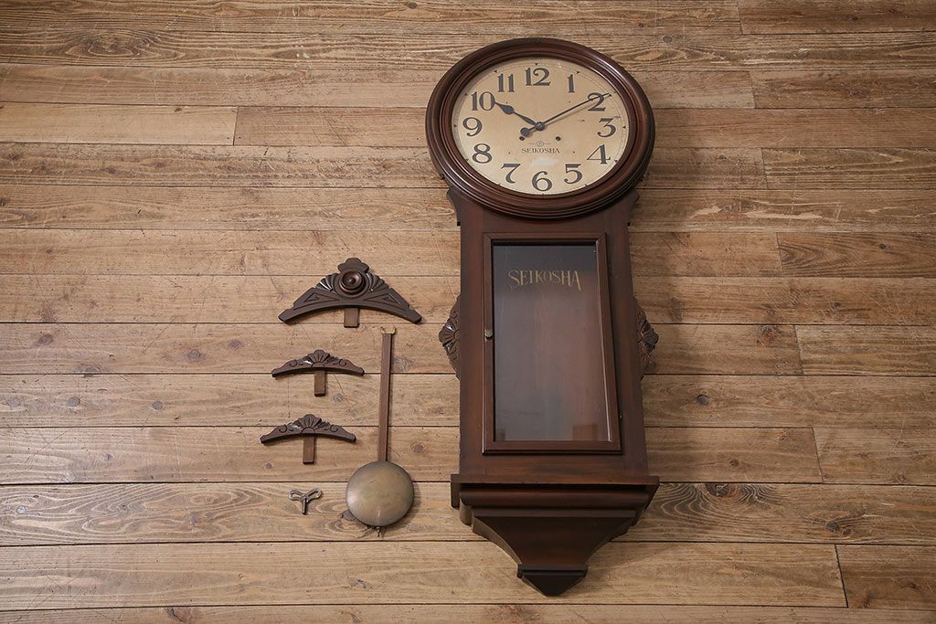 時計> 掛け時計 > アンティーク時計 精工舎 TRADE(S)MARK トレードマーク SEIKO セイコー 特大掛け時計(SEIKOSHA、振り子時計、古時計、柱時計)(R-047131)