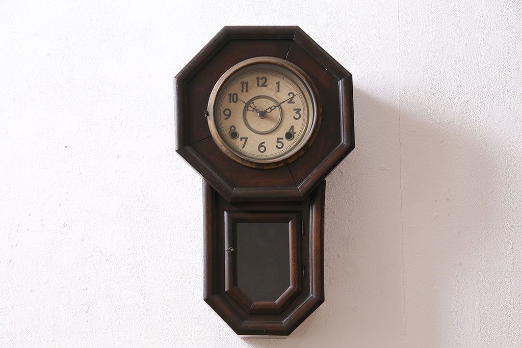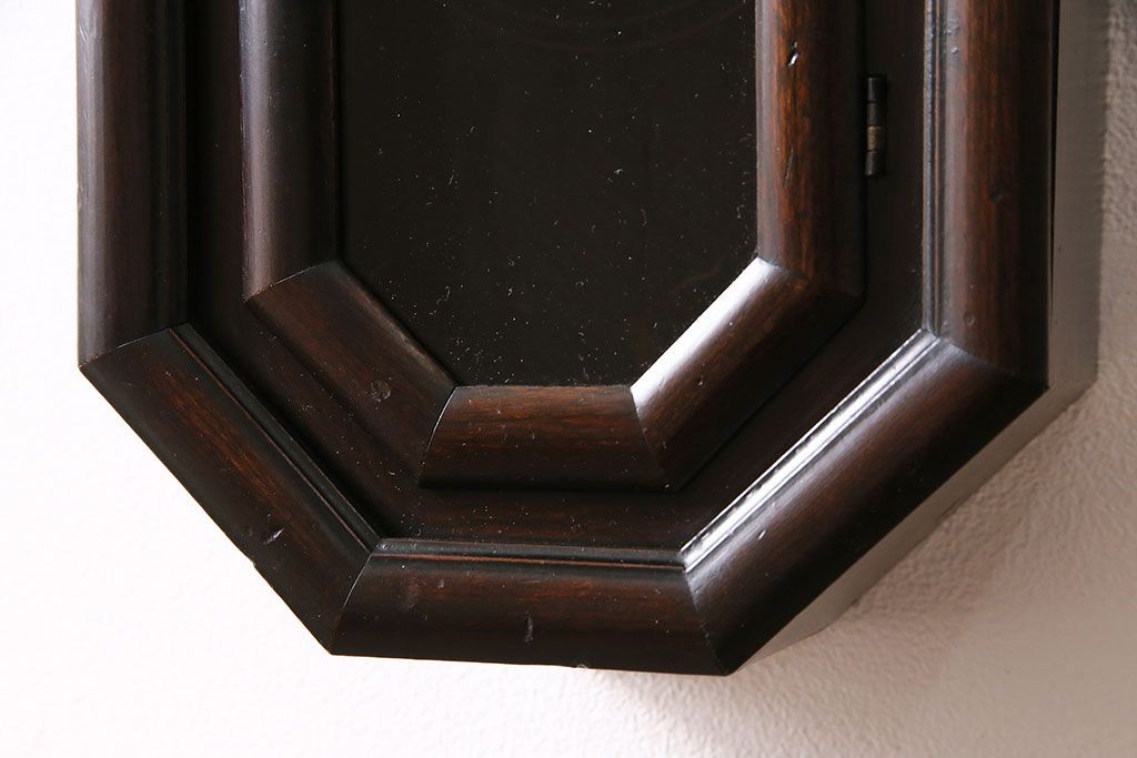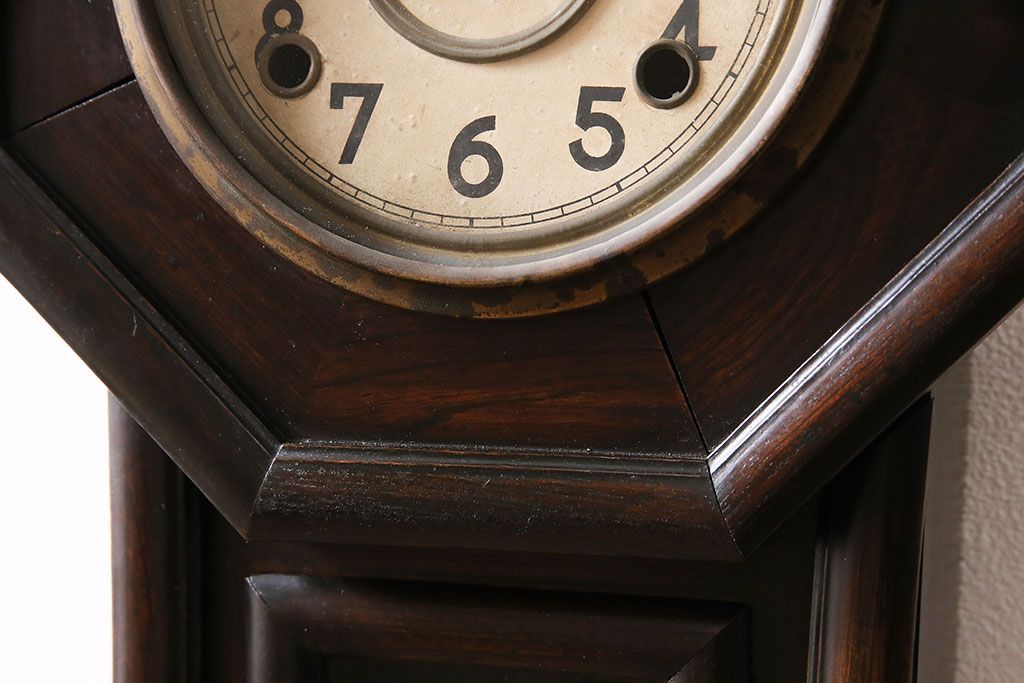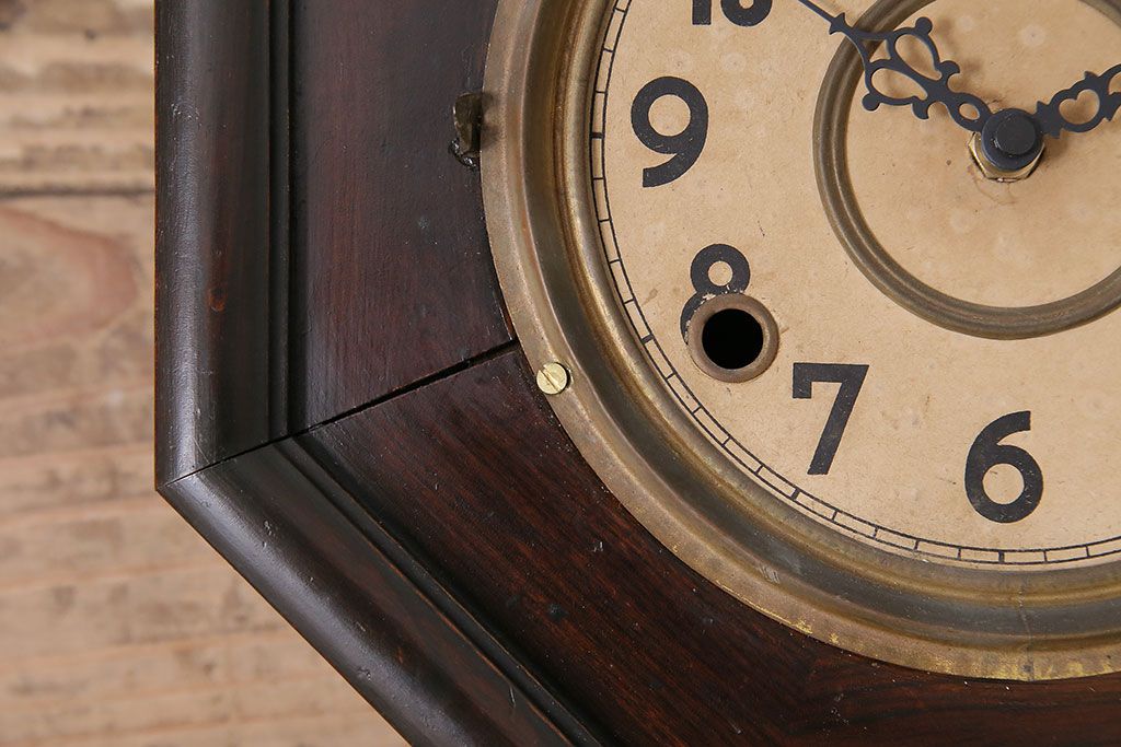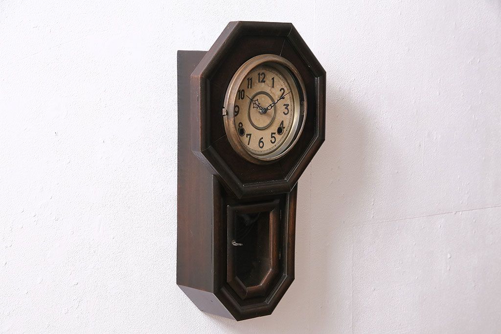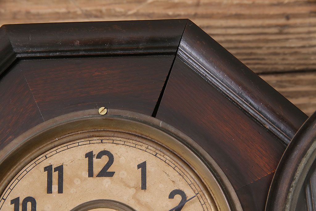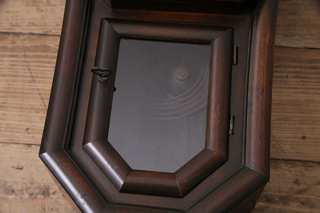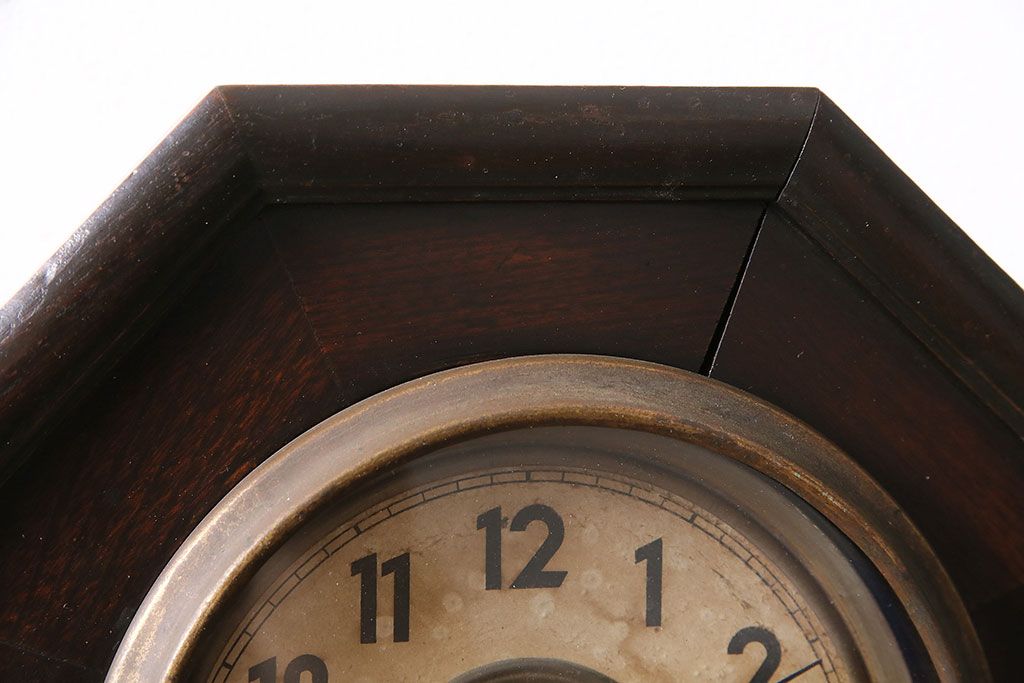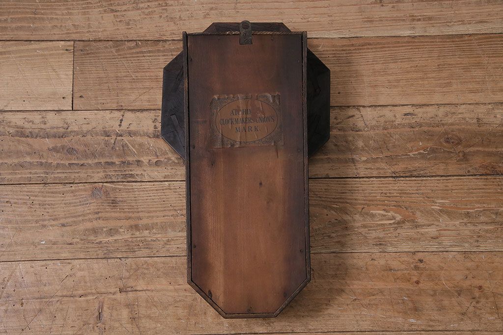 時計> 掛け時計 > アンティーク時計 愛知県時計製造共同組合(AICHIKEN CLOCK-MAKERS' UNION'S MARK) 電池式 年月を重ねた趣溢れる八角型柱時計(掛け時計、古時計)(R-047033)