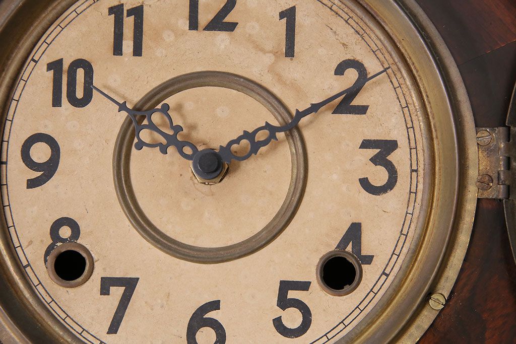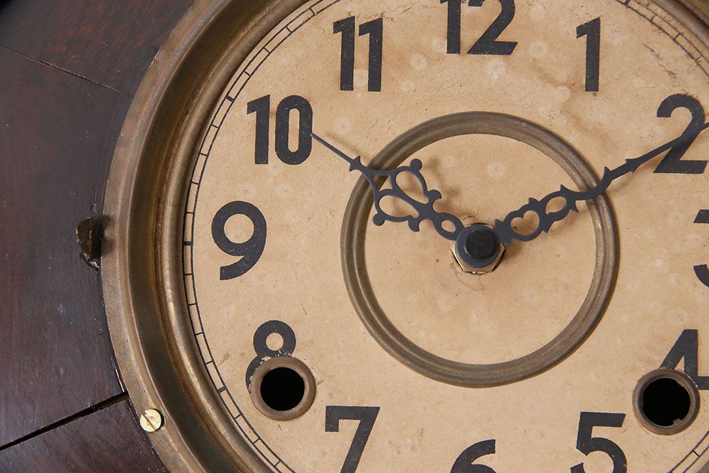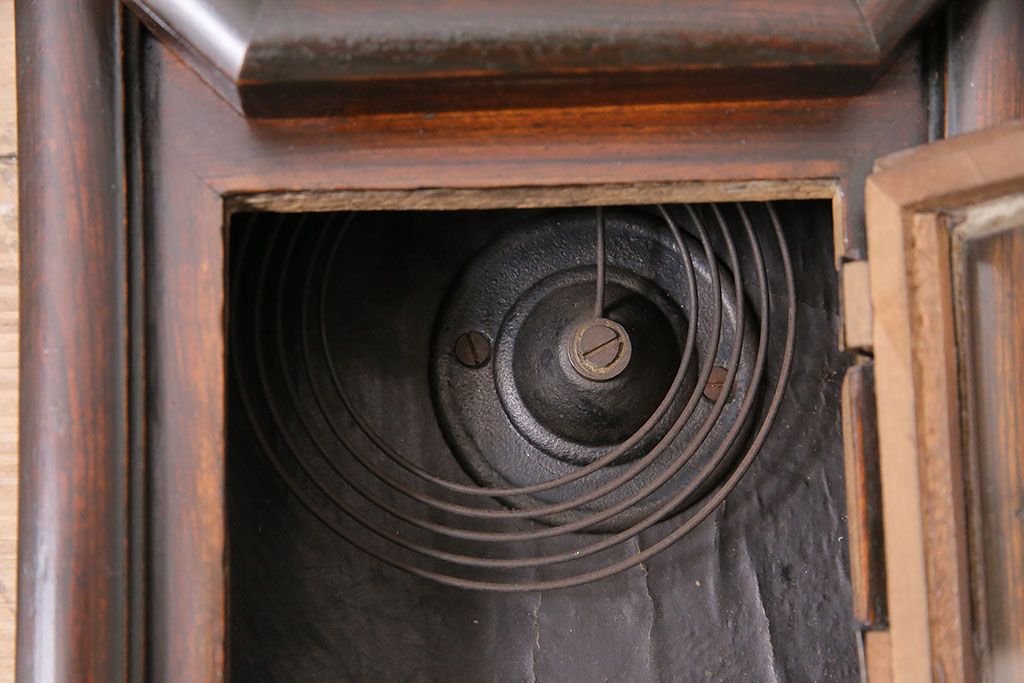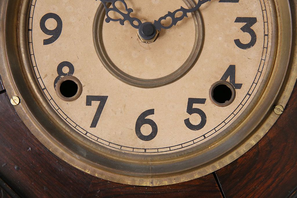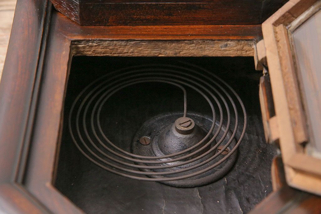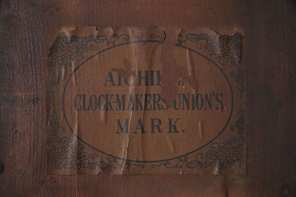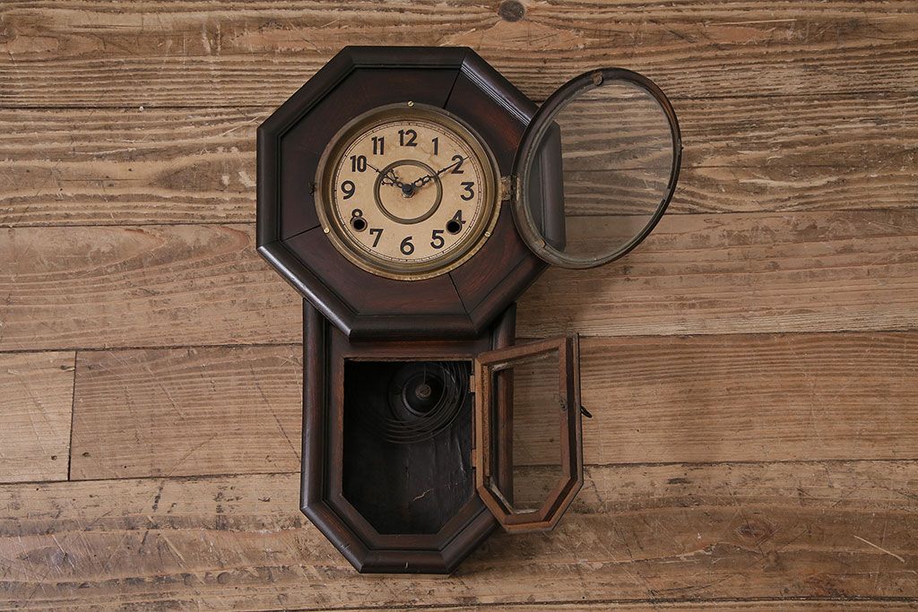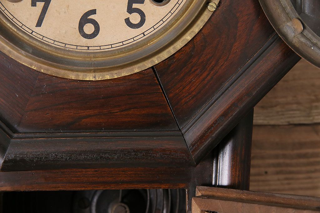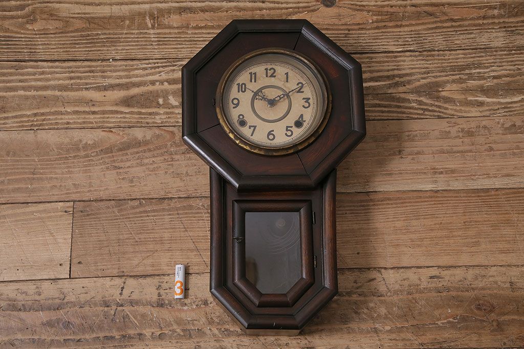 時計> 掛け時計 > アンティーク時計 愛知県時計製造共同組合(AICHIKEN CLOCK-MAKERS' UNION'S MARK) 電池式 年月を重ねた趣溢れる八角型柱時計(掛け時計、古時計)(R-047033)