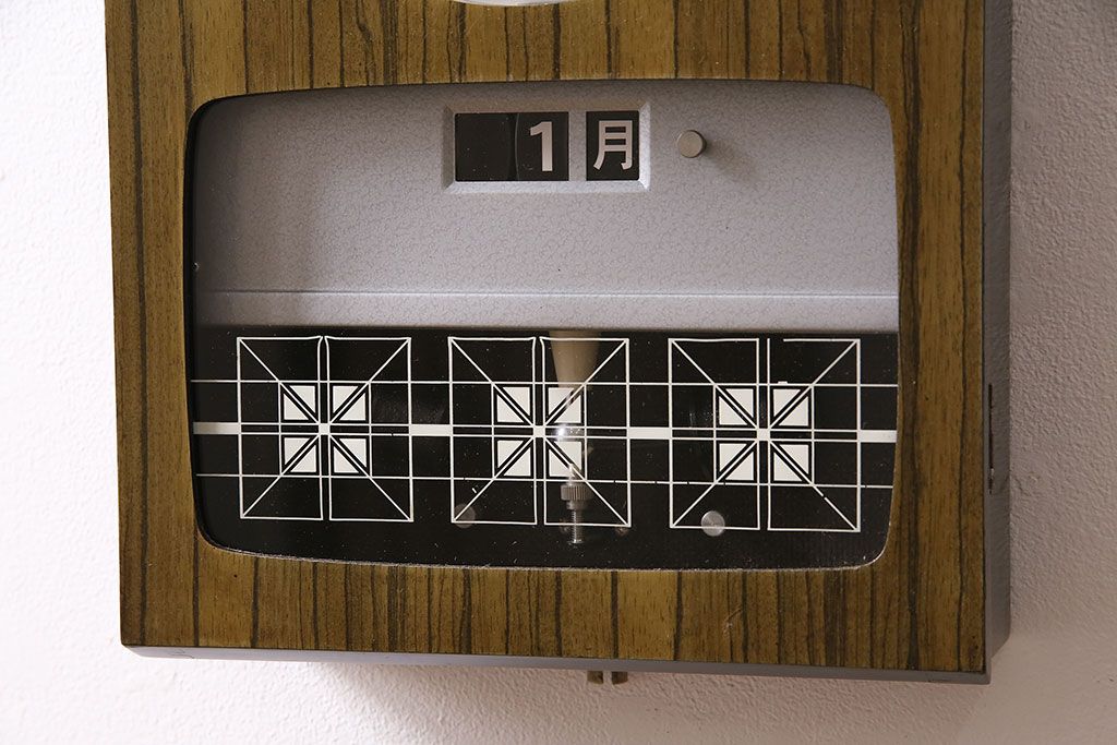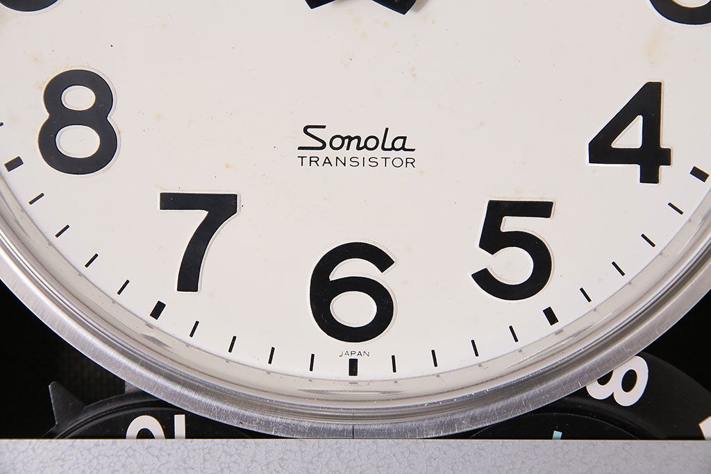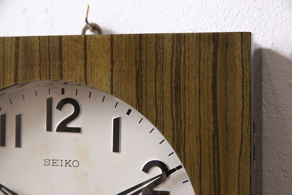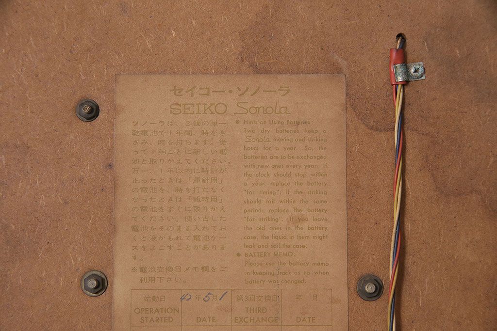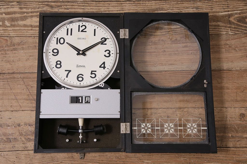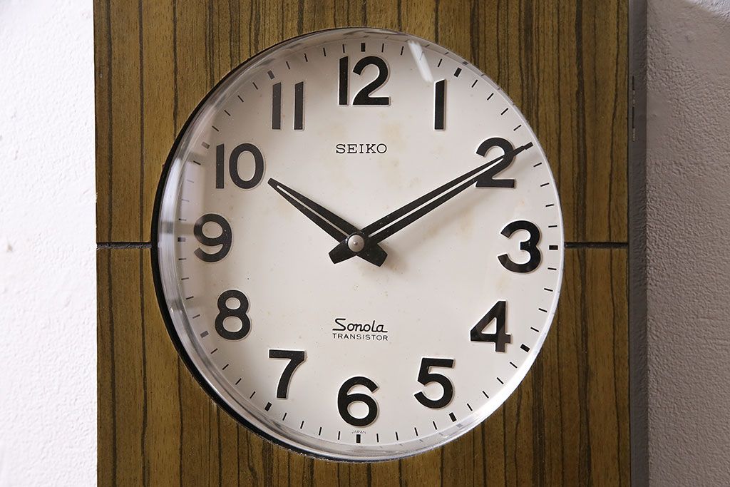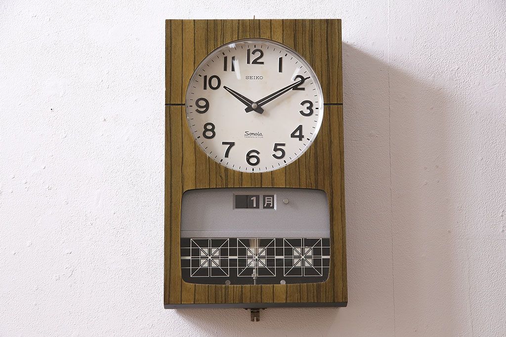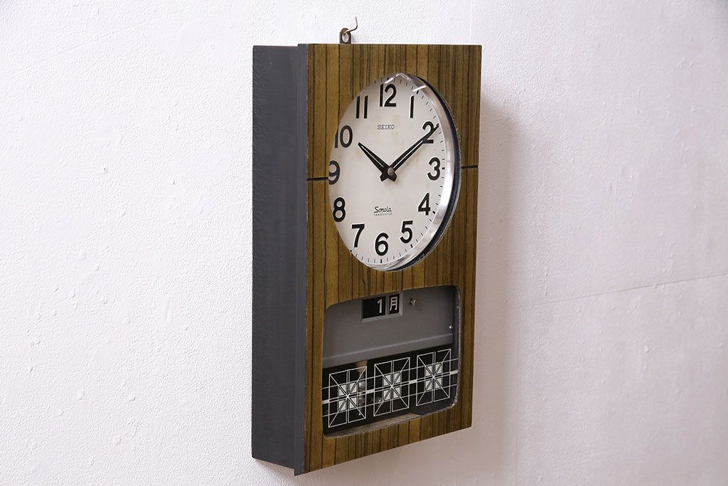 アンティーク時計 昭和レトロ SEIKO Sonola(セイコー・ソノーラ) 電池式 カレンダー付き レトロな雰囲気漂う掛け時計(トランジスタ時計、柱時計)(R-047034)