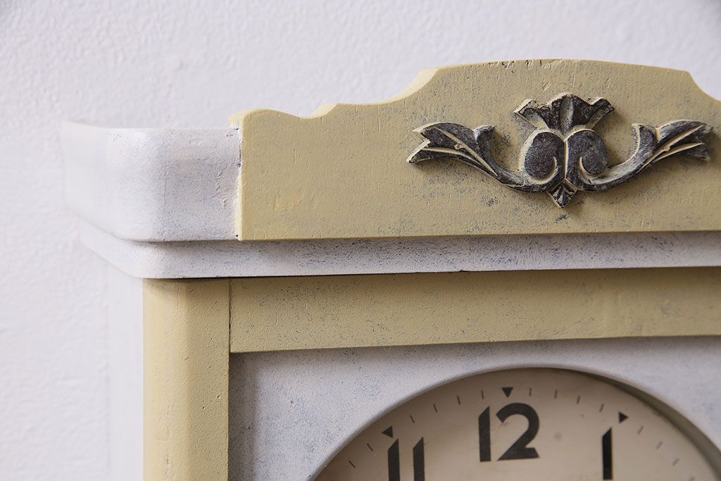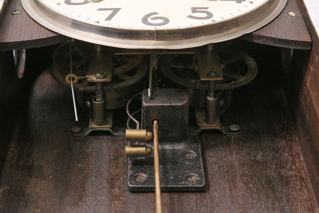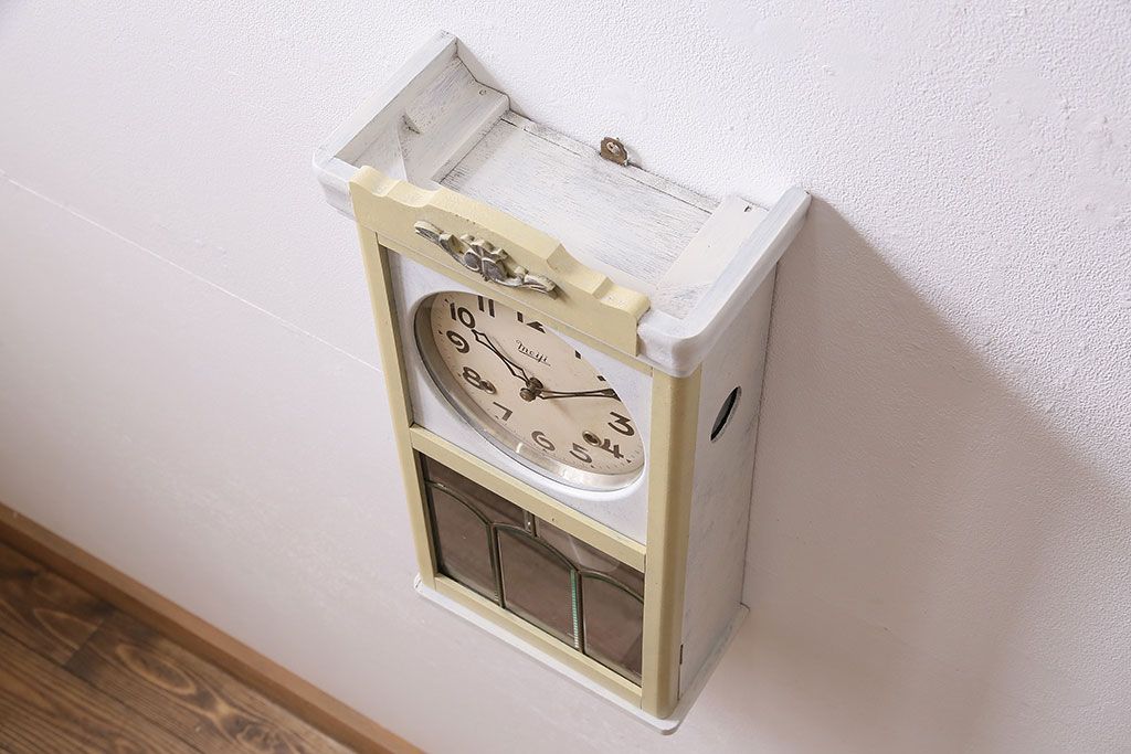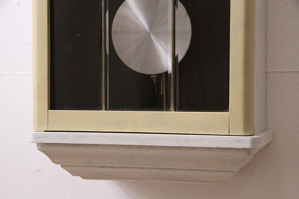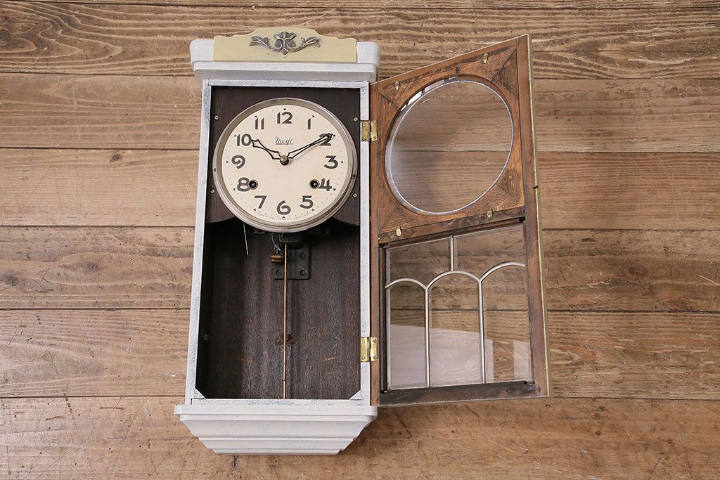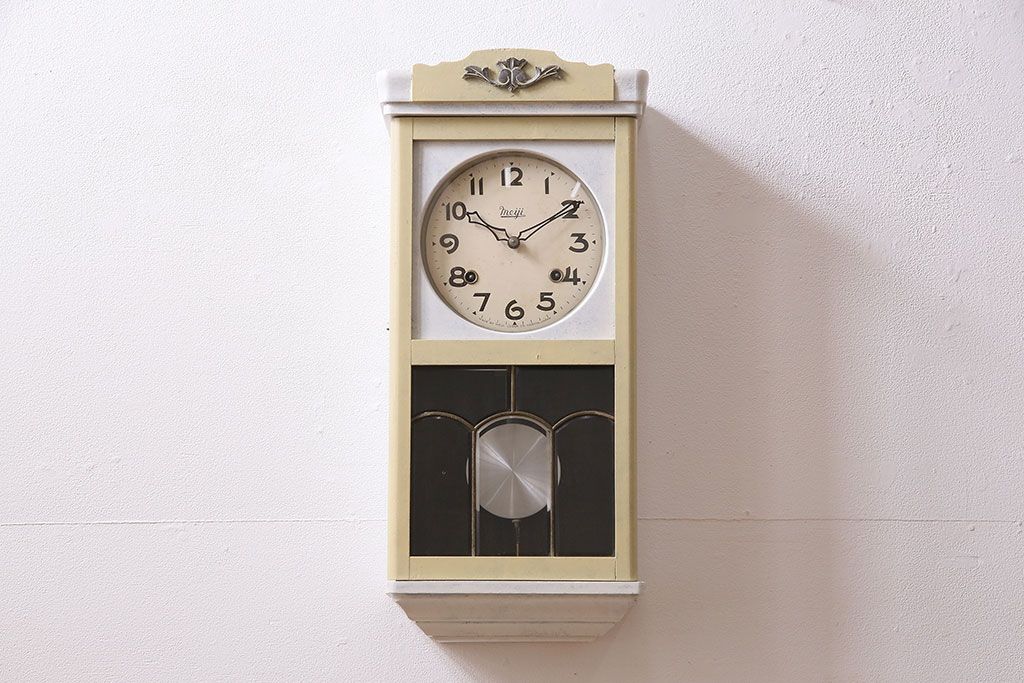 時計> 掛け時計 > アンティーク時計 昭和レトロ 昭和中期 ペイント Meiji(明治時計社) ゼンマイ式 大振りのレトロな掛け時計(柱時計、振り子時計)(R-047031)