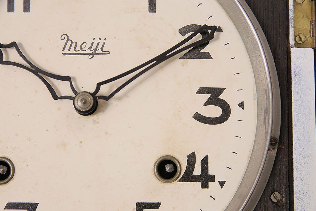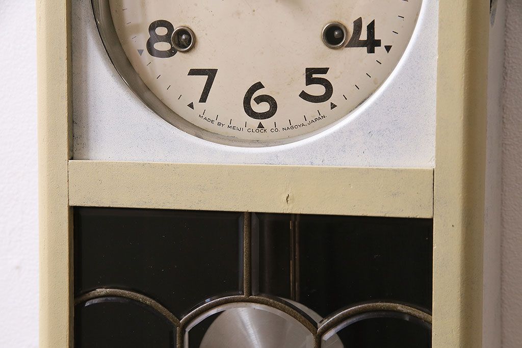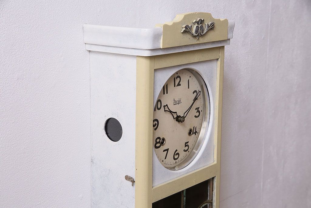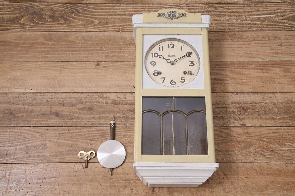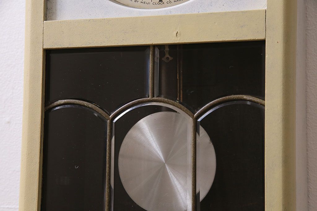 アンティーク時計 昭和レトロ 昭和中期 ペイント Meiji(明治時計社) ゼンマイ式 大振りのレトロな掛け時計(柱時計、振り子時計)(R-047031)