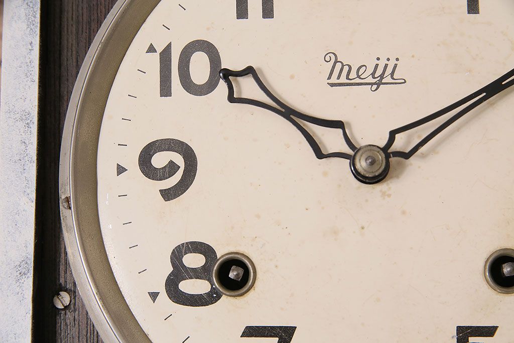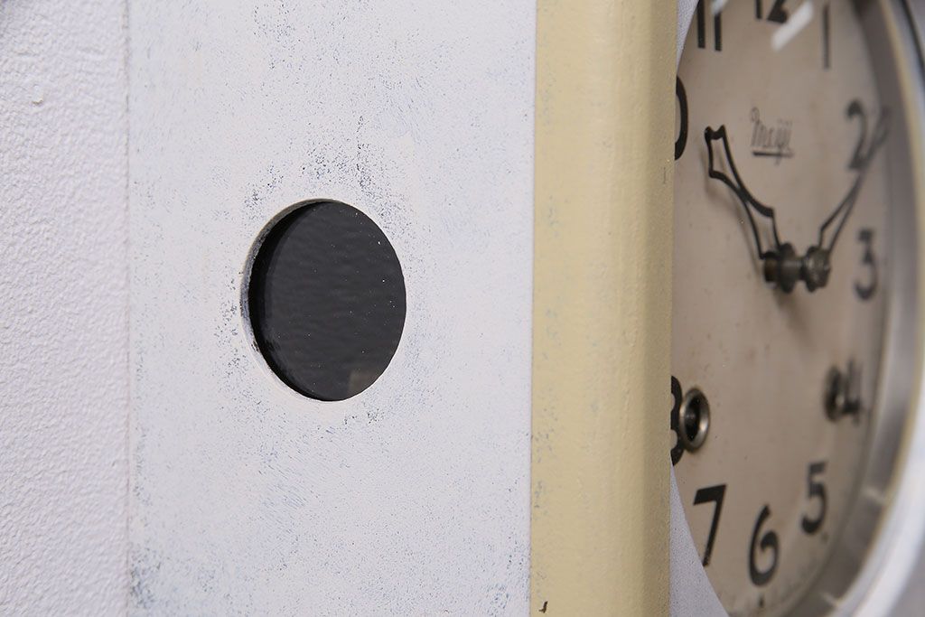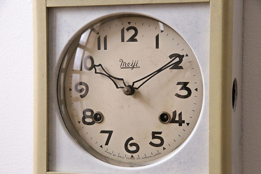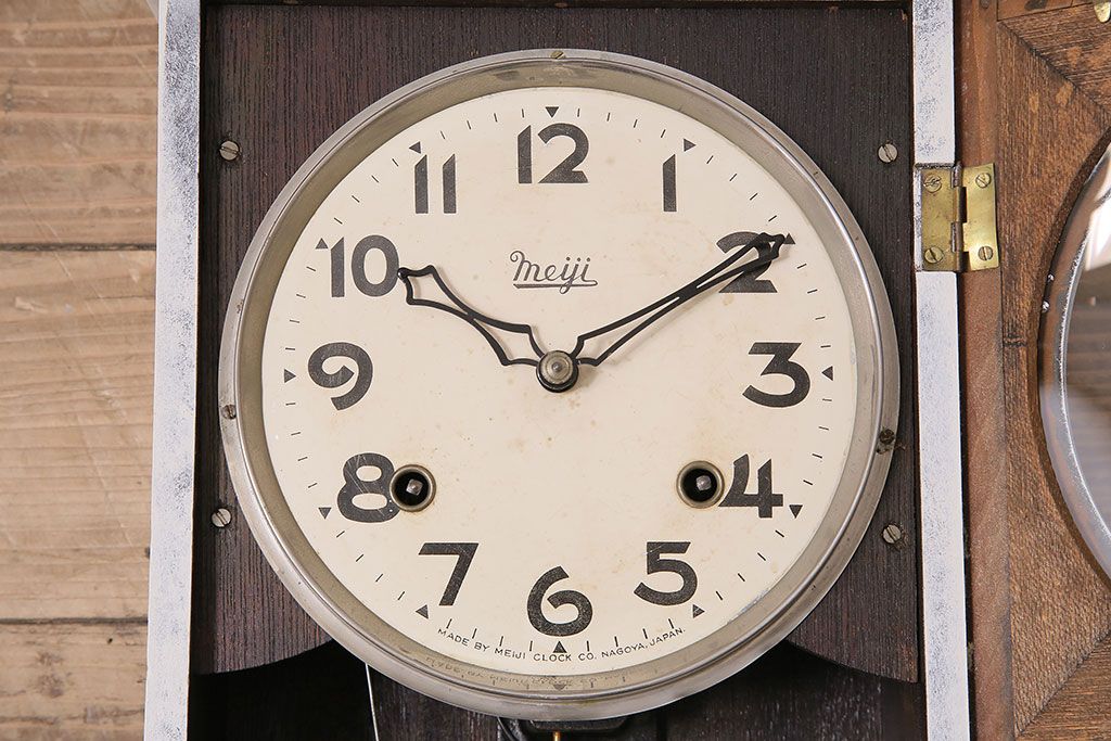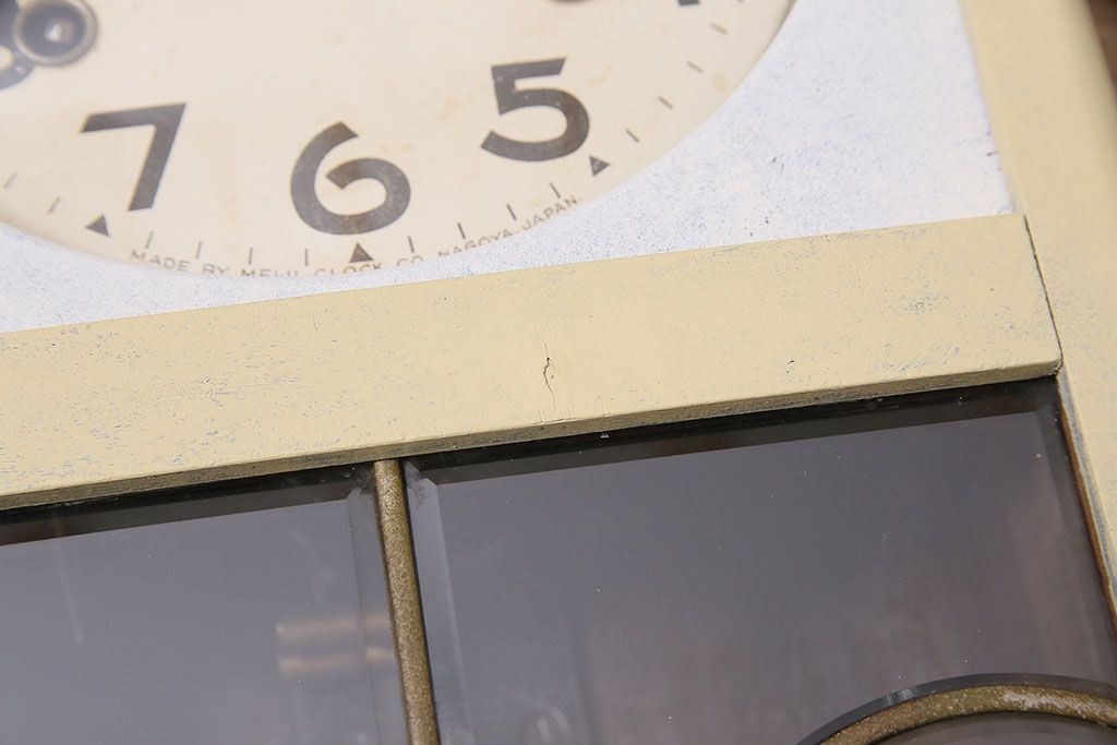 アンティーク時計 昭和レトロ 昭和中期 ペイント Meiji(明治時計社) ゼンマイ式 大振りのレトロな掛け時計(柱時計、振り子時計)(R-047031)