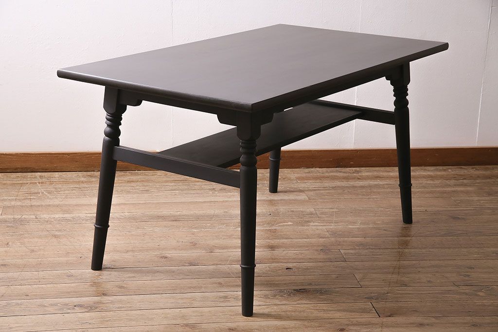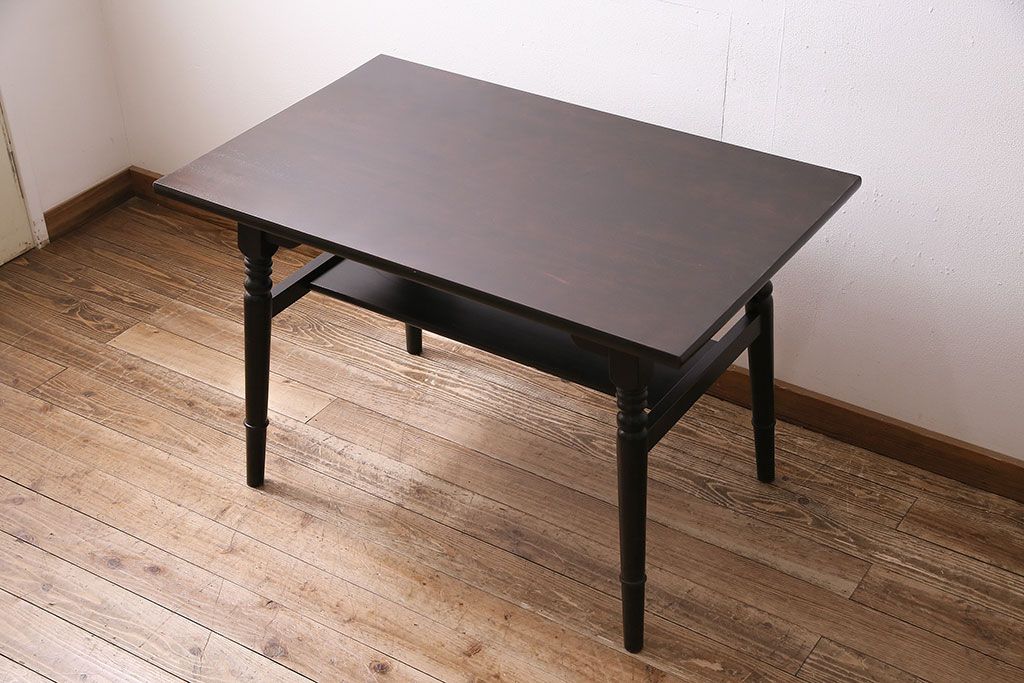 和製ビンテージ 松本民芸家具 深い色合いが上品な棚付きダイニングテーブル(食卓)(R-046969)です。