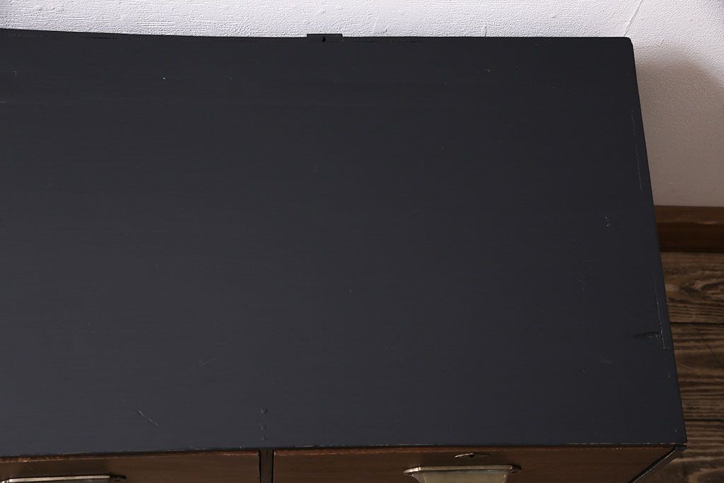 昭和レトロ 濃いネイビーと木色の組み合わせがおしゃれな小引き出し(小物収納、卓上収納)(R-046998)です。