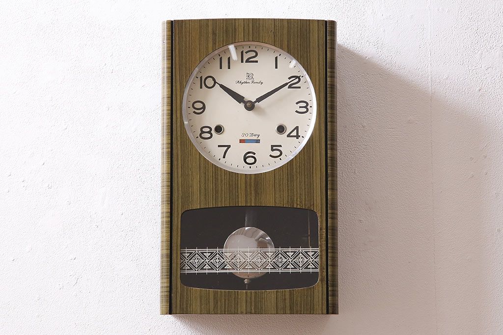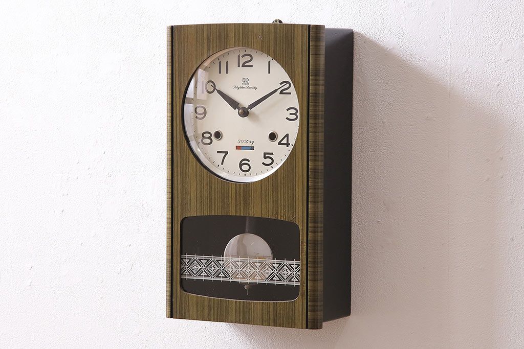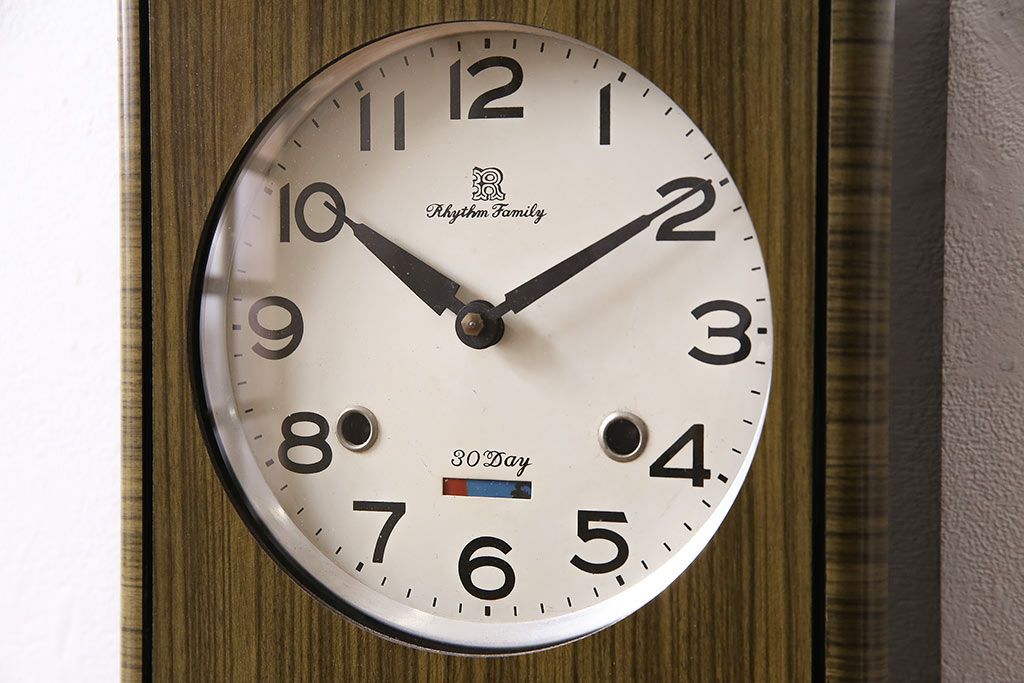 時計> 掛け時計 > アンティーク時計 昭和レトロ 昭和中期 Rhythm Family 30DAY ゼンマイ式 昔懐かしい雰囲気溢れる振り子時計(掛け時計、柱時計、古時計)(R-047101)