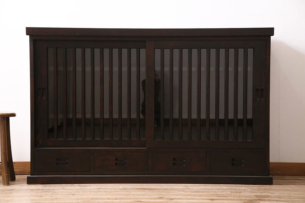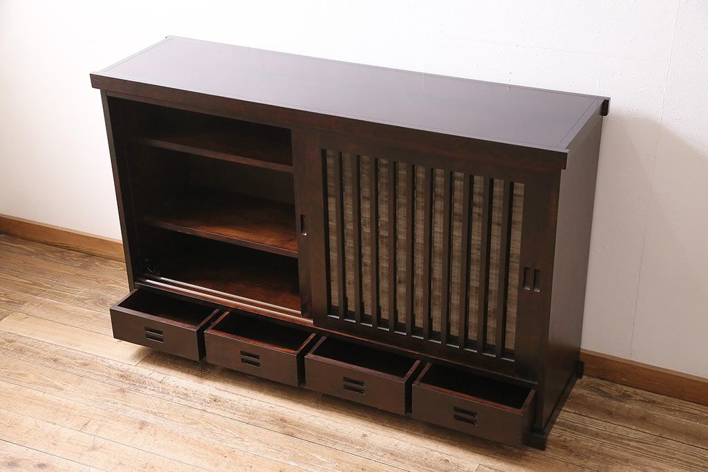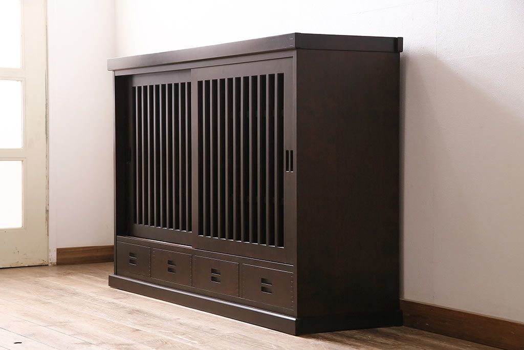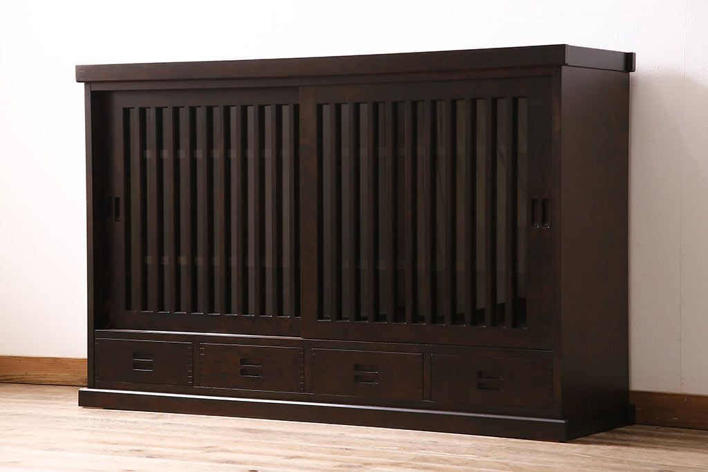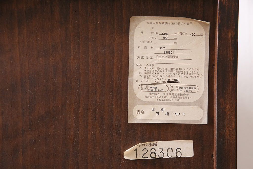 和箪笥 > 中古 旭川家具 北樹シリーズ 150K 樺材の濃い色合いが美しい茶棚(定価約27万円)(食器棚、サイドボード、収納棚)(R-047092)