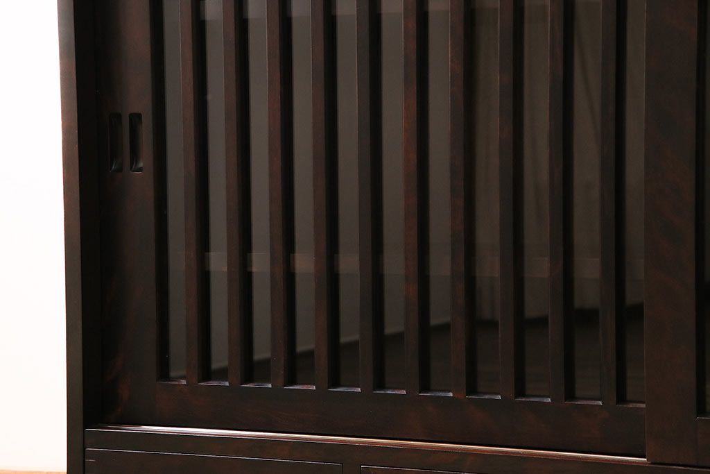 キャビネット・戸棚> 食器棚・カップボード > 中古 旭川家具 北樹シリーズ 150K 樺材の濃い色合いが美しい茶棚(定価約27万円)(食器棚、サイドボード、収納棚)(R-047092)