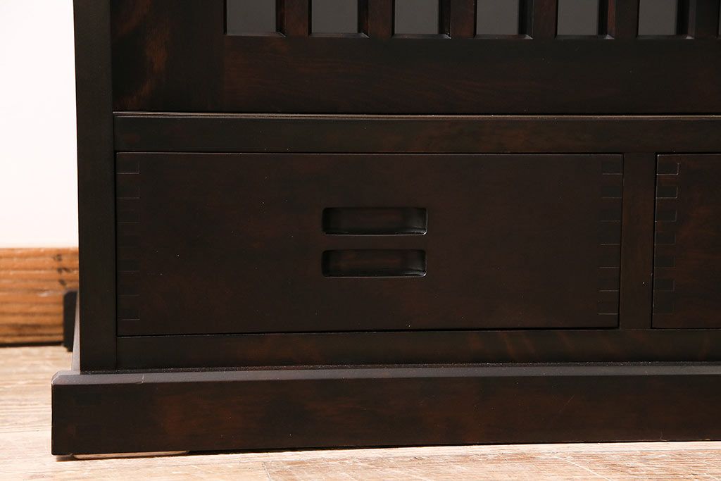 中古 旭川家具 北樹シリーズ 150K 樺材の濃い色合いが美しい茶棚(定価約27万円)(食器棚、サイドボード、収納棚)(R-047092)です。