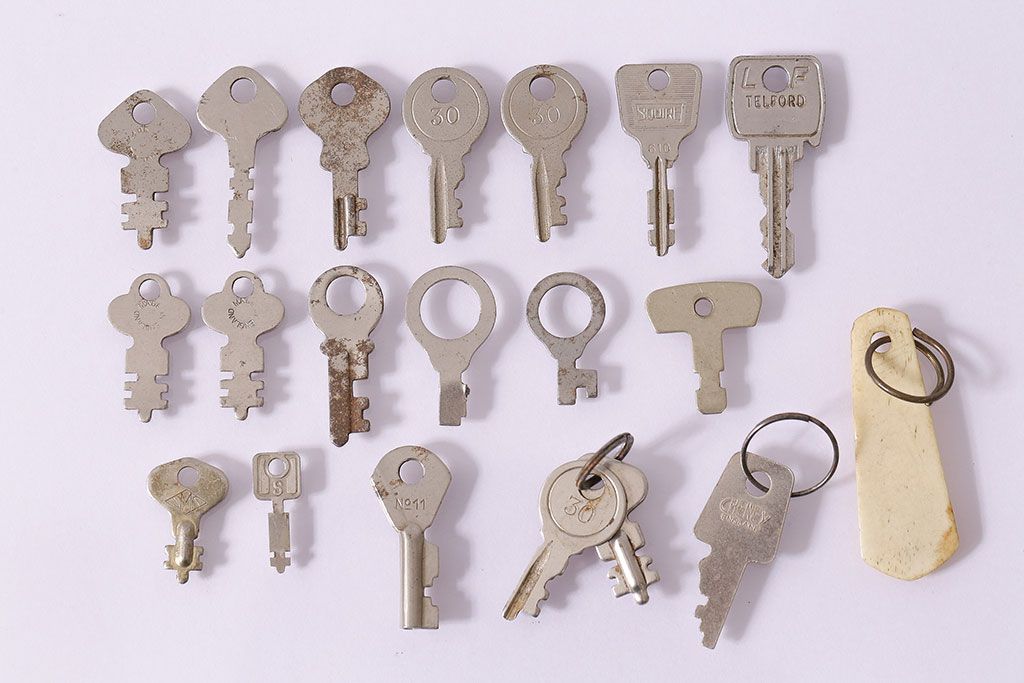 アンティーク雑貨 イギリスアンティーク デザイン色々!小さなサイズのキー19本セット(鍵、カギ)(R-046879)