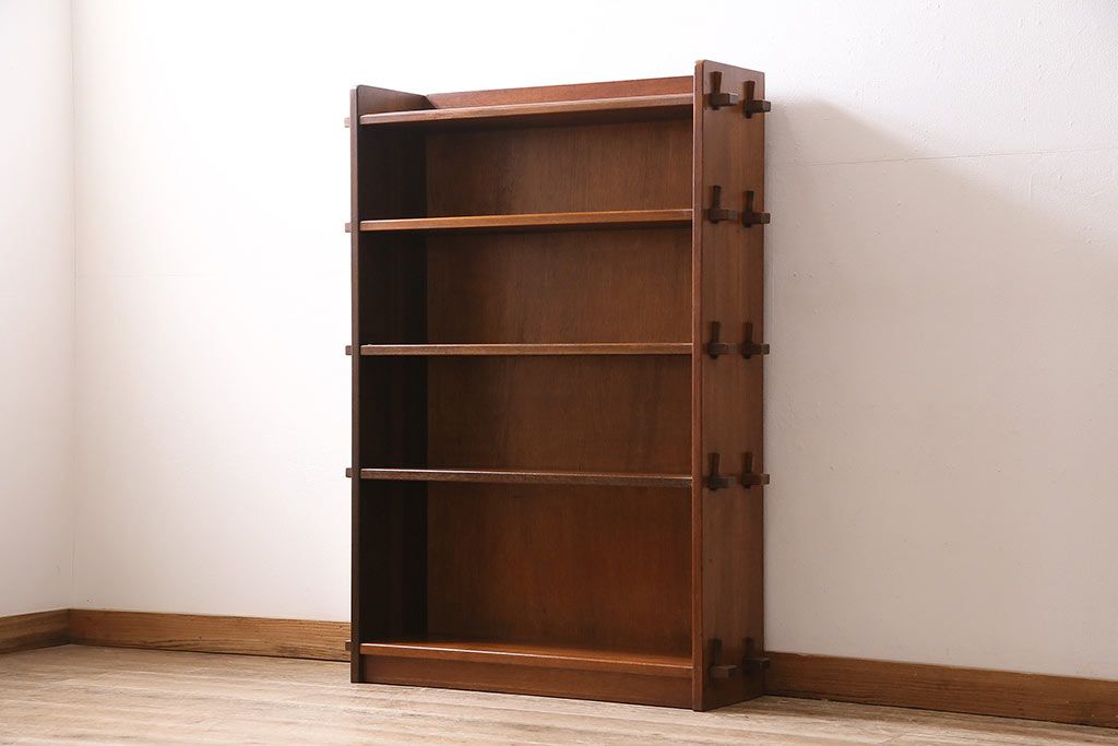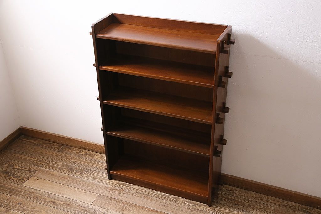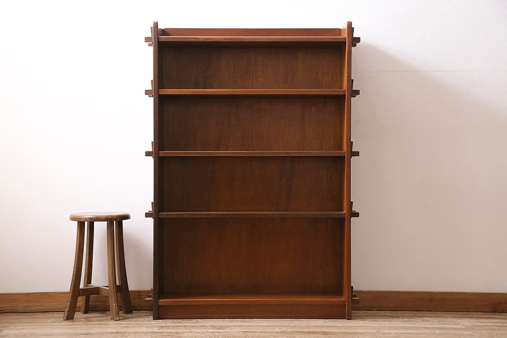オープンラック・シェルフ> 本棚 > 昭和中期の本棚の見た目を変えずに綺麗にリペア!クリーニング、ささくれ等の補修。赤味がかった茶色で着色し仕上げ。(オープンシェルフ、シェルフ)