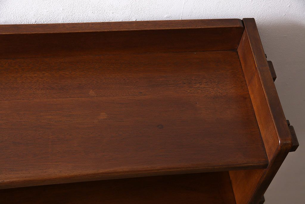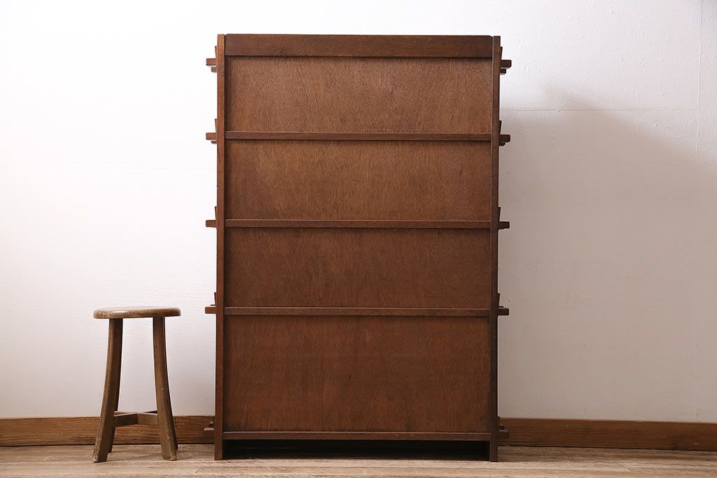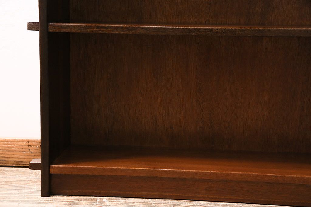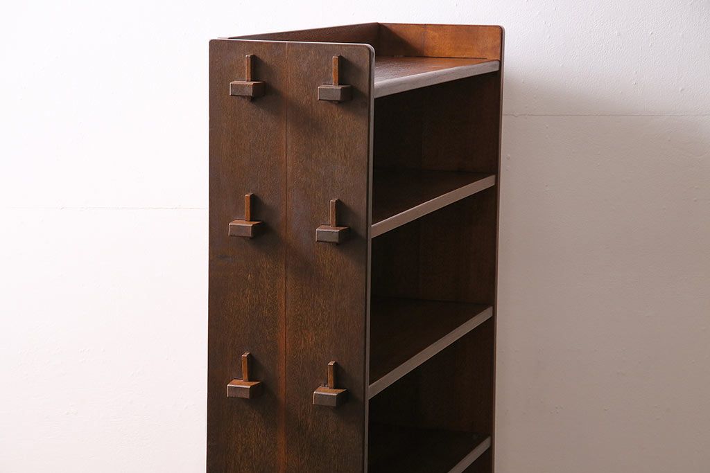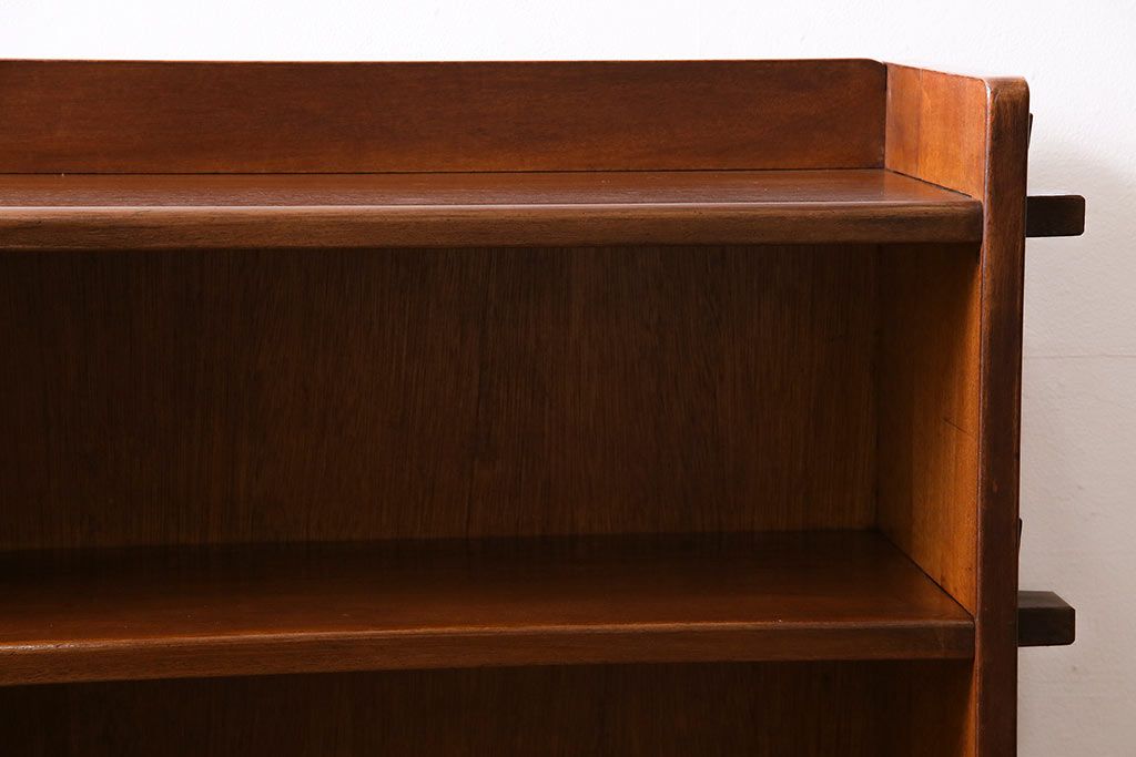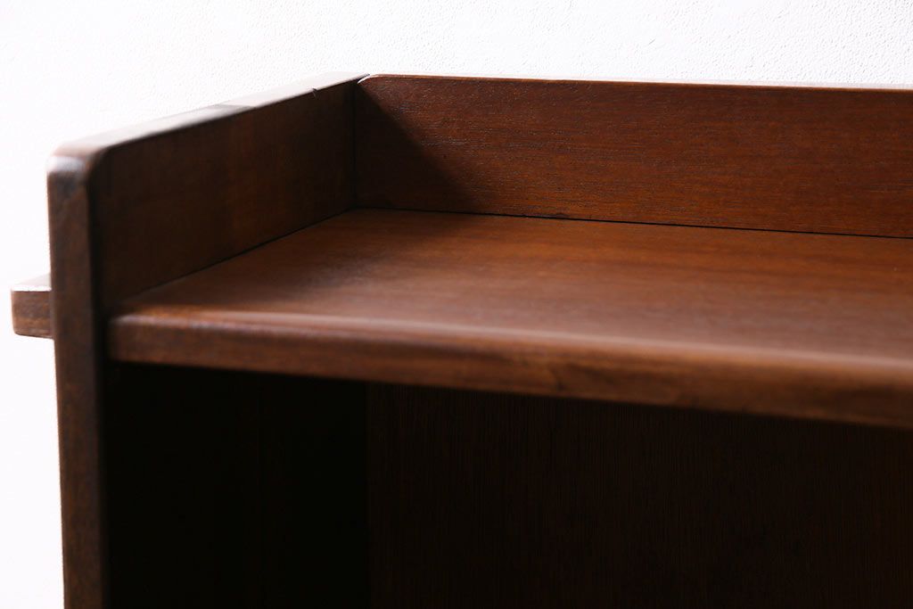 昭和中期の本棚の見た目を変えずに綺麗にリペア!クリーニング、ささくれ等の補修。赤味がかった茶色で着色し仕上げ。(オープンシェルフ、シェルフ)