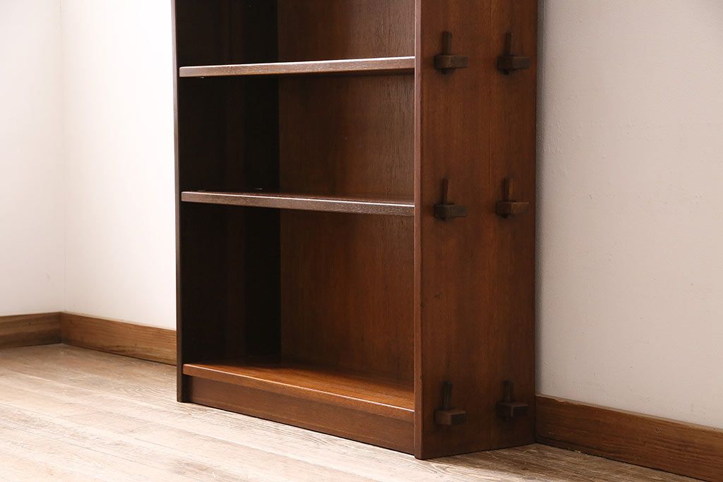 オープンラック・シェルフ > 昭和中期の本棚の見た目を変えずに綺麗にリペア!クリーニング、ささくれ等の補修。赤味がかった茶色で着色し仕上げ。(オープンシェルフ、シェルフ)